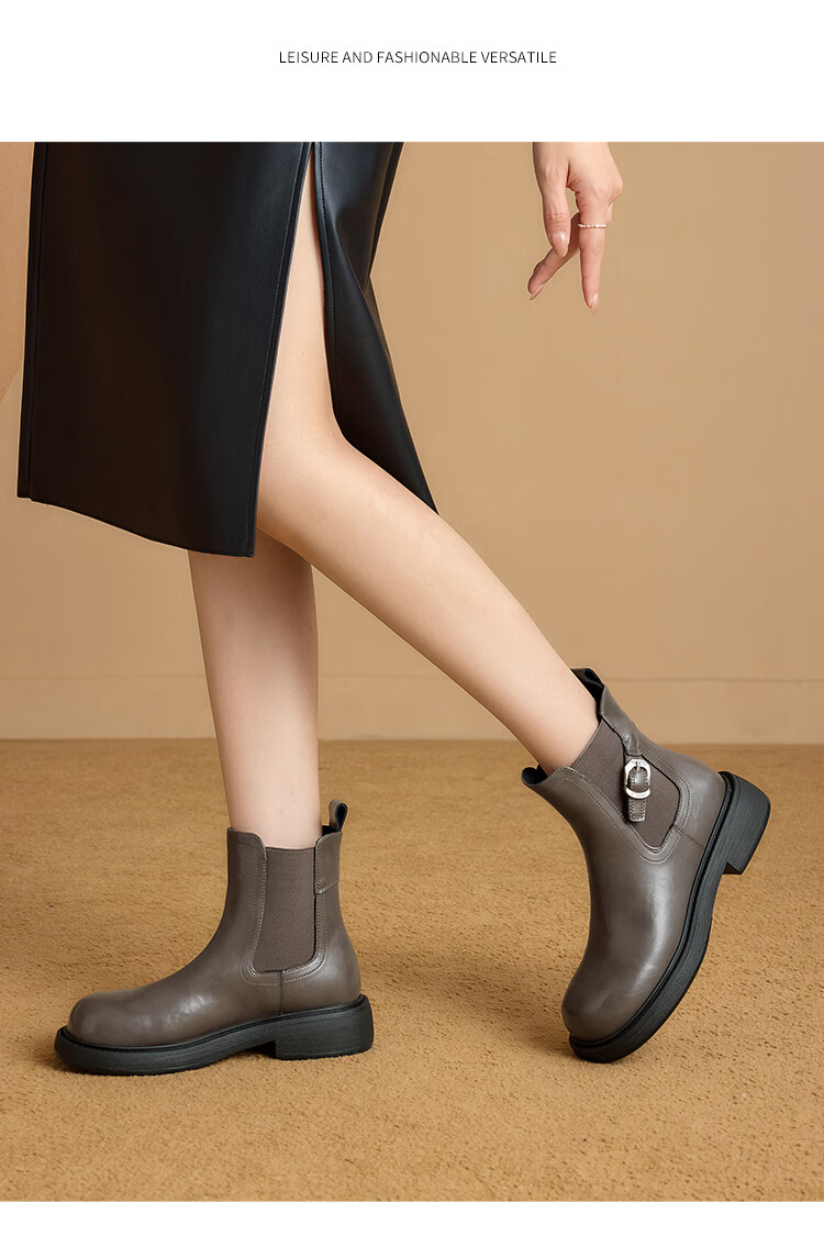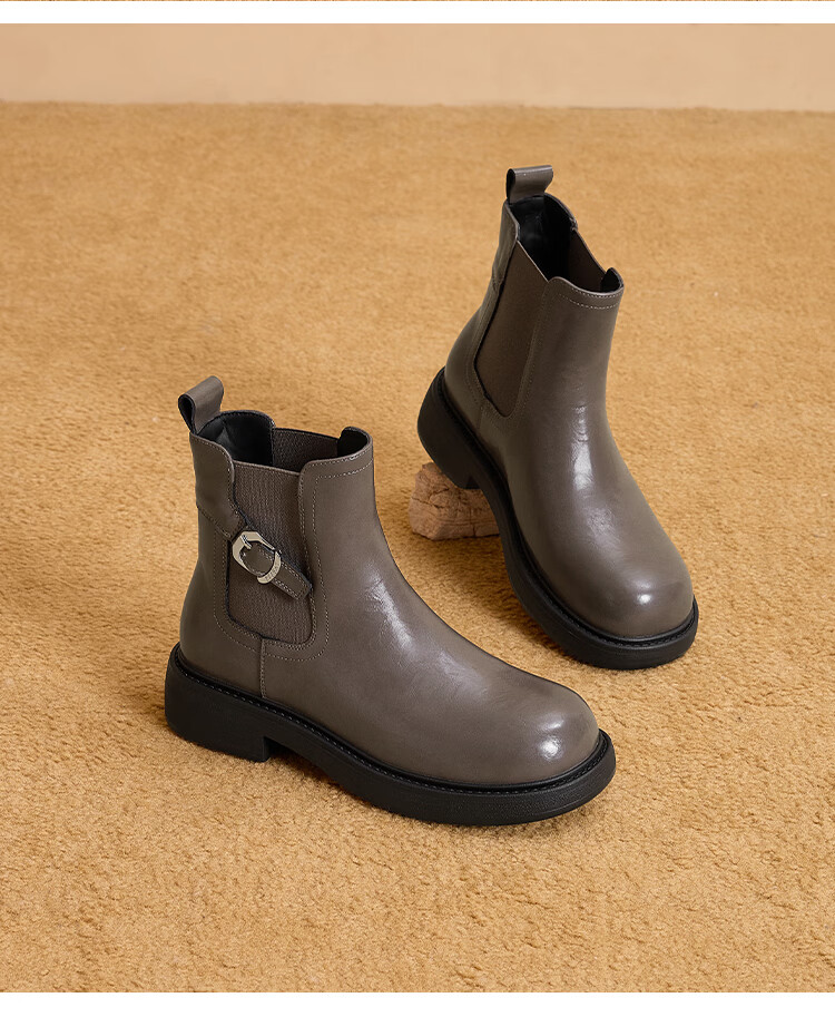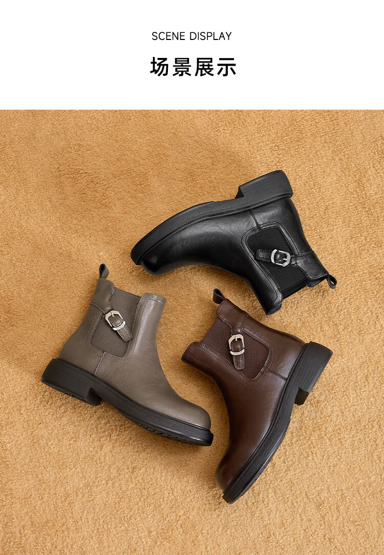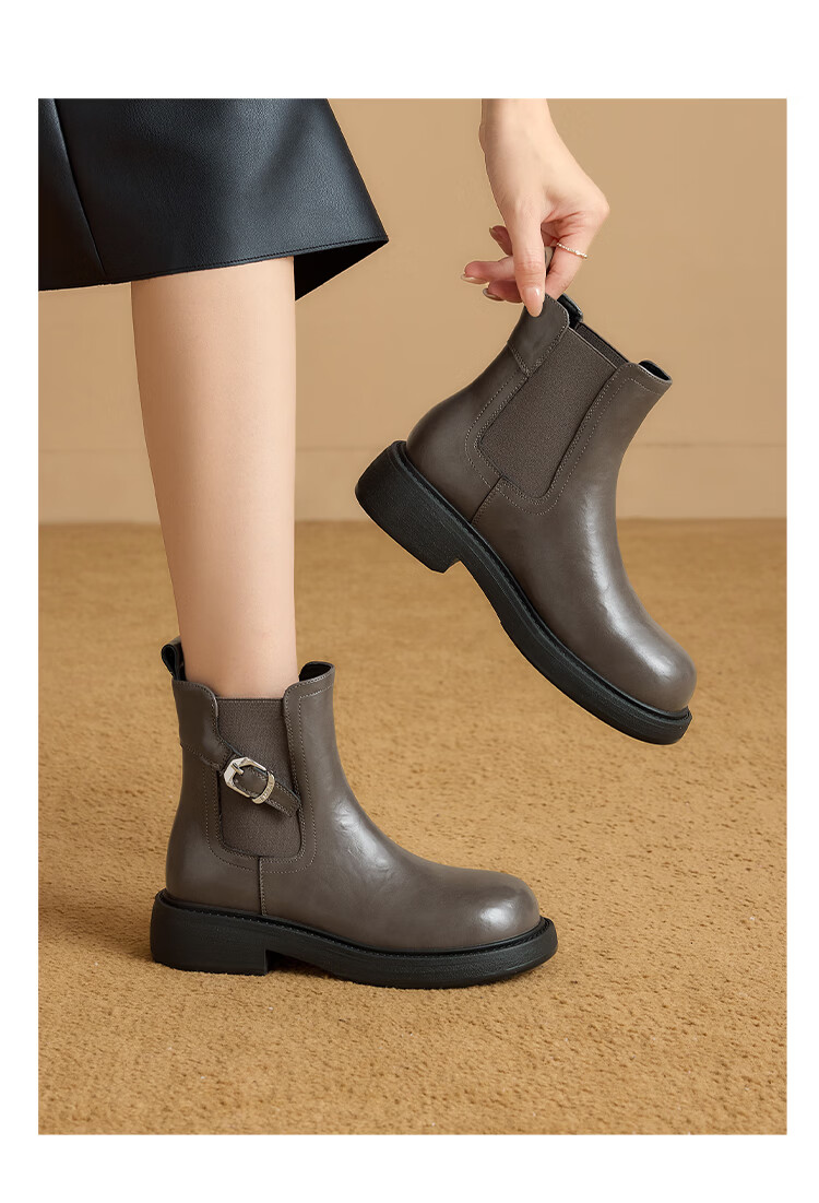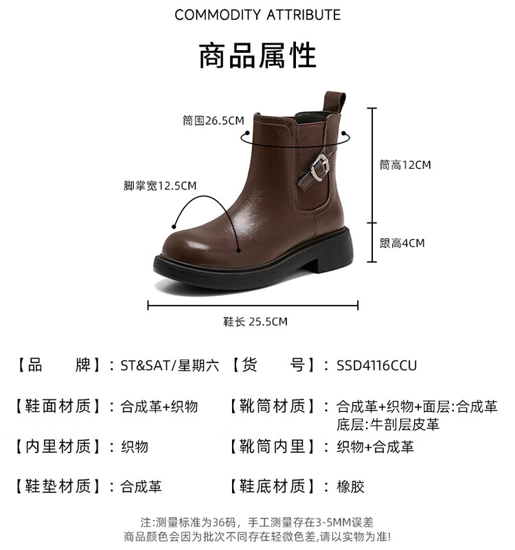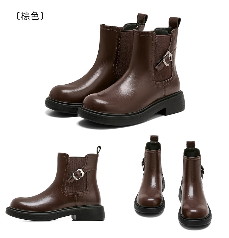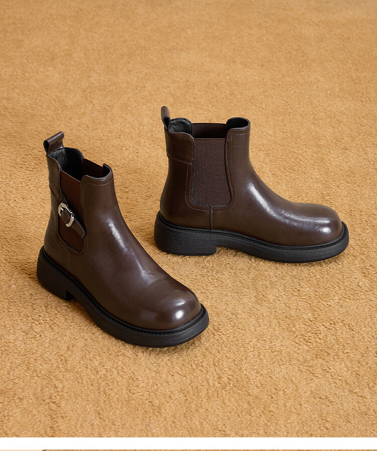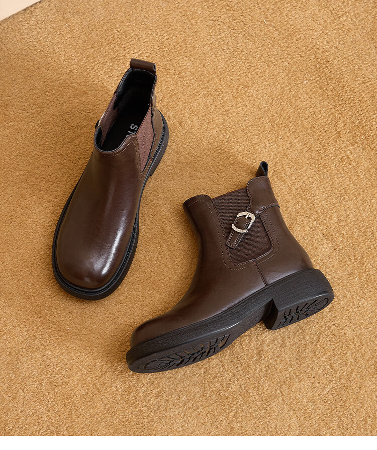 星期六复古风机车靴女2025新款秋冬休闲百搭舒适皮靴短靴百搭马丁靴 棕色 【复古百搭】 35 225