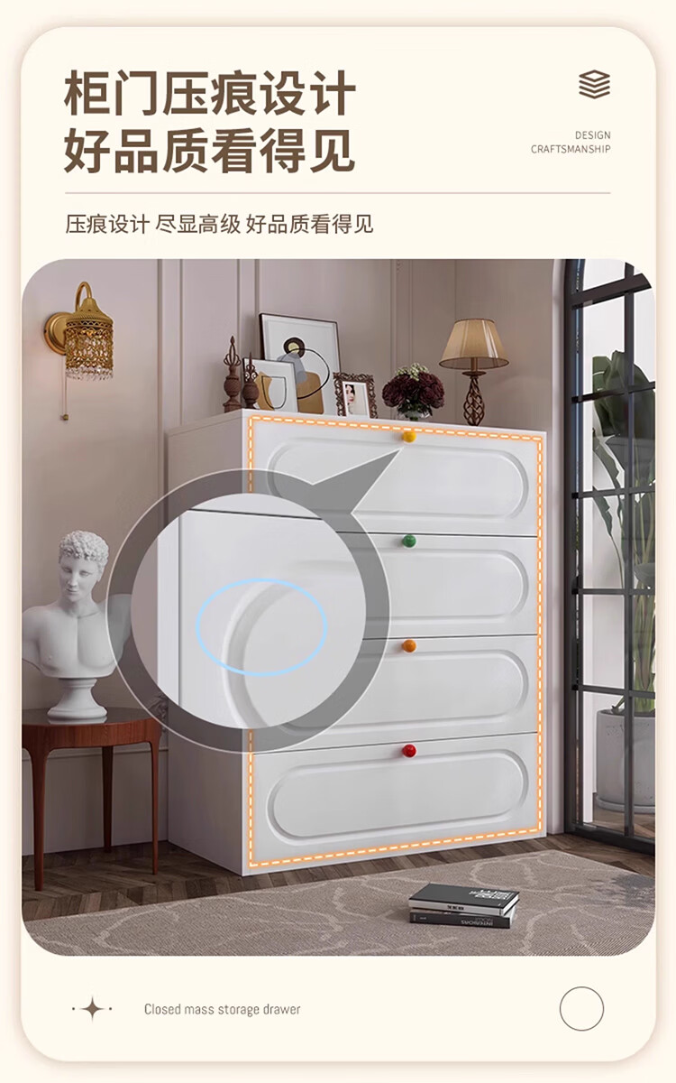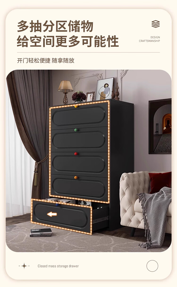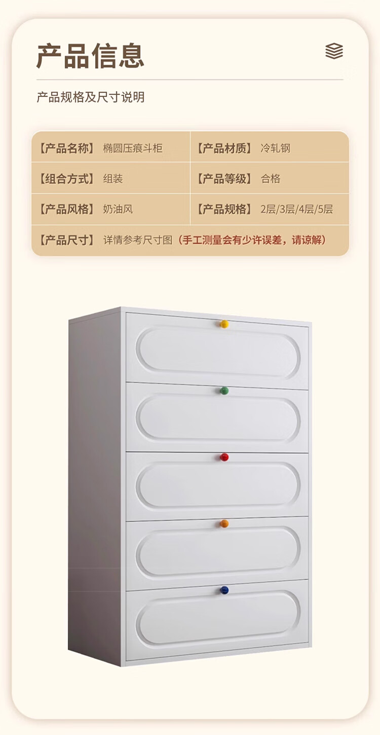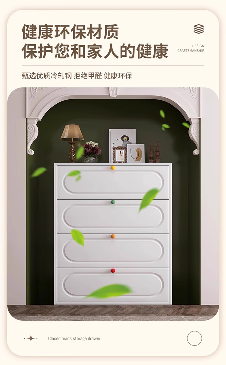科虎铁艺斗柜客厅五斗柜卧室收纳柜靠墙柜 二斗40cm宽白色【彩色拉手】
