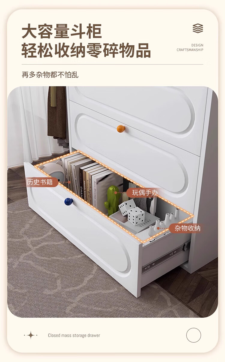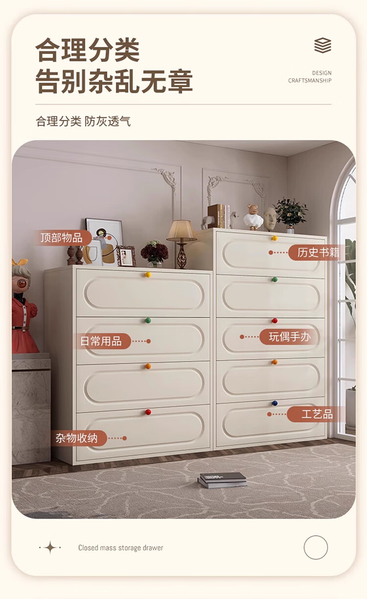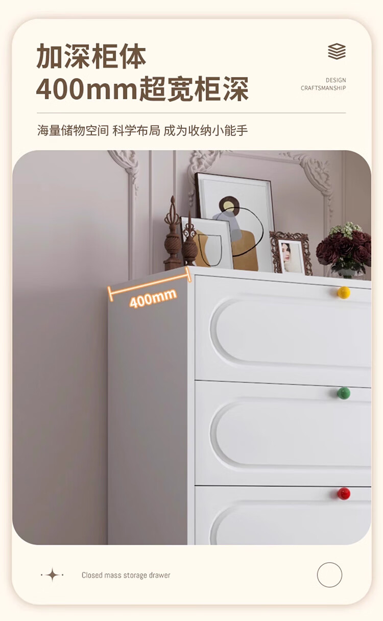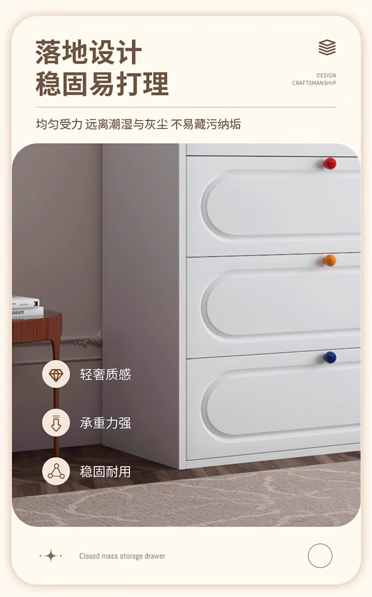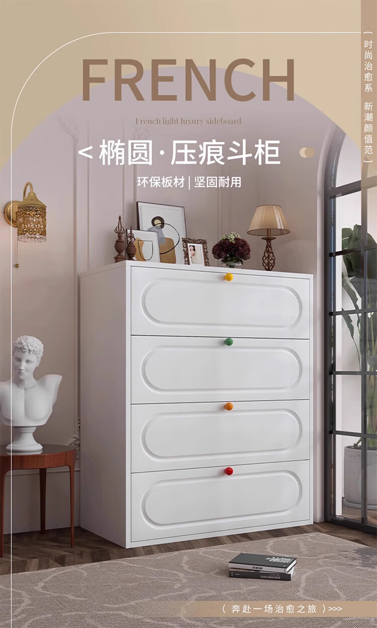 科虎铁艺斗柜客厅五斗柜卧室收纳柜靠墙柜 二斗40cm宽白色【彩色拉手】