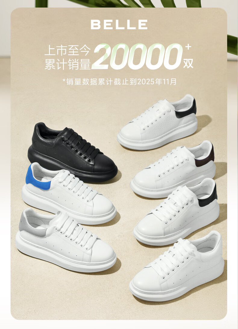 百丽撞色小白鞋男秋季牛皮舒适厚底休闲板鞋A1160CM3 静谧白 41