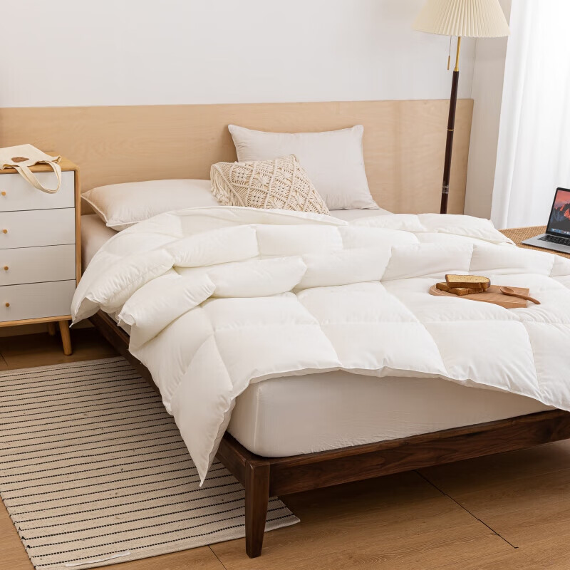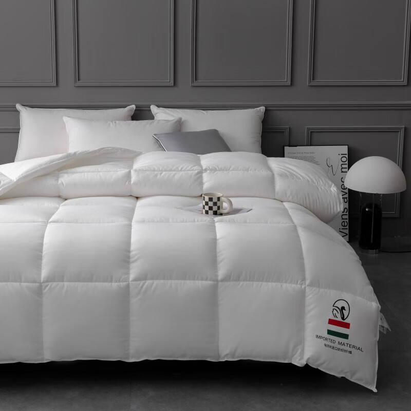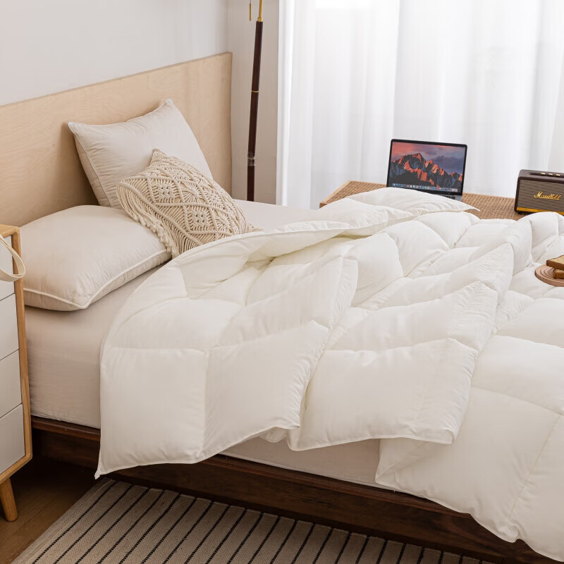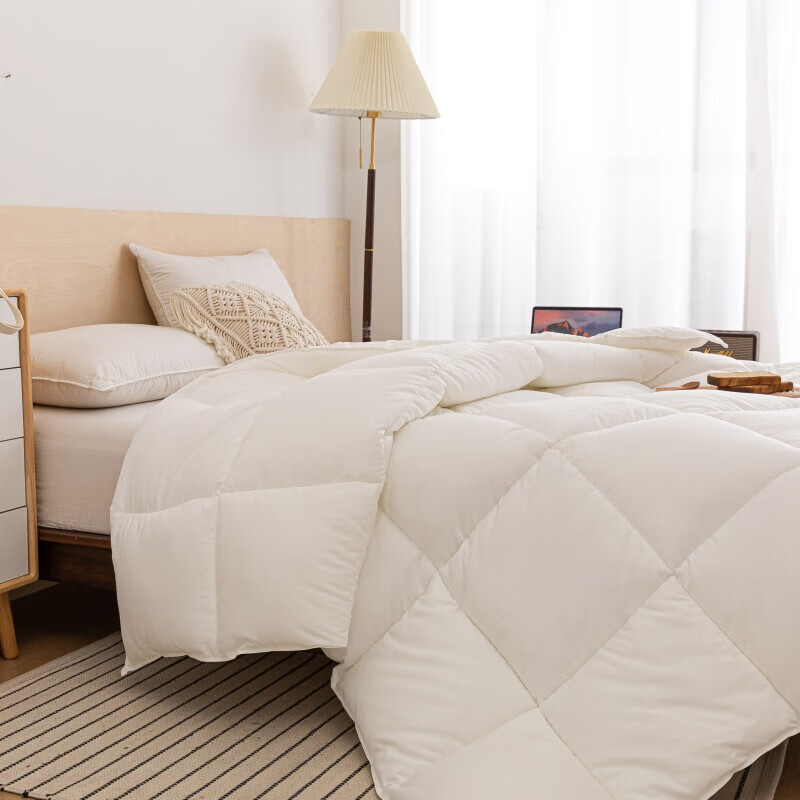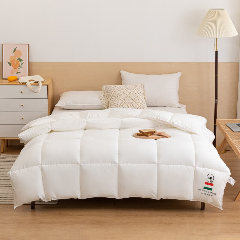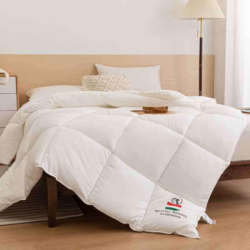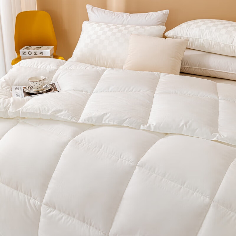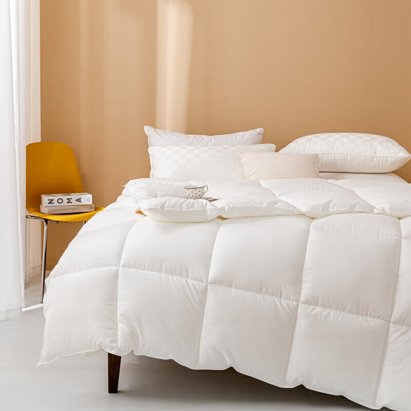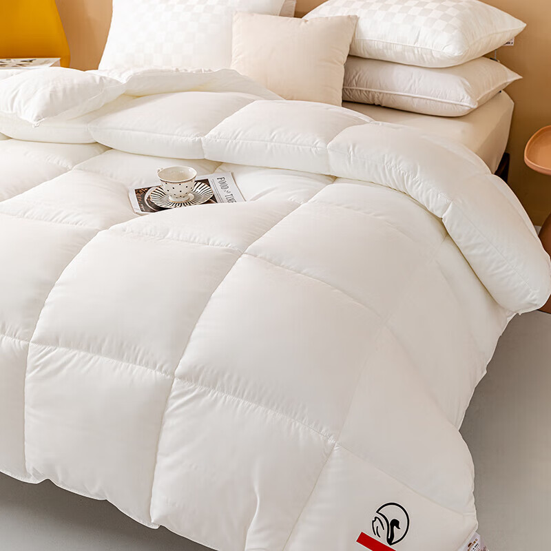 恒源祥羽丝绒被白鸭绒冬被6斤春秋被鸭绒被子冬季加厚8斤棉被芯空调被褥 白色 150*200cm/【4斤夏被】