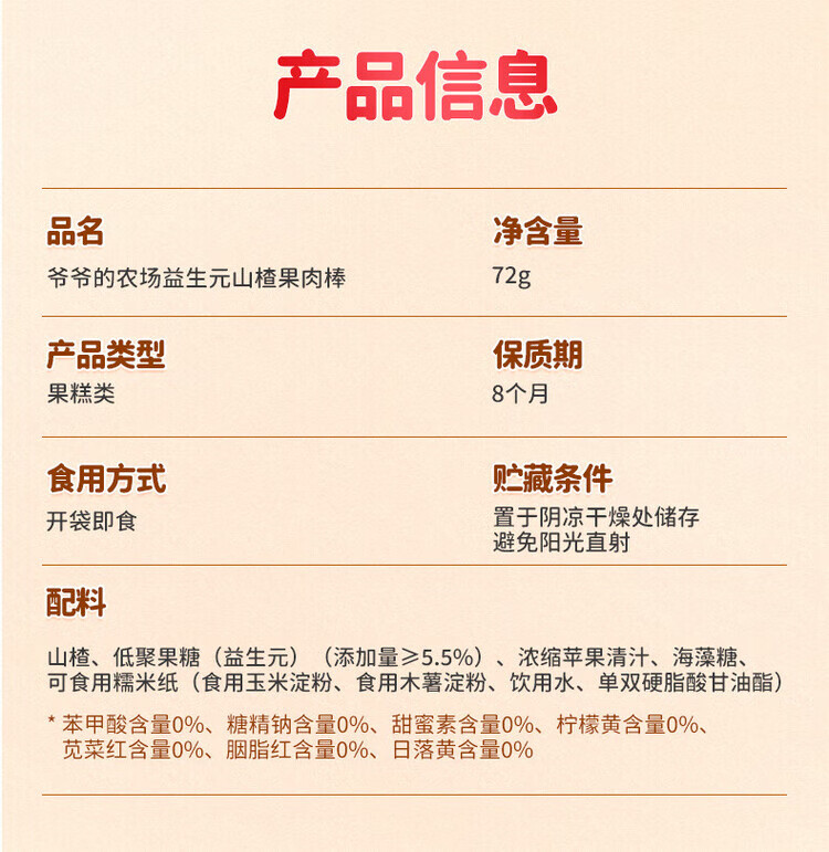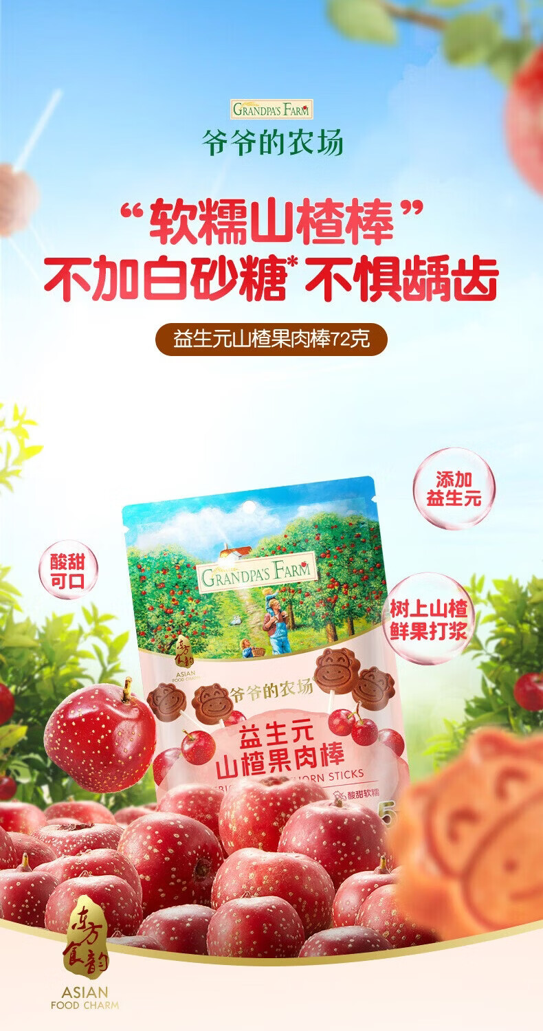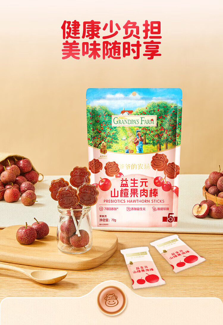 爷爷的农场宝宝儿童零食山楂棒 干牛乳棒棒棒糖宝宝休闲零食 山楂棒72g