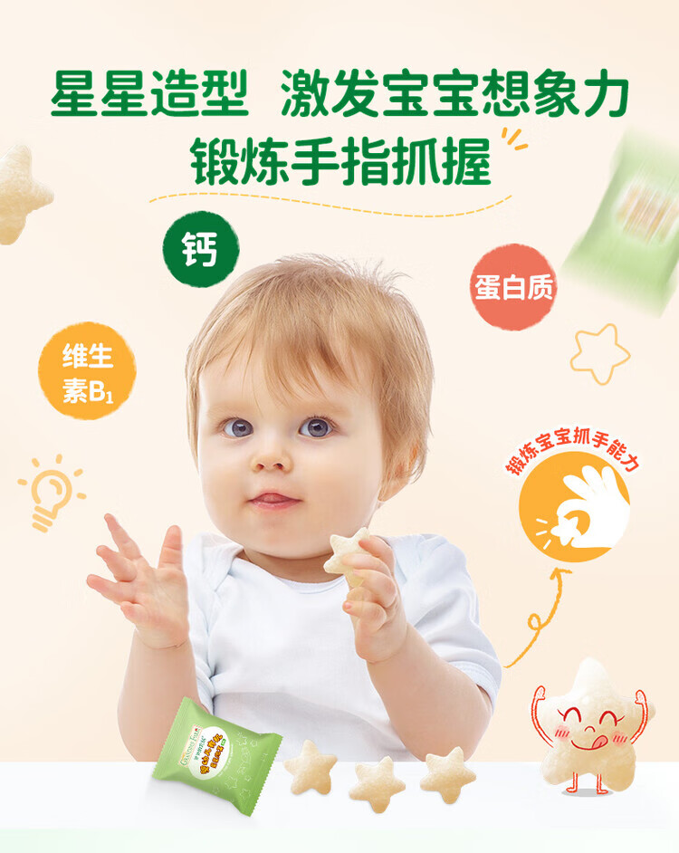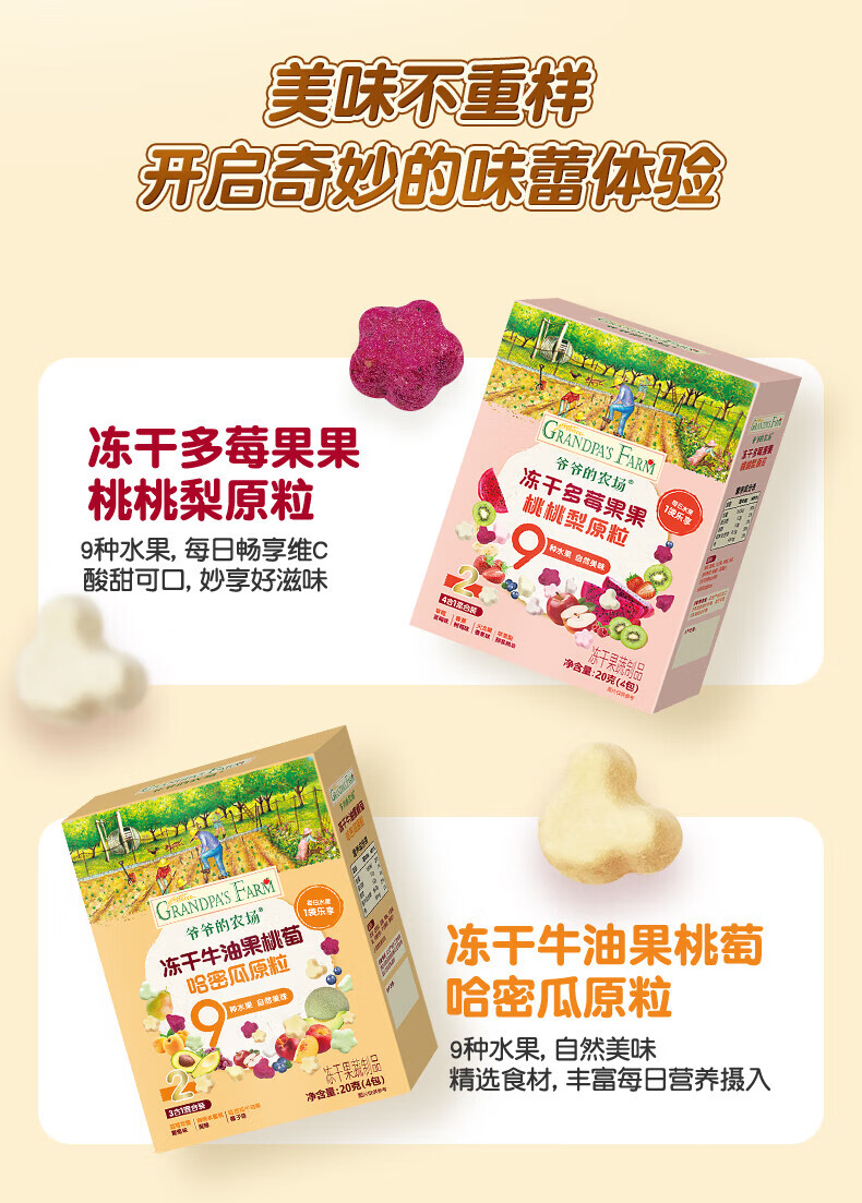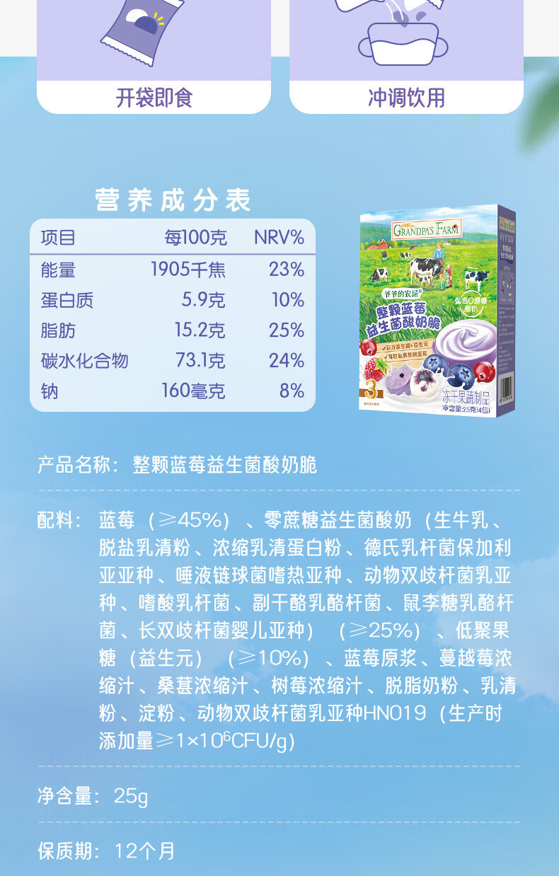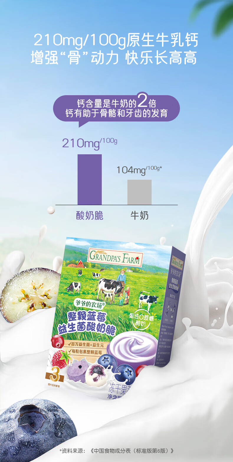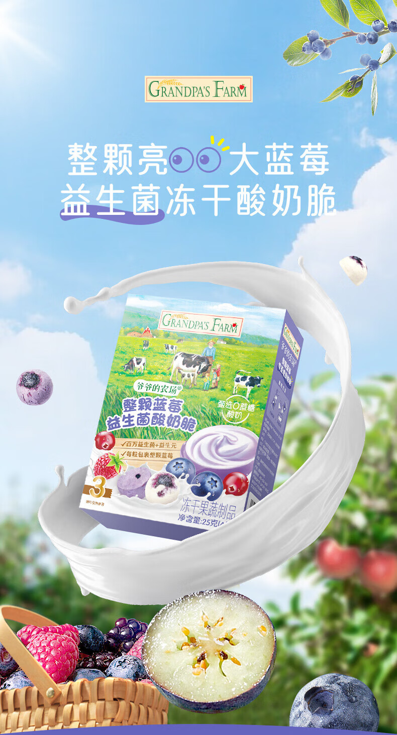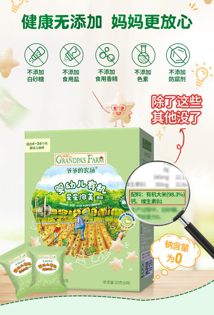 爷爷的农场儿童泡芙食品 有机星星泡芙冻干 宝宝解馋鳕鱼肠辅食零食 【有机婴标】手指泡芙蓝莓味