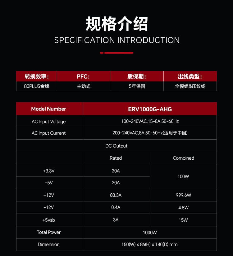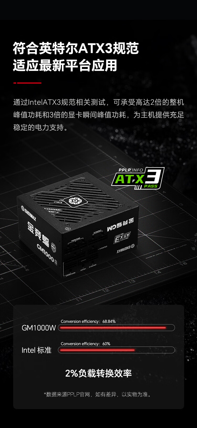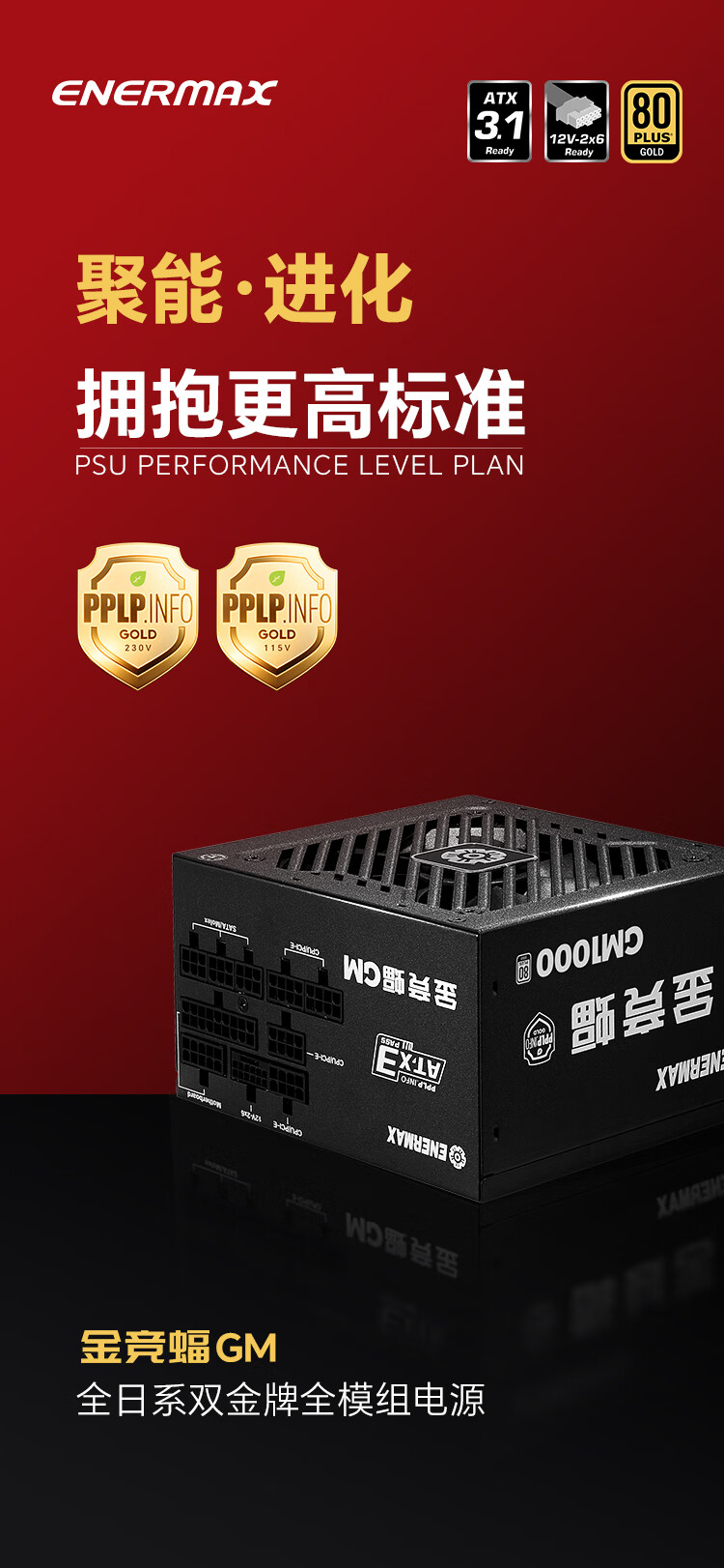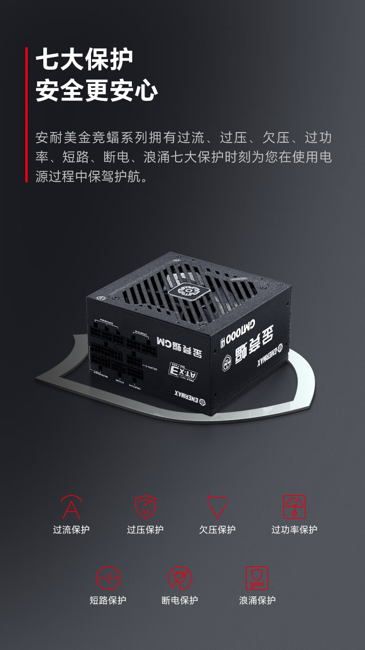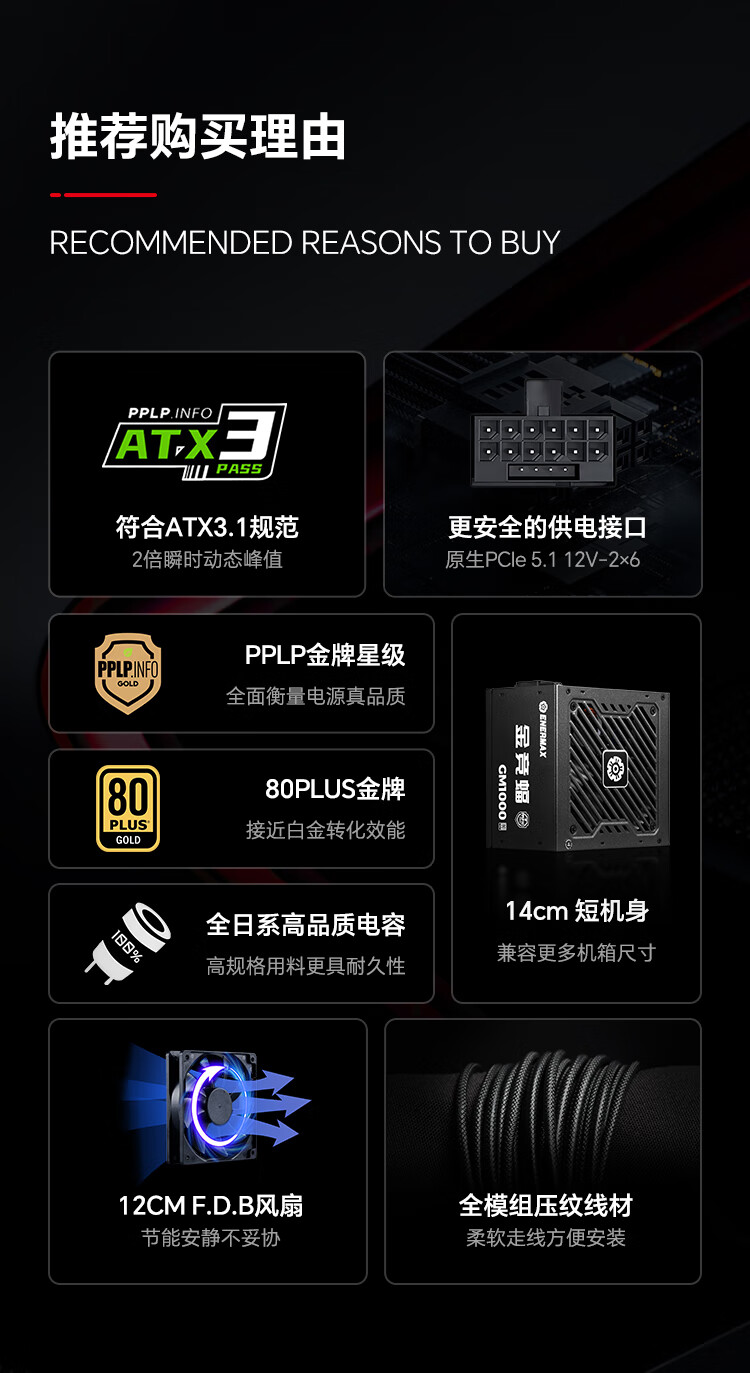 安耐美(Enermax)1000W金牌全模电源 ATX3电源 金竞蝠GM1000W 双金牌认证/全日系电容/ 支持 9070xt/5090显卡