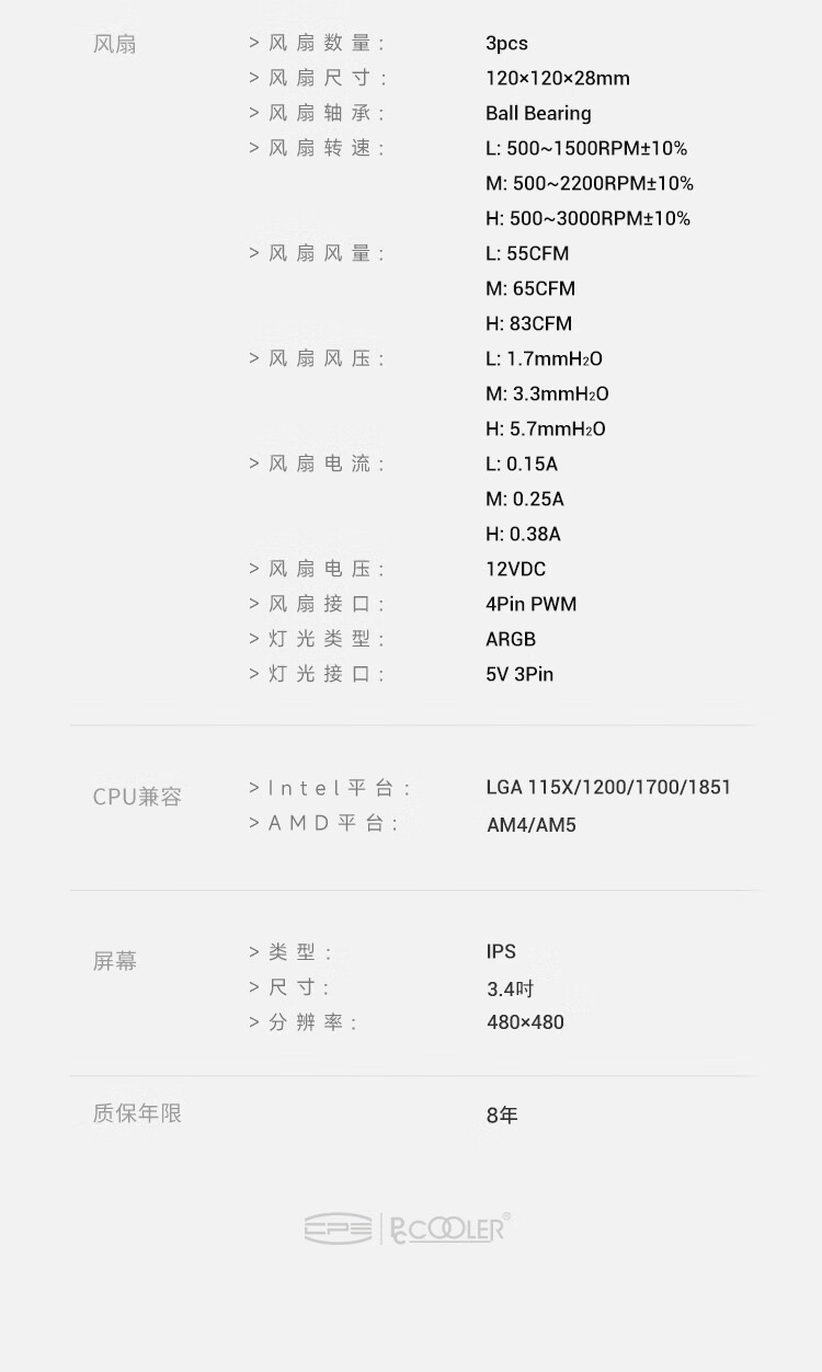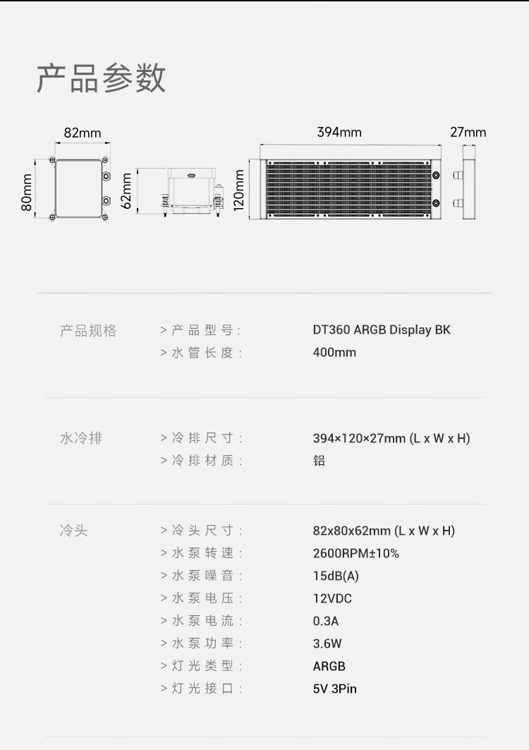 超频3(PCCOOLER)银翼DT360 ARGB Display BK屏显一体式CPU水冷散热器 /3.4吋IPS显示屏/8年质保/支持1851)