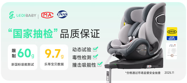 ledibaby乐蒂宝贝婴儿童安全座椅0-4-12岁汽车用宝宝座椅车载可坐躺 太空舱Pro+官配版【月影灰】