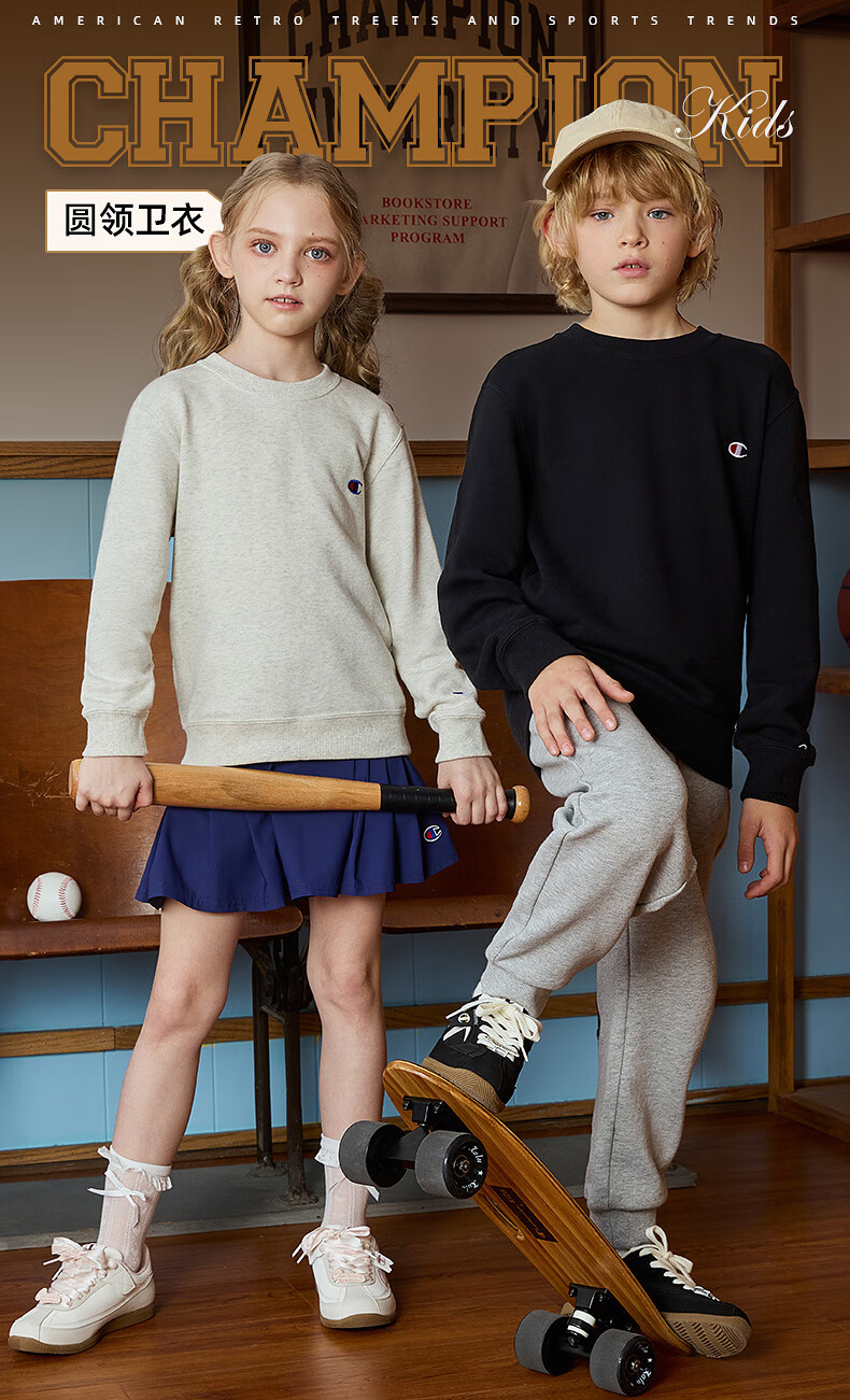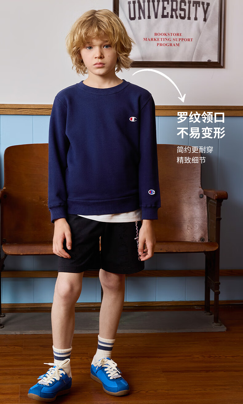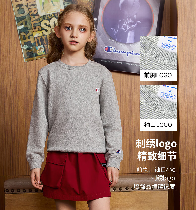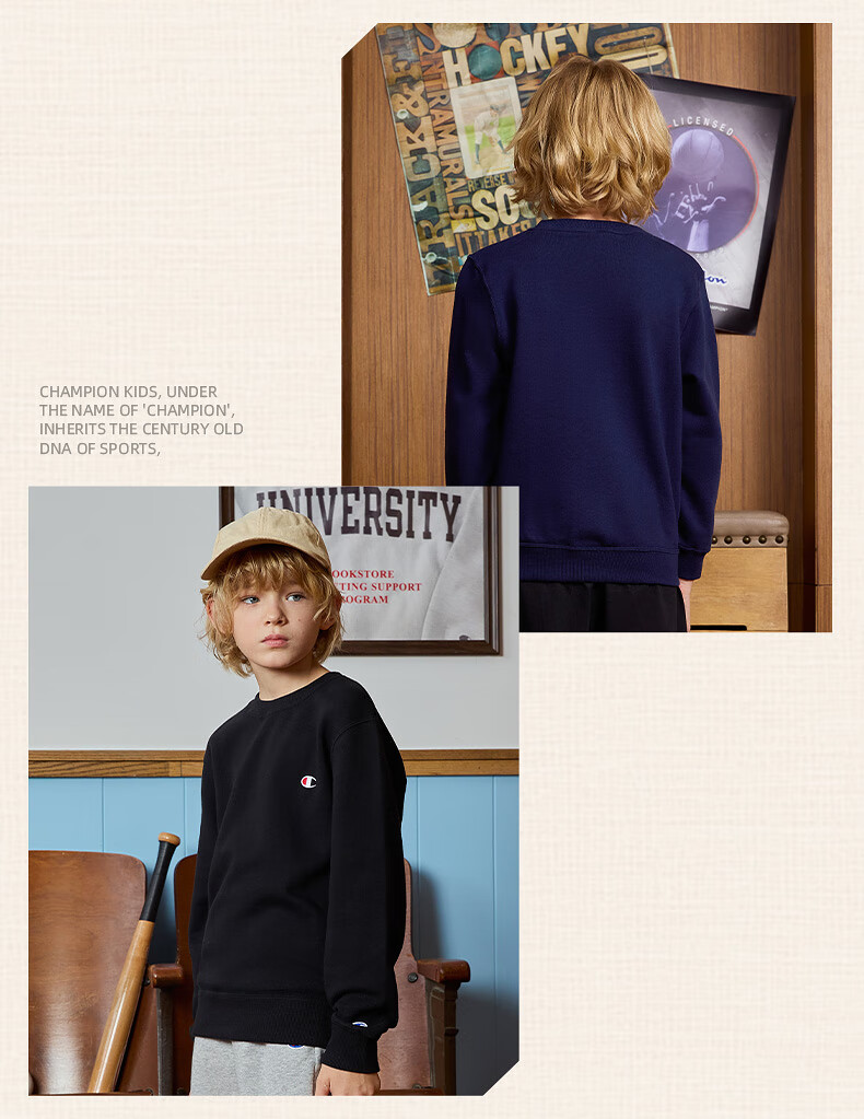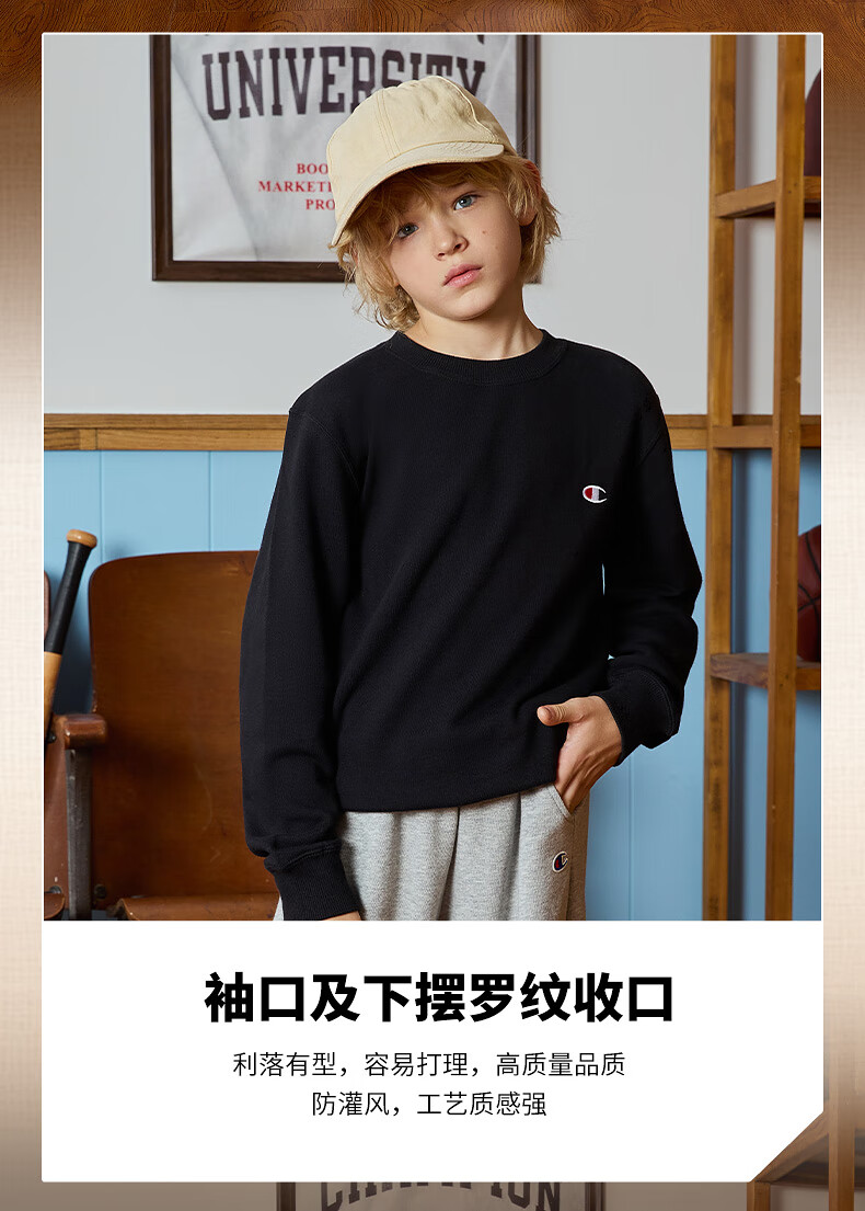 Champion冠军男女童圆领卫衣2025秋季新款经典刺绣小C标儿童上衣外套内搭