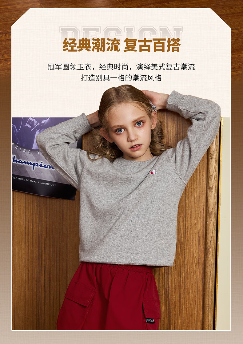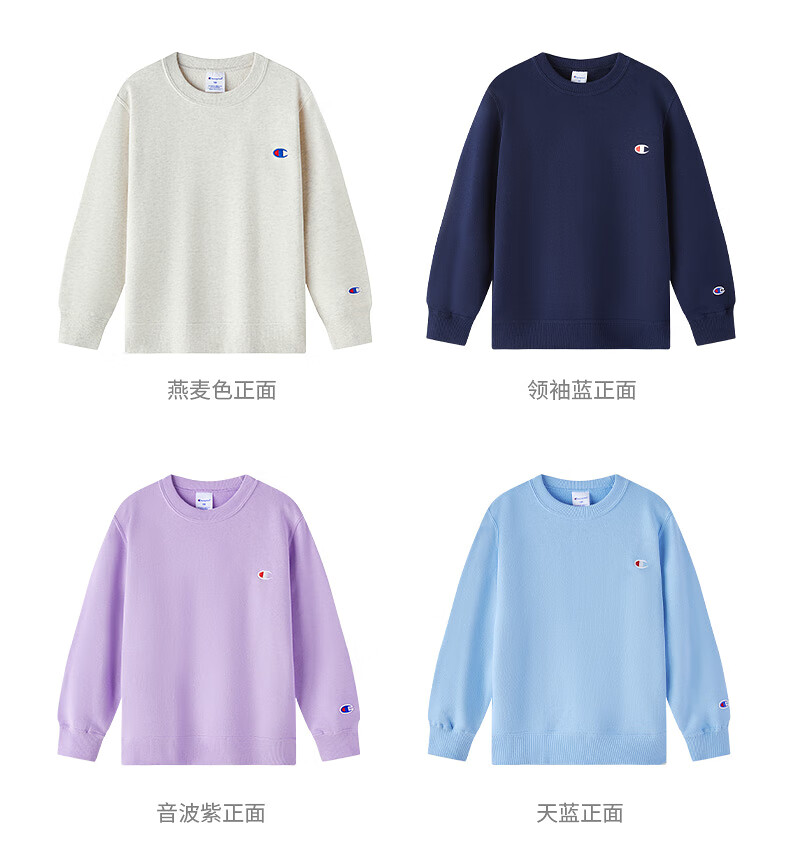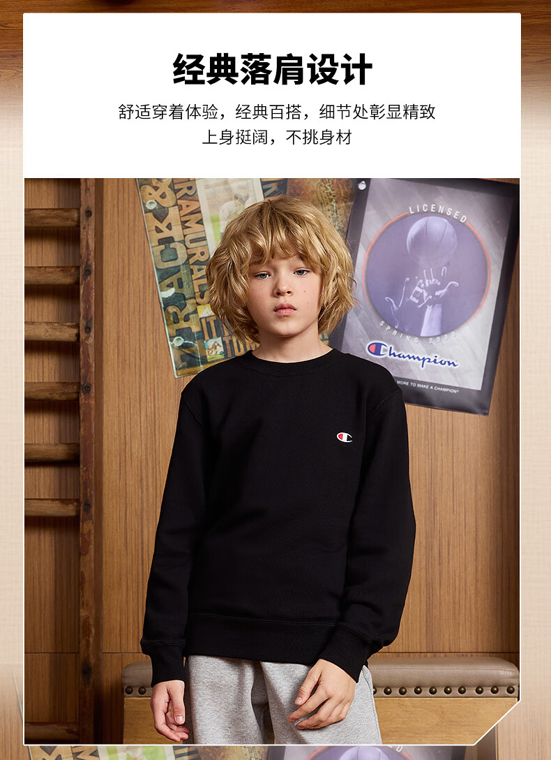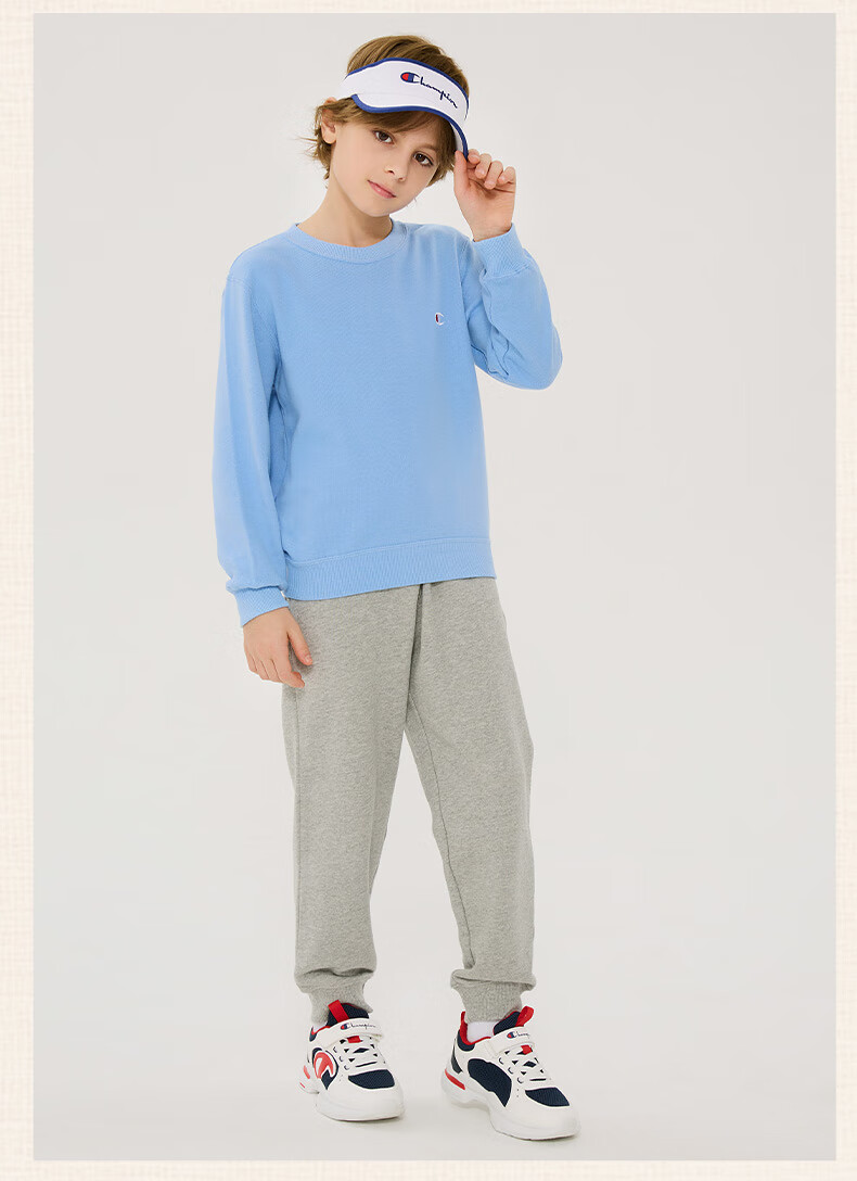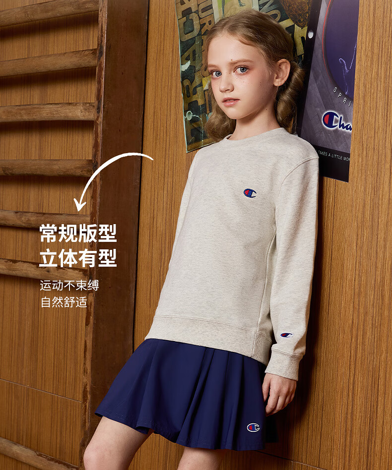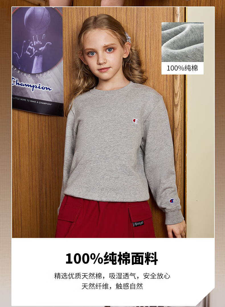 Champion冠军男女童圆领卫衣2025秋季新款经典刺绣小C标儿童上衣外套内搭