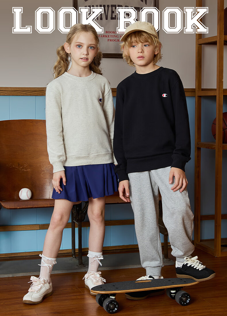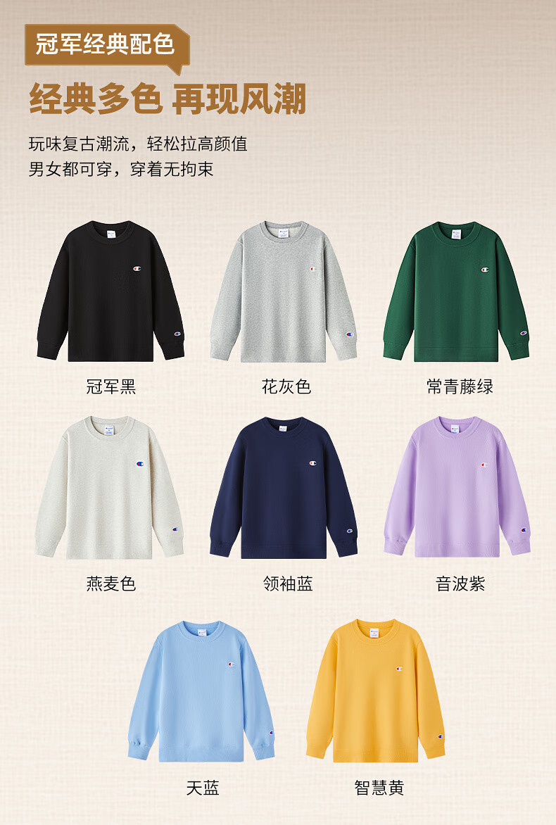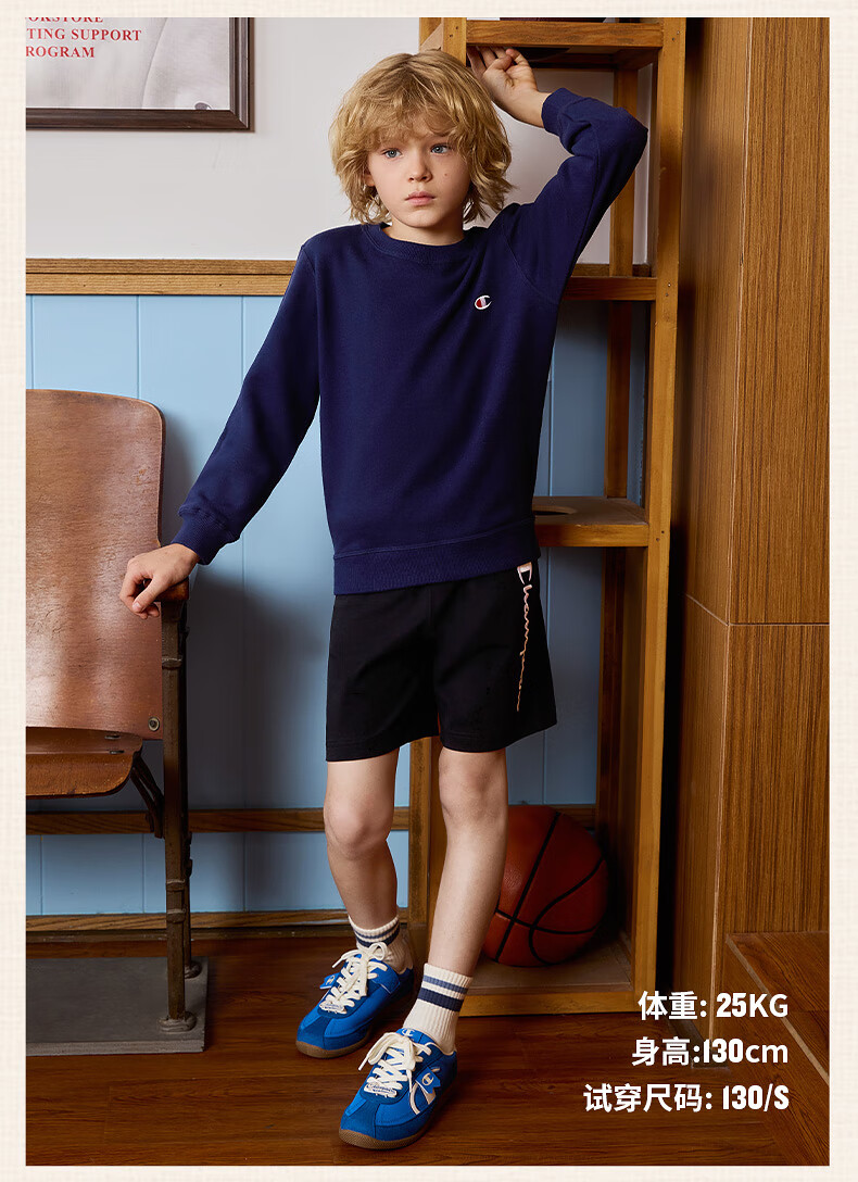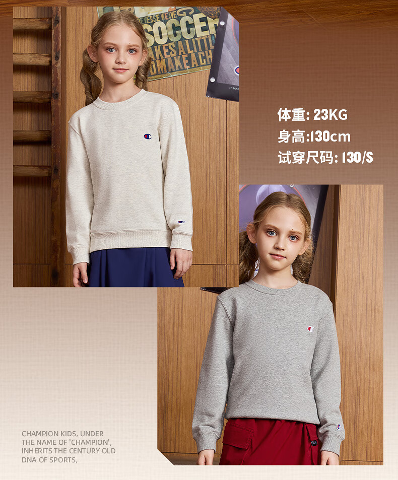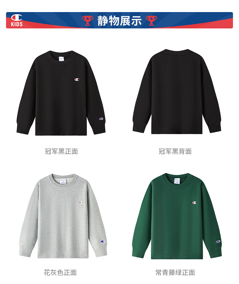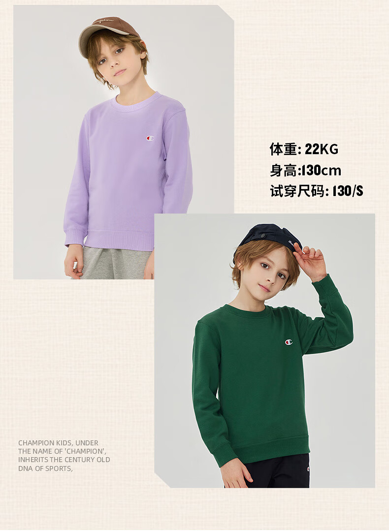 Champion冠军男女童圆领卫衣2025秋季新款经典刺绣小C标儿童上衣外套内搭
