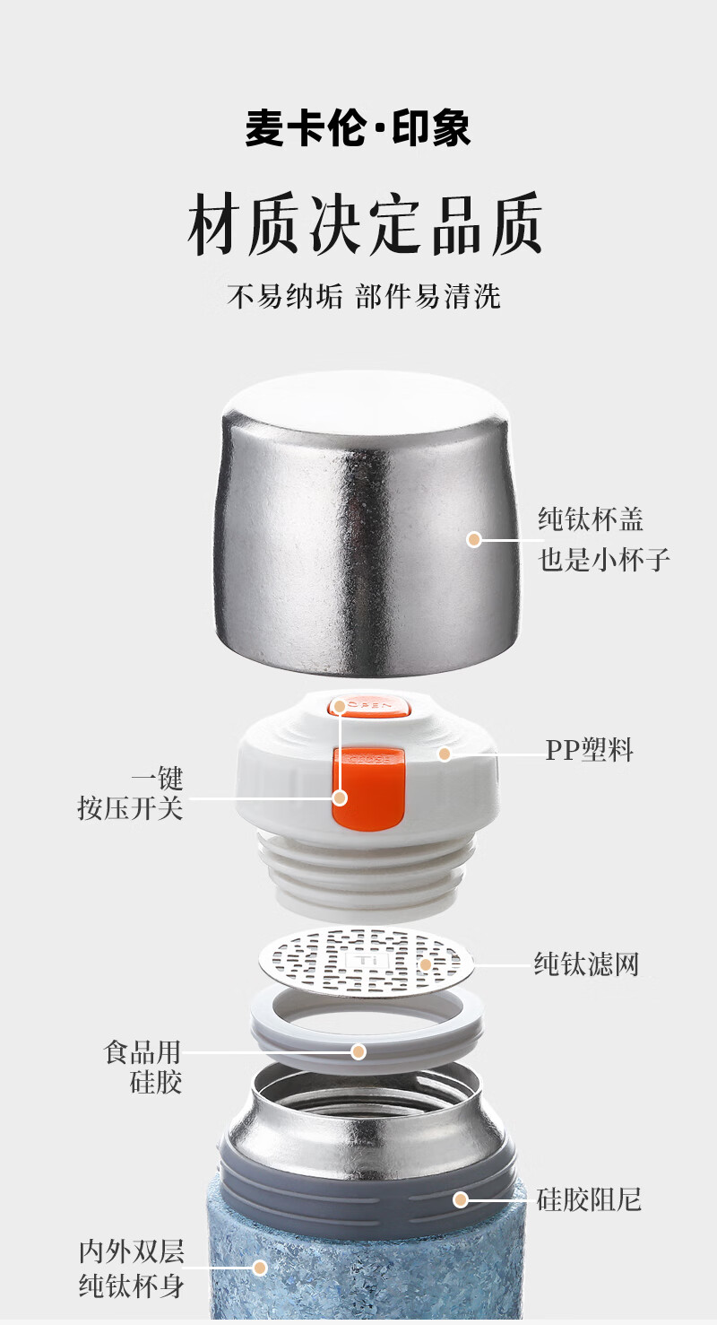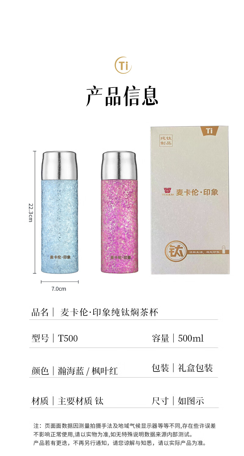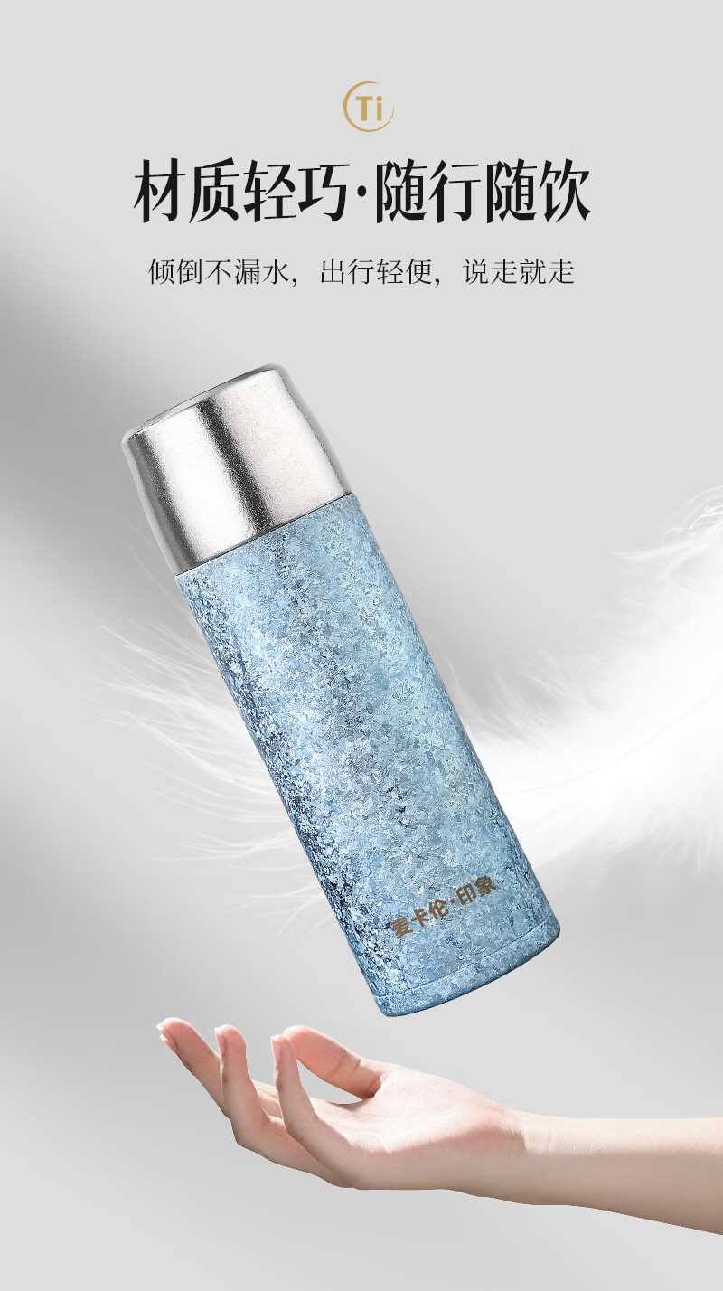 麦卡伦纯钛保温杯高档泡茶杯大容量钛水杯男女士杯子礼物(印象系列) 瀚海蓝500ML礼袋礼盒装