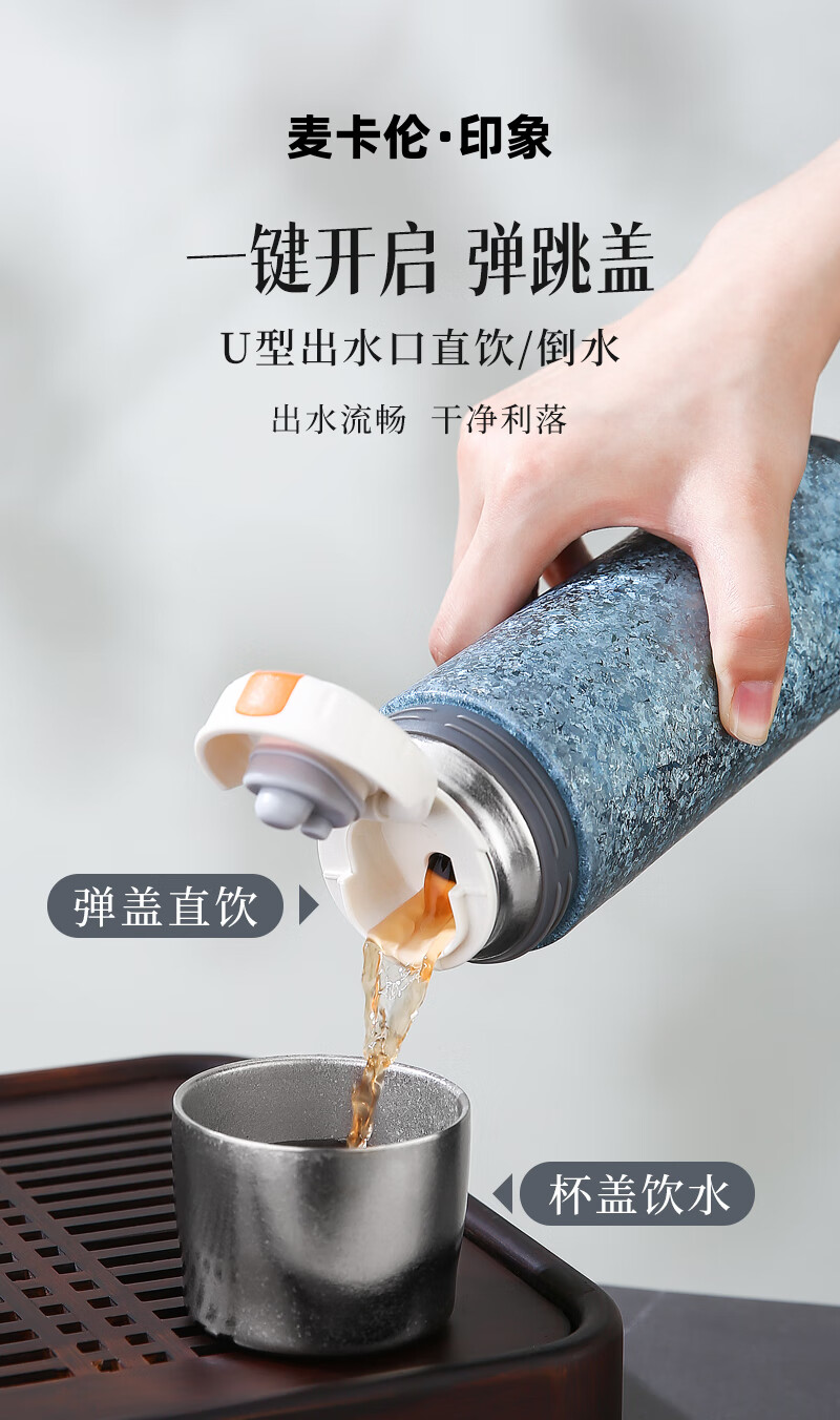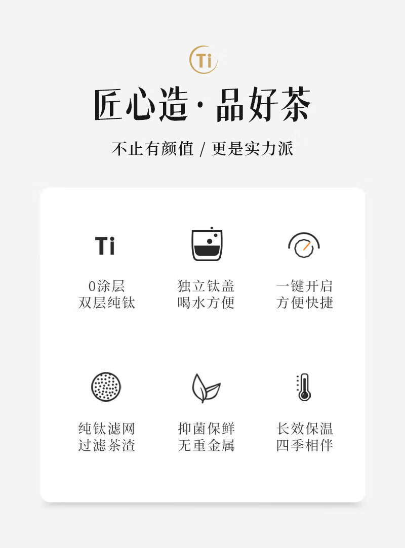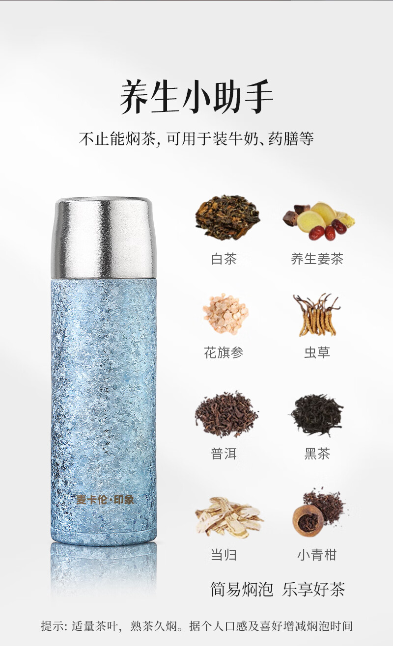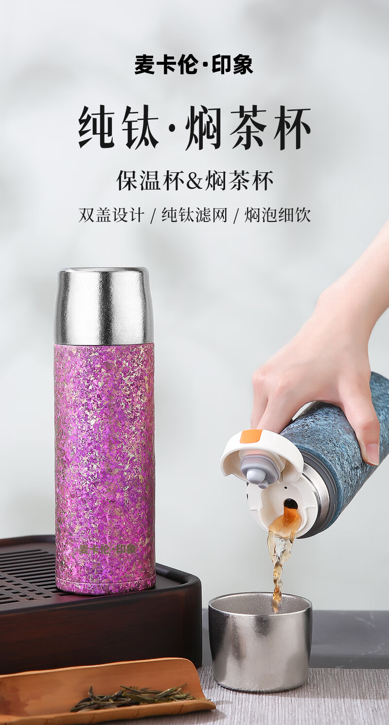麦卡伦纯钛保温杯高档泡茶杯大容量钛水杯男女士杯子礼物(印象系列) 瀚海蓝500ML礼袋礼盒装