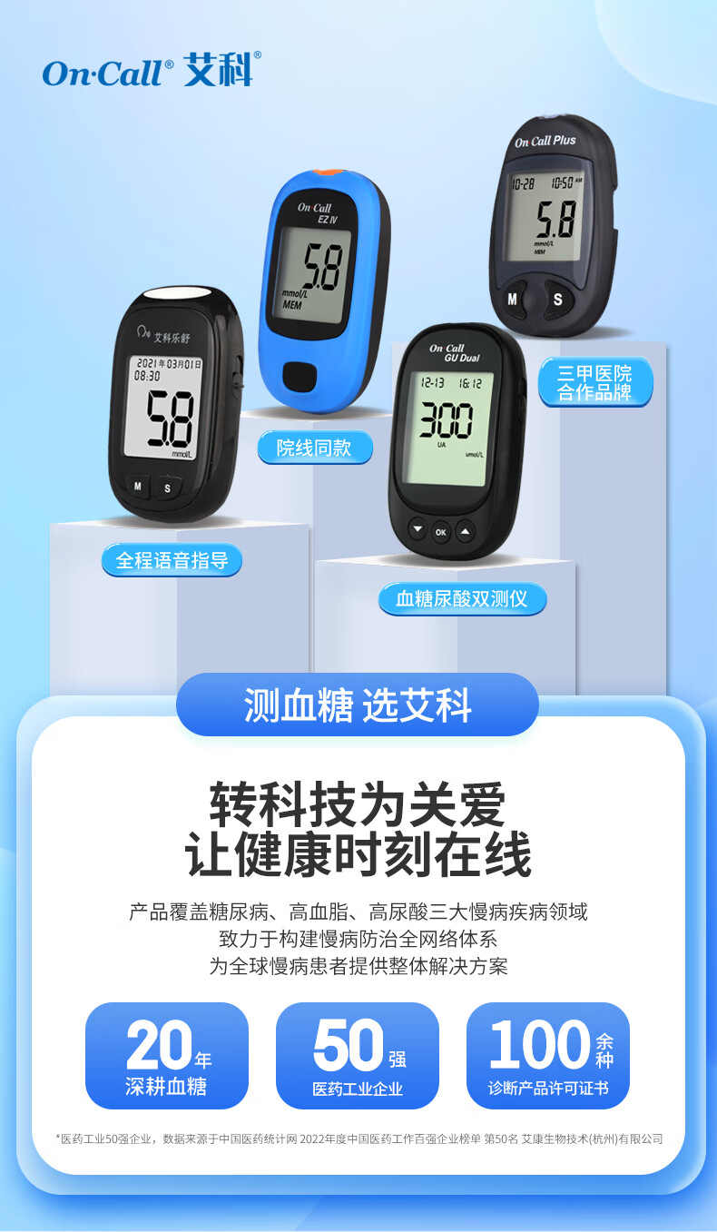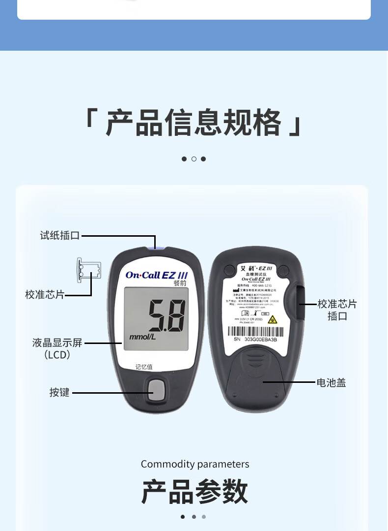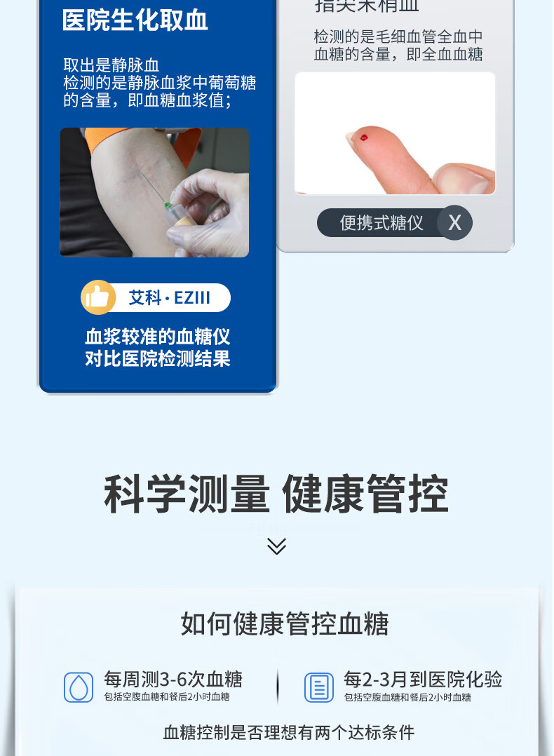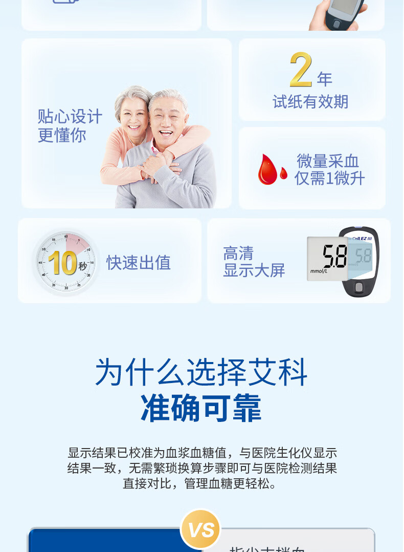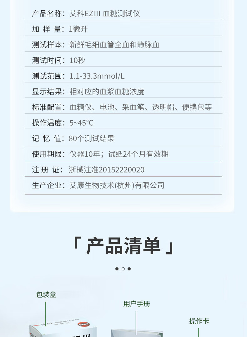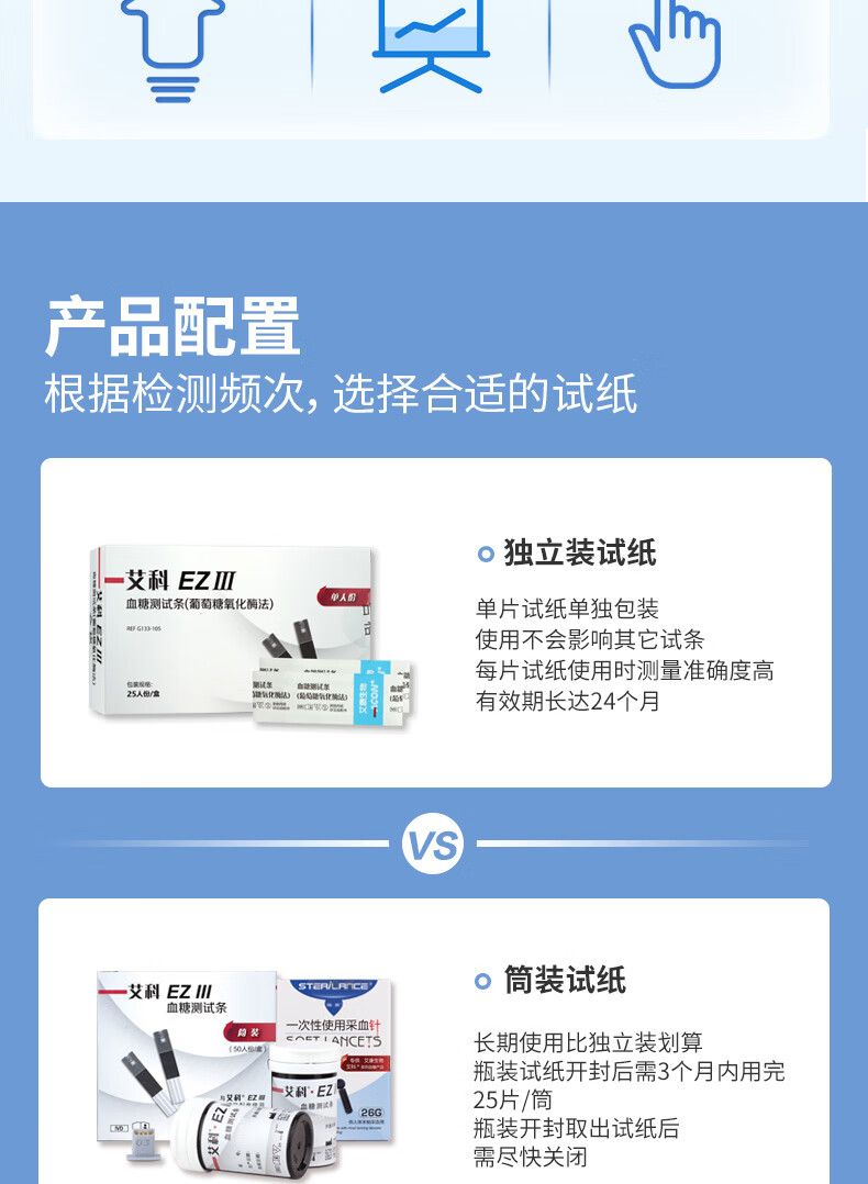 艾科血糖仪家用 EZⅢ血糖仪(仪器+100片独立包装试纸+100支采血针)