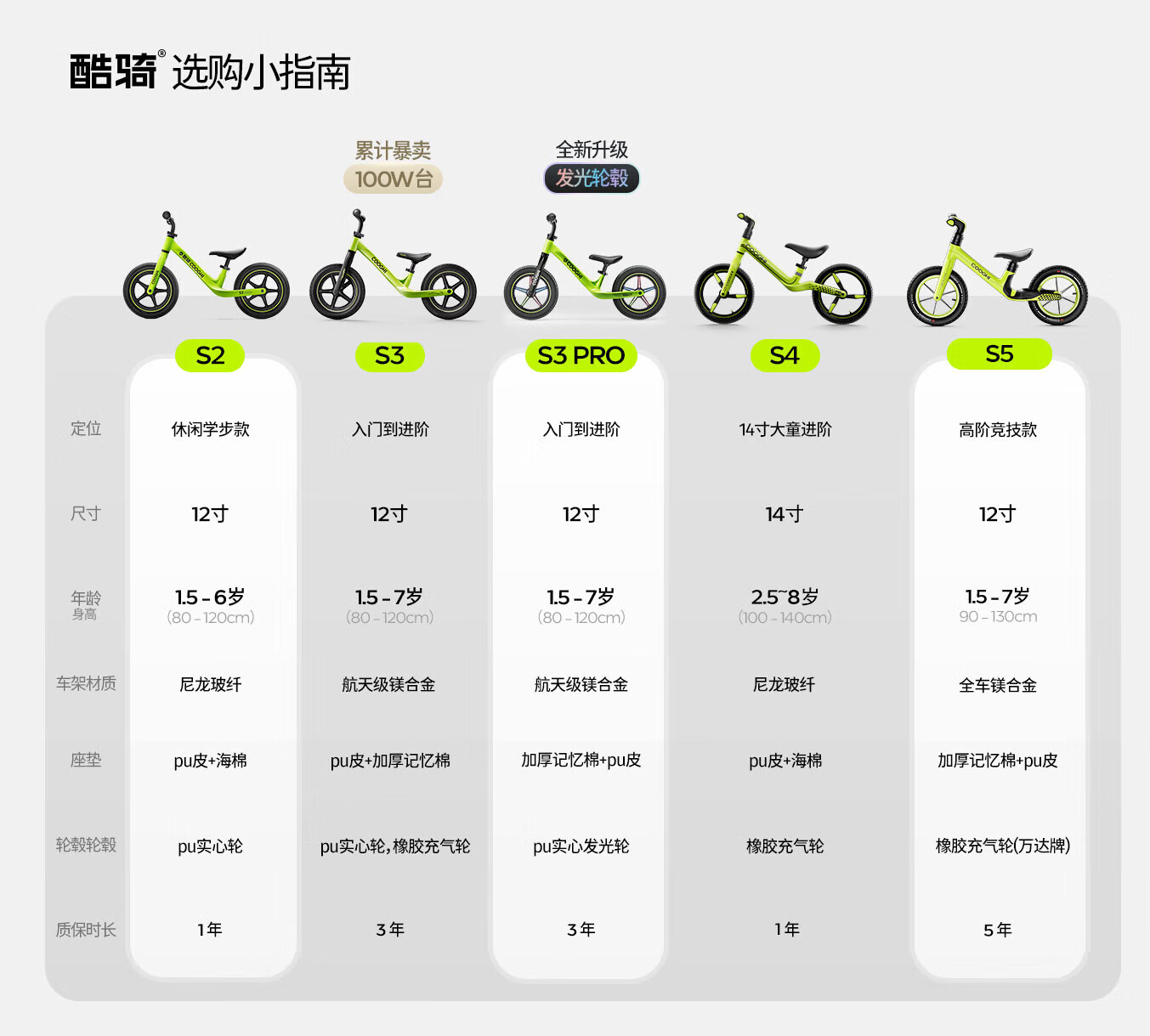 酷骑儿童平衡车3-8岁宝宝滑步车14寸轻便车身大童休闲充气轮S4 酷奇