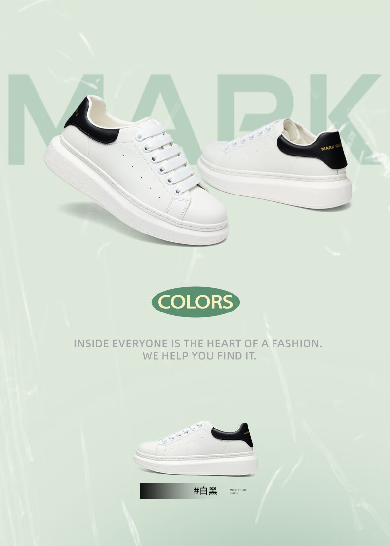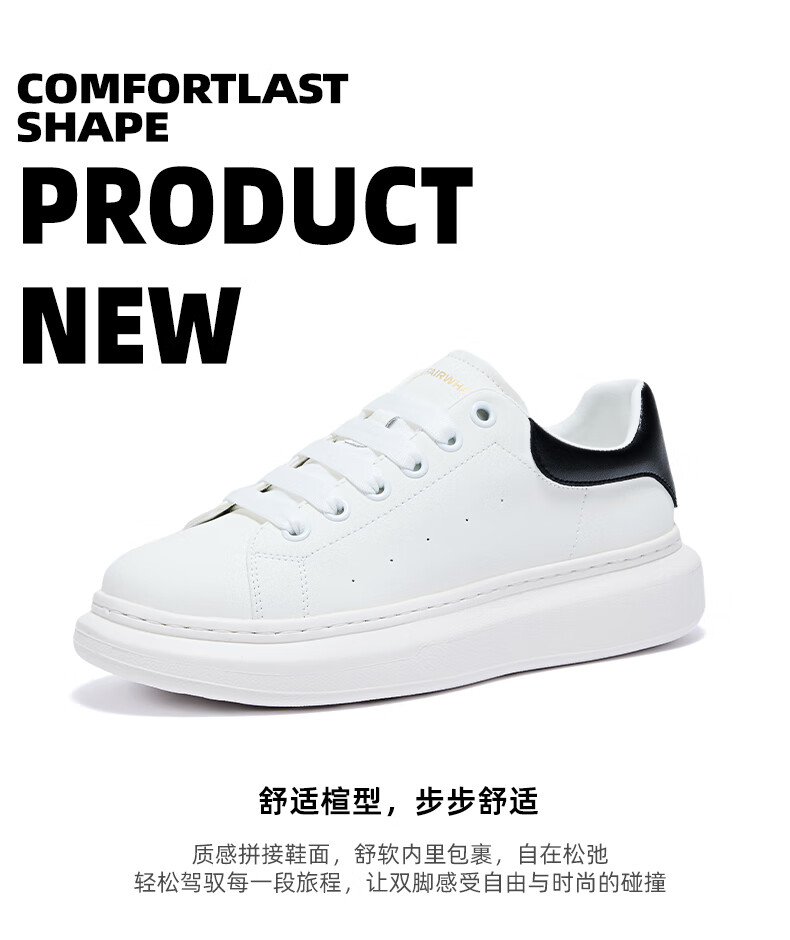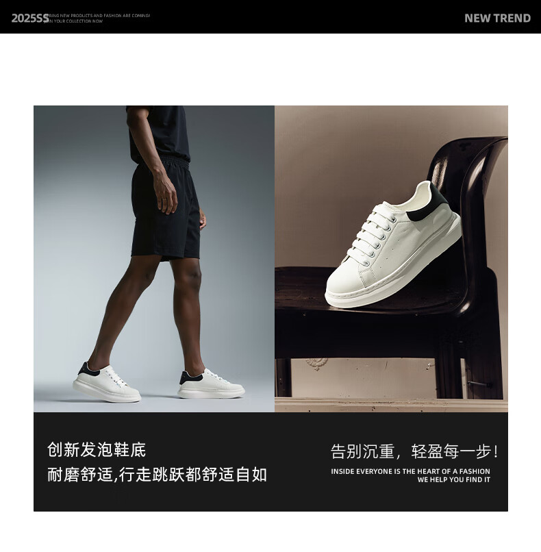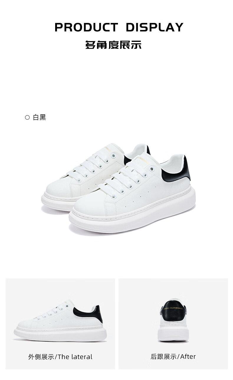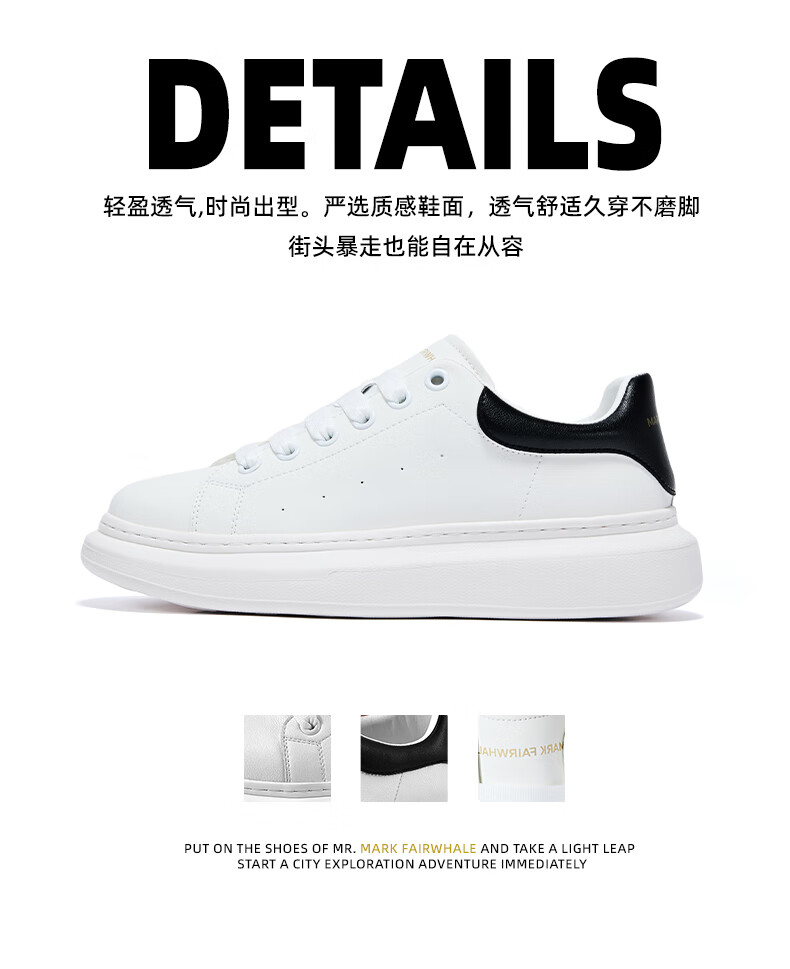 马克华菲男士小白鞋男2025新款透气厚底休闲鞋百搭运动板鞋 白黑色 41