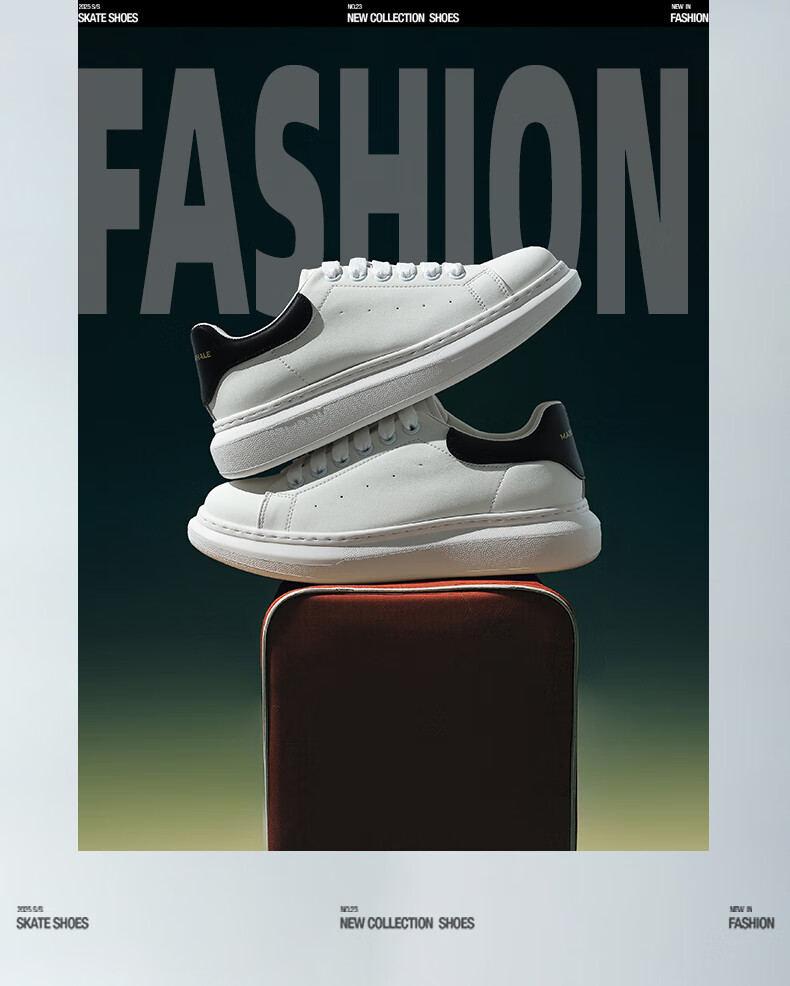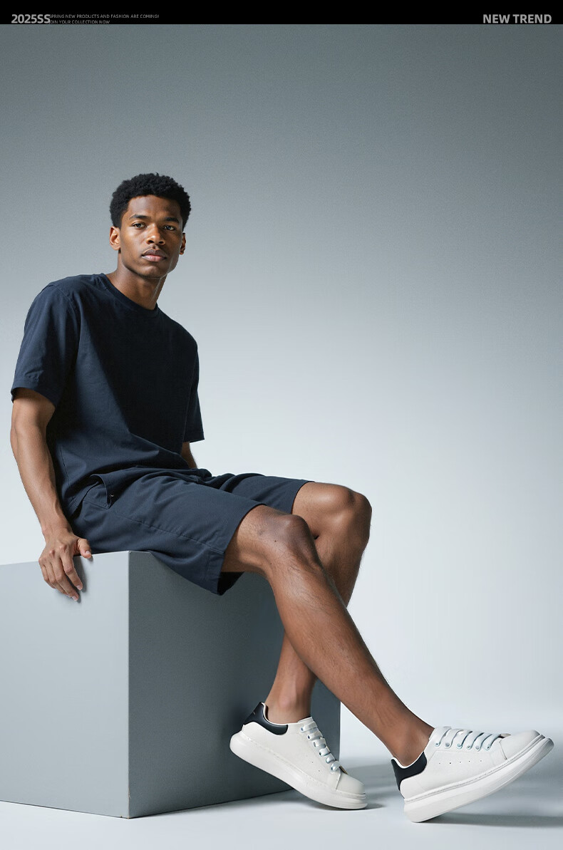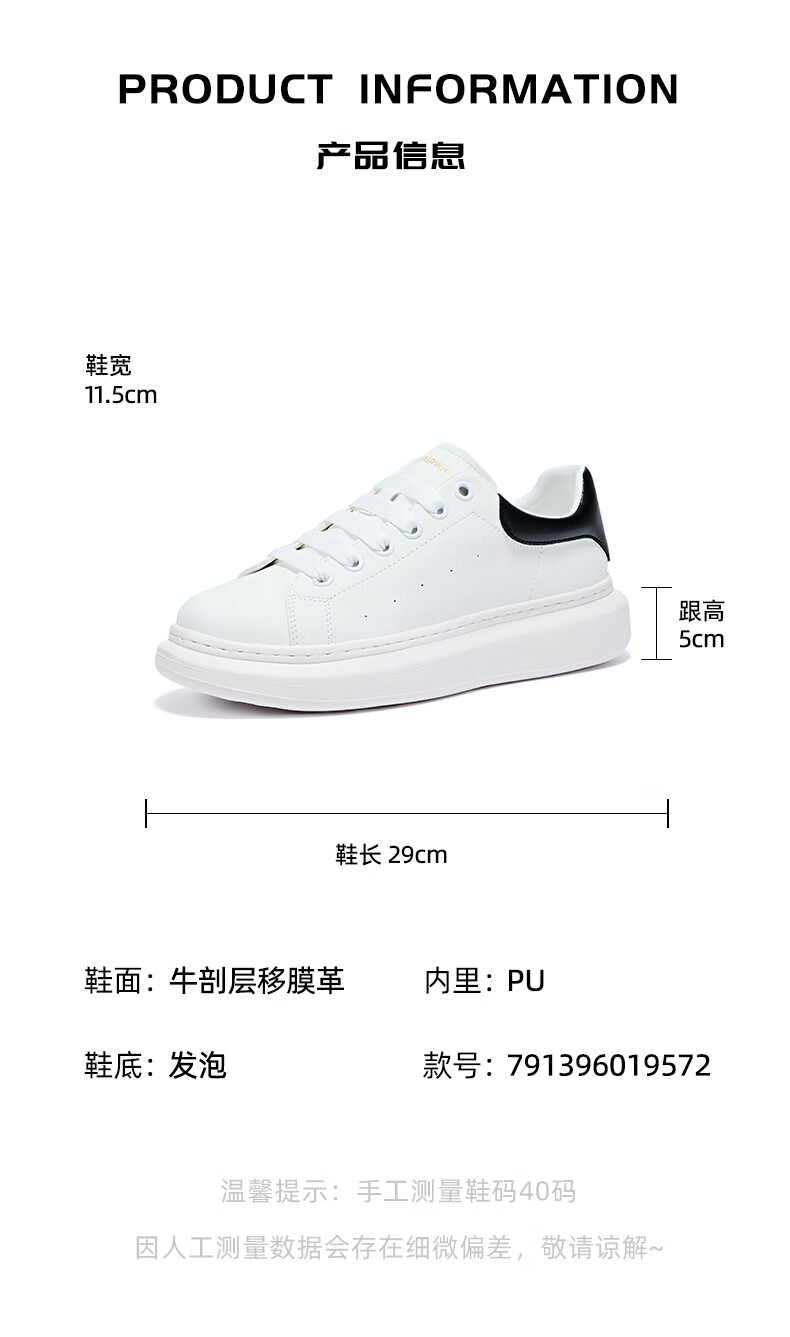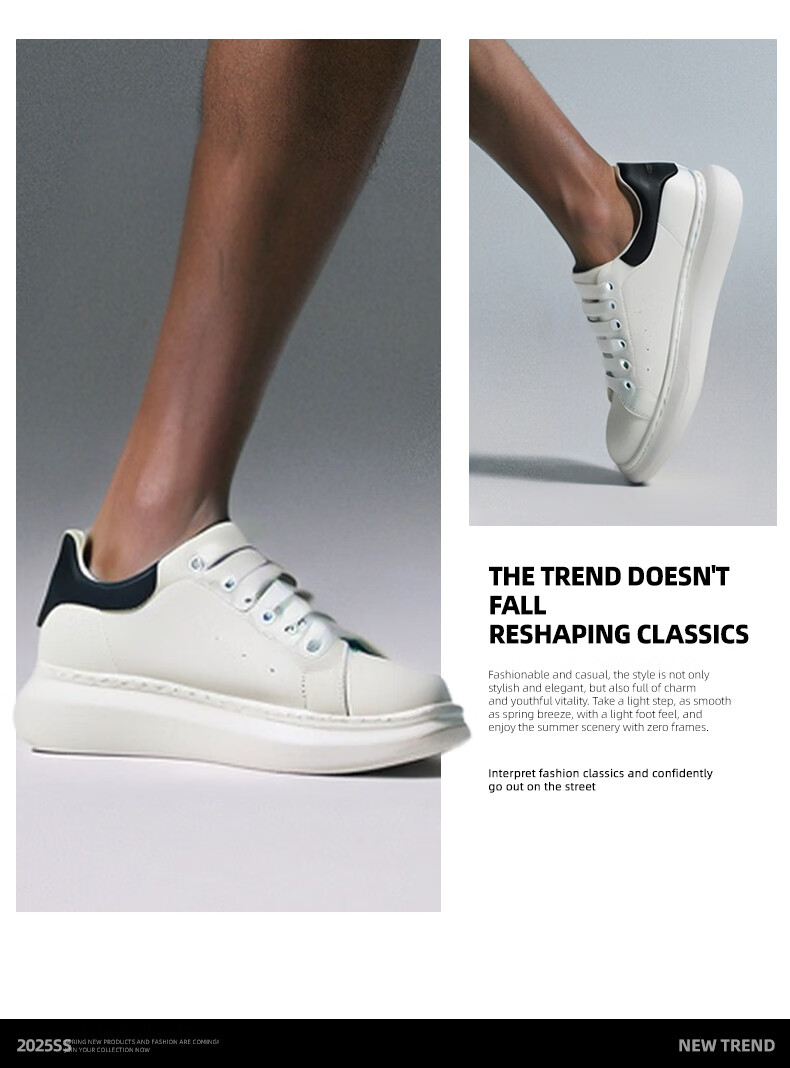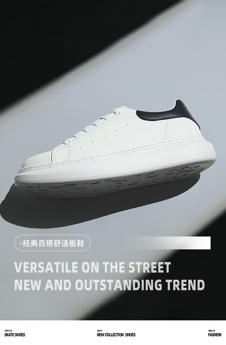 马克华菲男士小白鞋男2025新款透气厚底休闲鞋百搭运动板鞋 白黑色 41