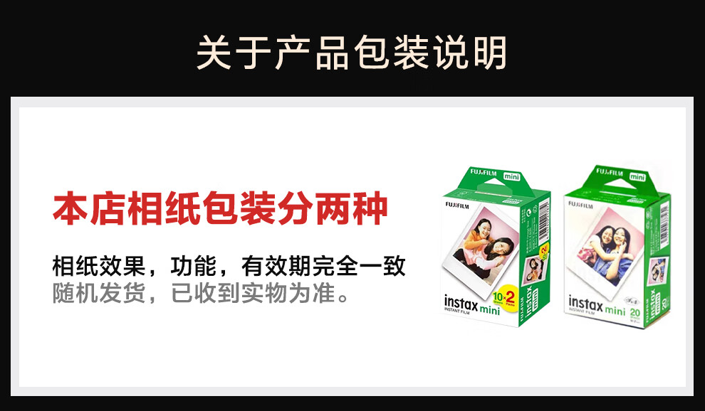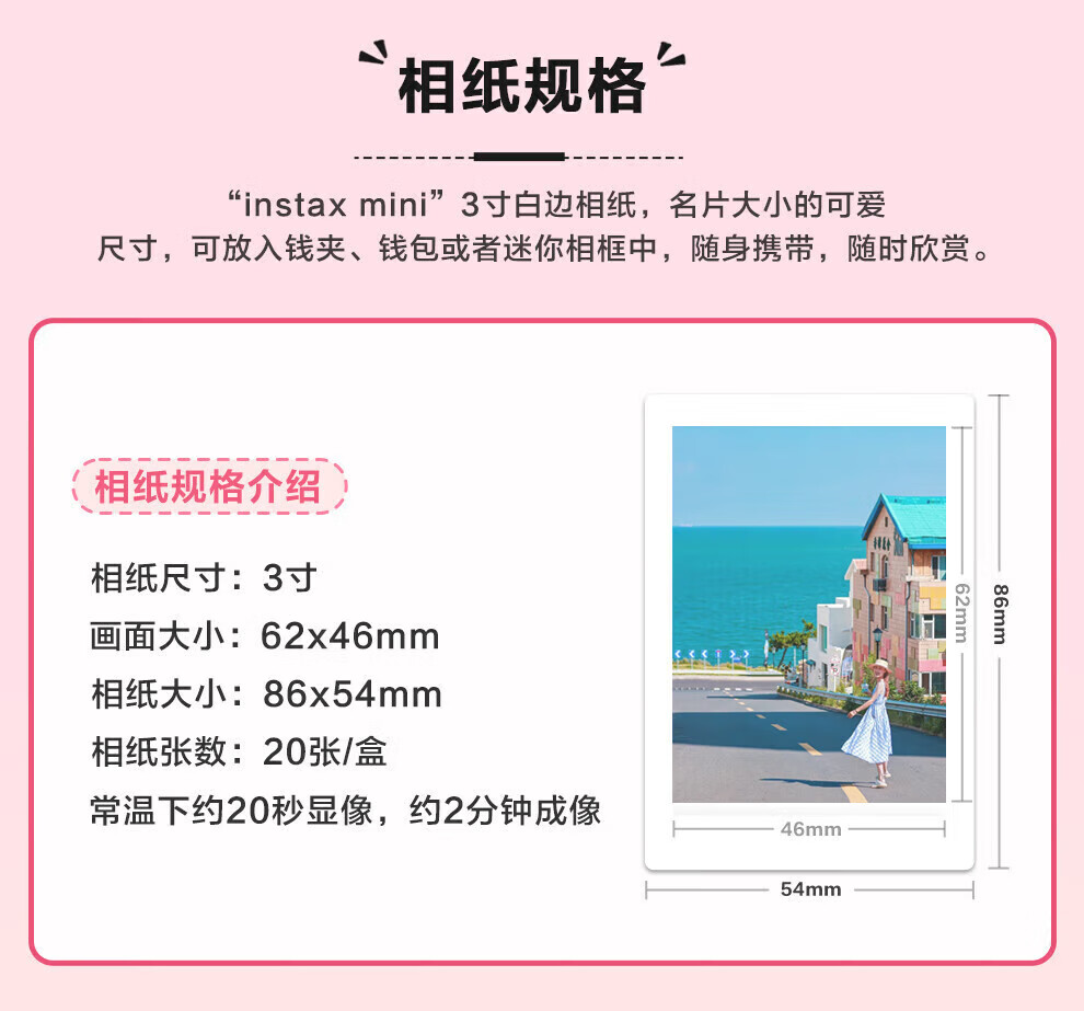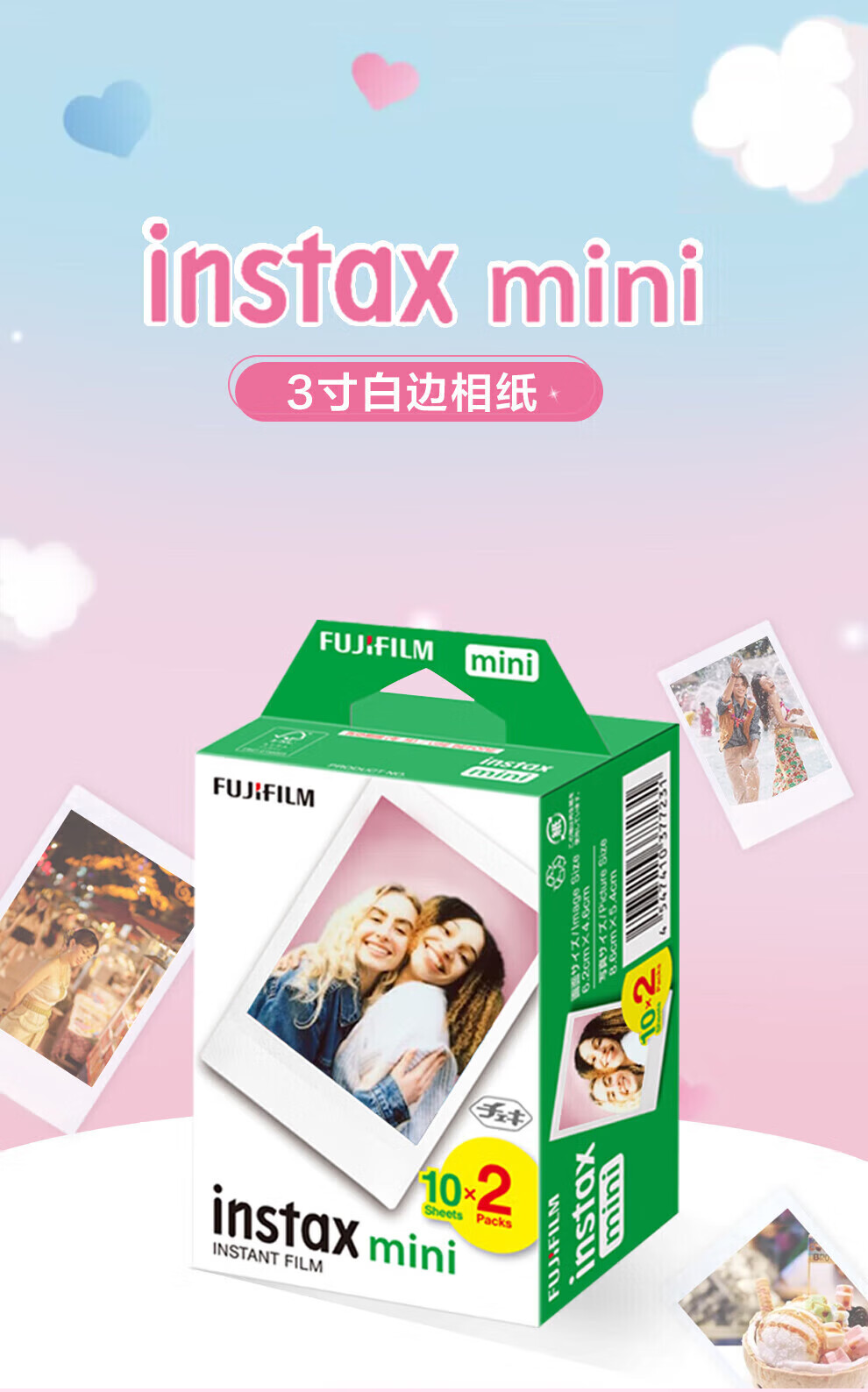 富士(FUJIFILM)拍立得相纸彩边适用于mini7s/8/9/11/12/25/90/wide圣诞 年会奖品 mini相纸 20张