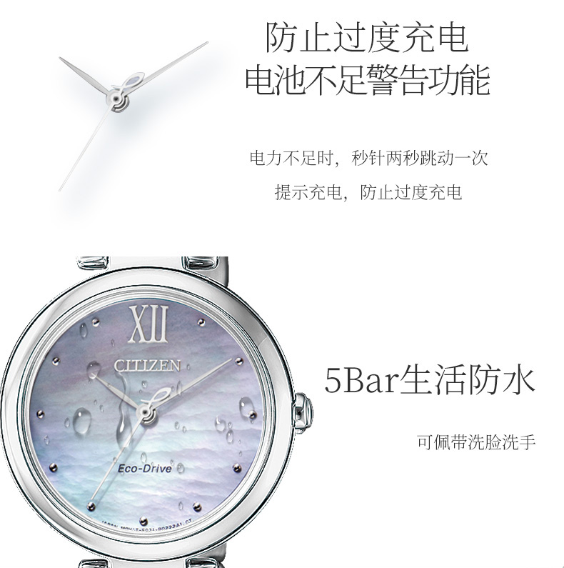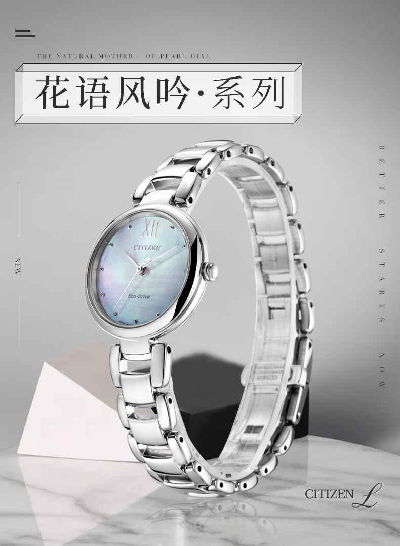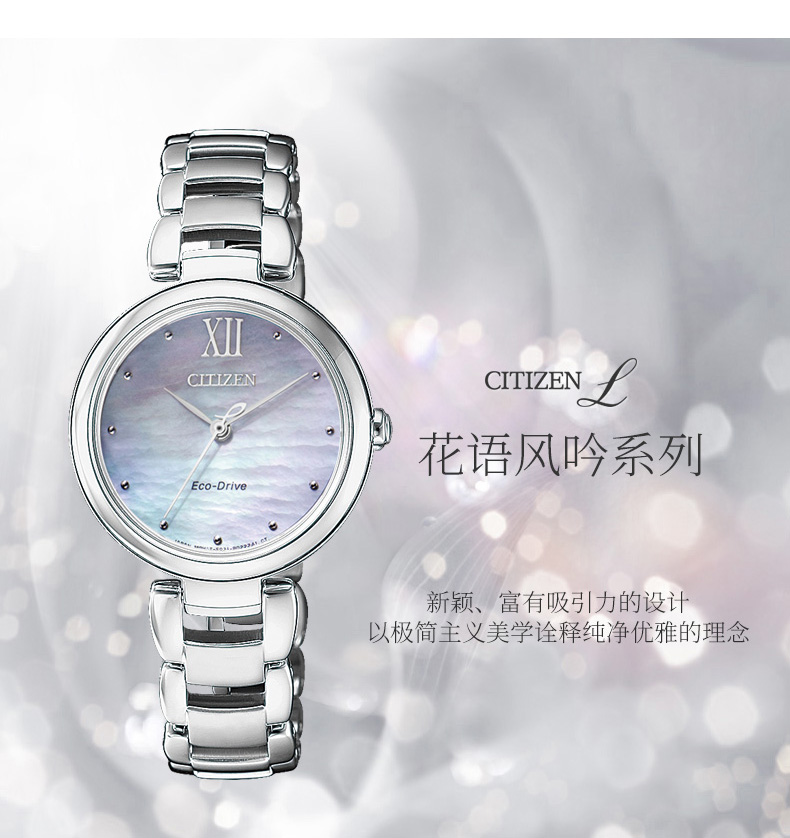 西铁城(CITIZEN)手表女日韩表L系列光动能贝母盘钢带时尚送新年礼物EM0530-81D