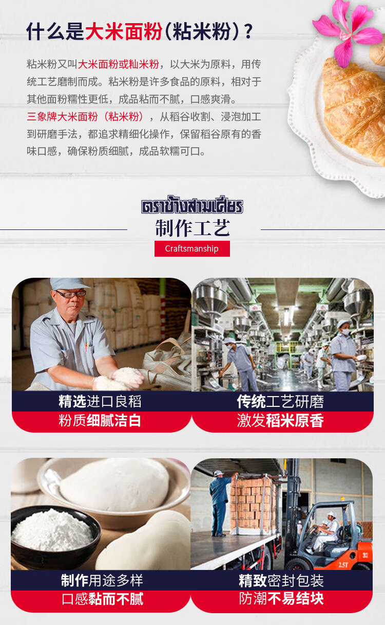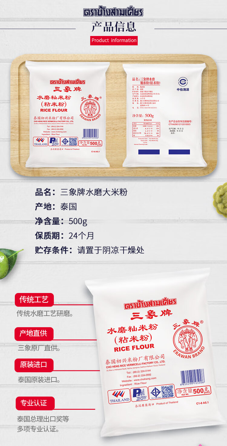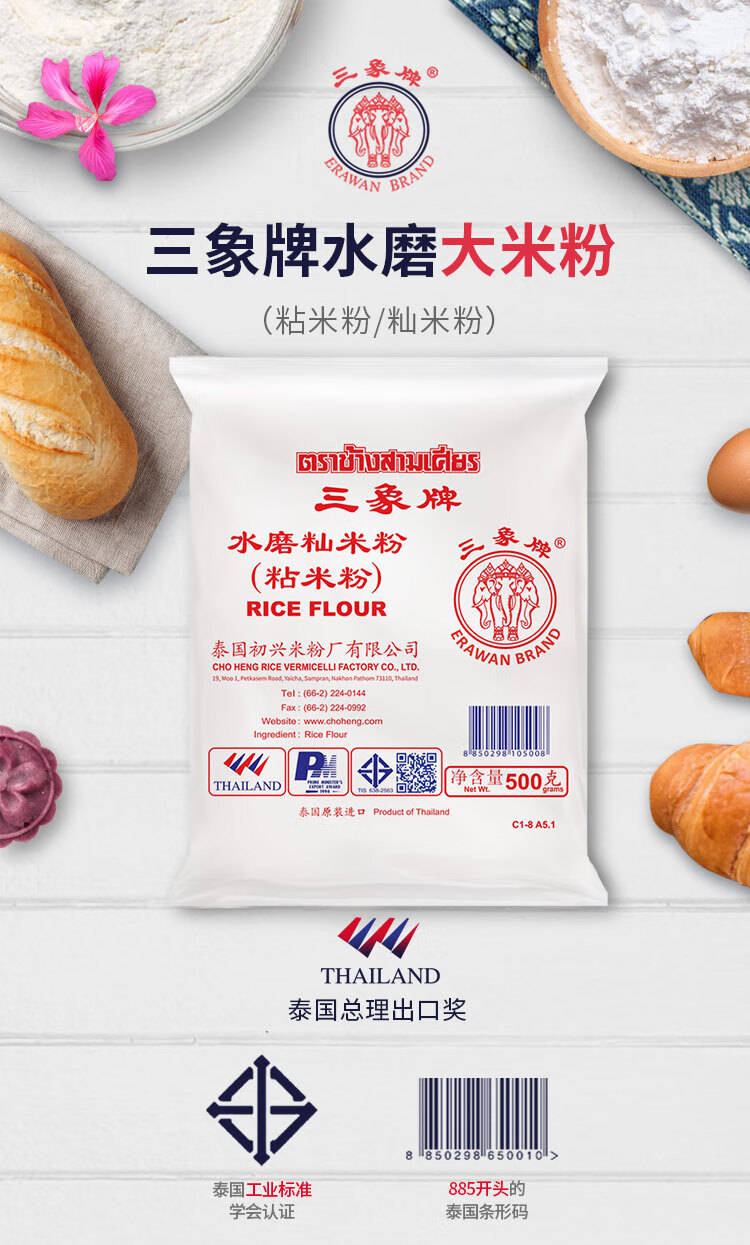 三象水磨籼米粉(粘米粉) 肠粉专用粉 年糕萝卜糕原料 500g 泰国进口