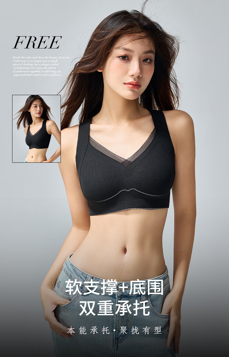 都市丽人内衣女士内衣文胸运动内衣聚拢防下垂防外扩收副乳2025年新款胸罩 灰色-无痕内衣大胸显小性感内衣 L 36/80ABC(建议体重105-120斤)