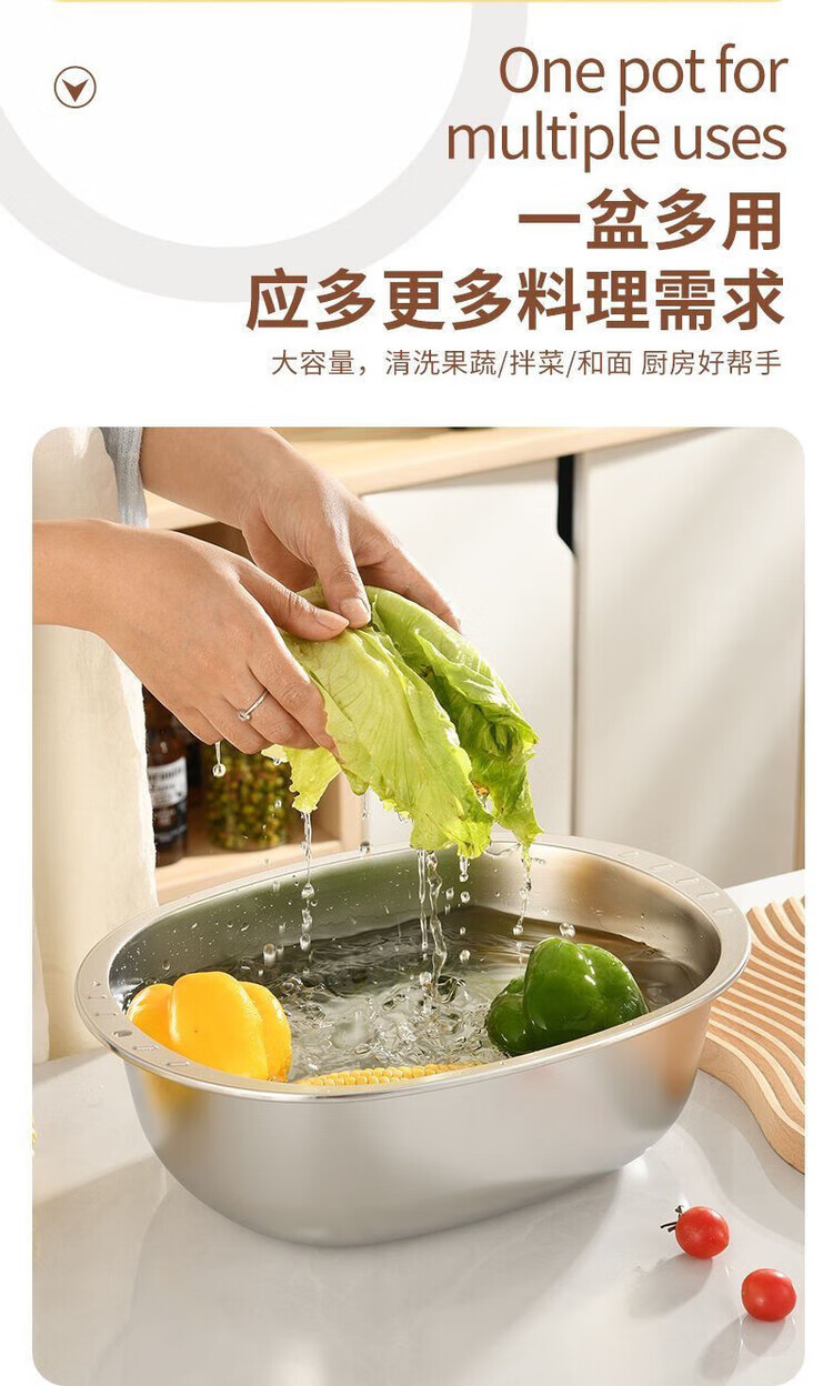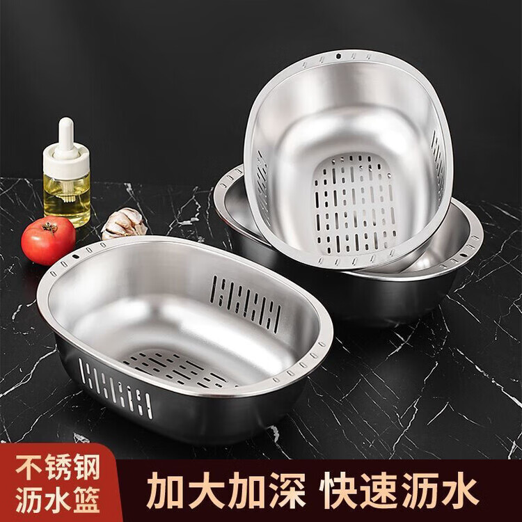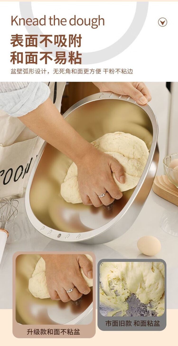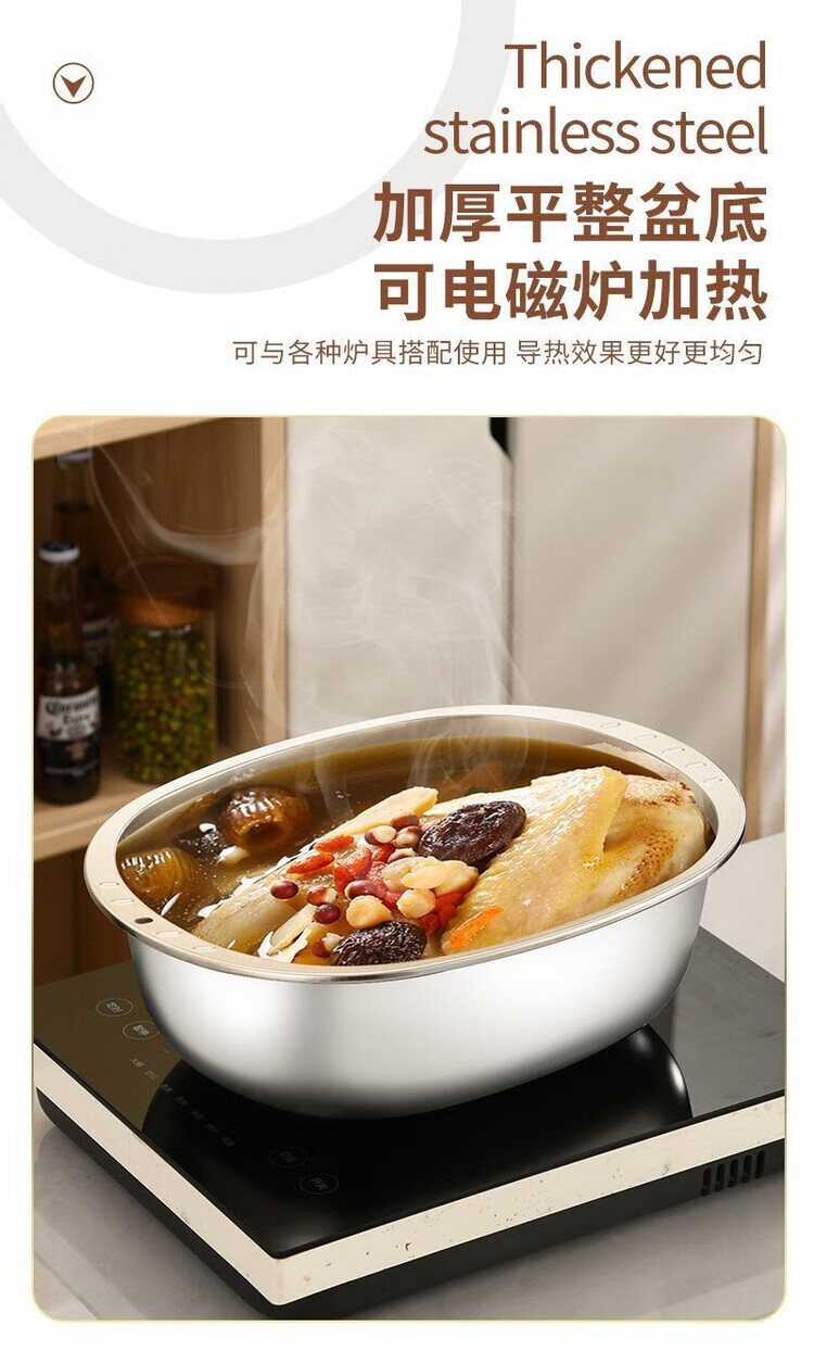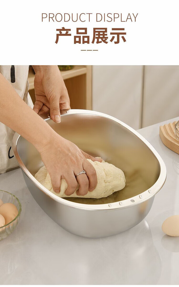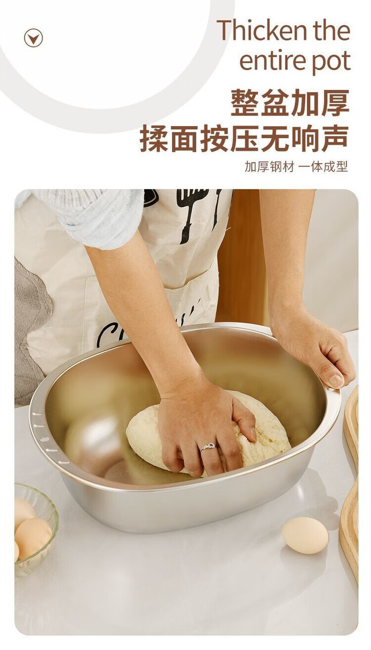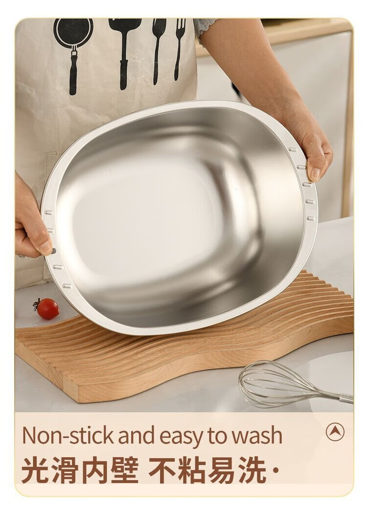 LZJV不锈钢加厚316家用食品级厨房特厚蛋型面盆蛋糕洗菜椭圆形盆 特厚不锈钢和面盆