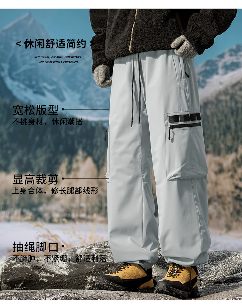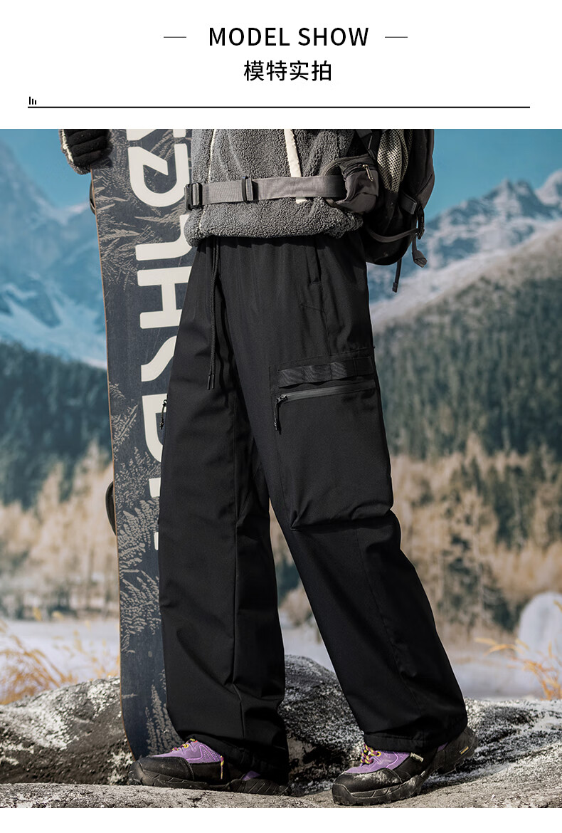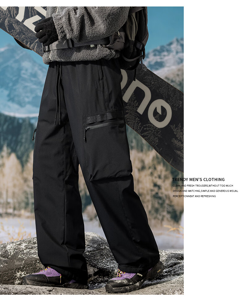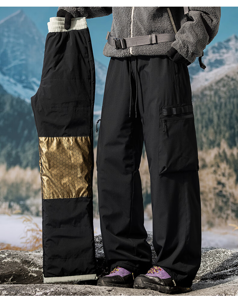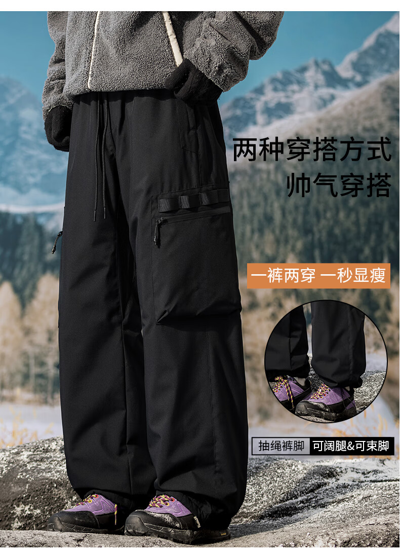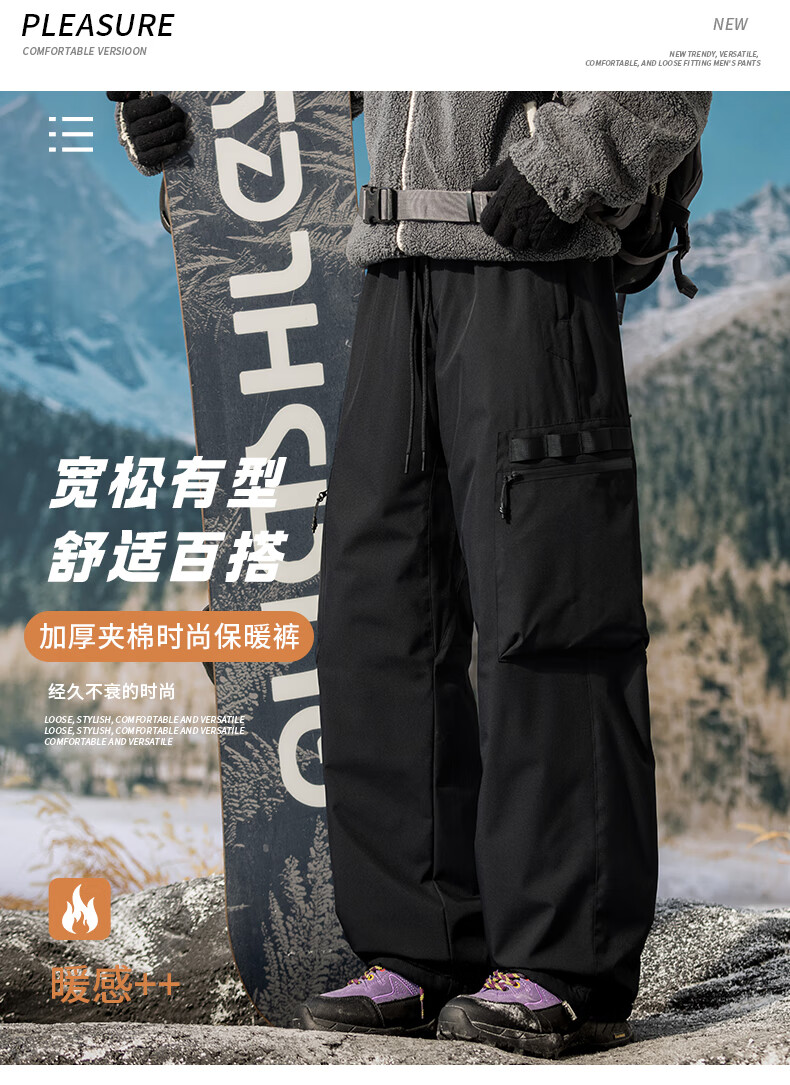 HIPANDA你好熊猫棉裤男2025冬季新款加绒加厚石墨烯宽松直筒长裤子男 黑色 3XL