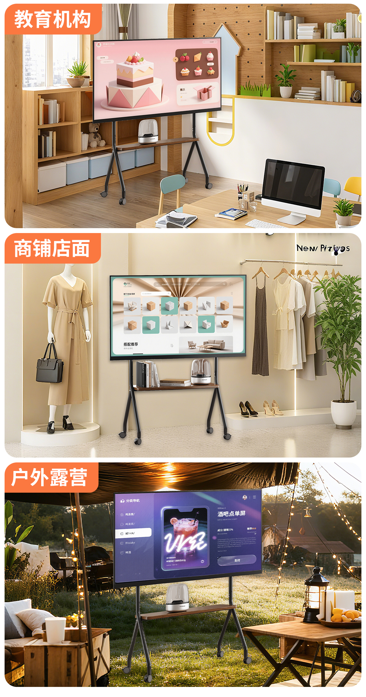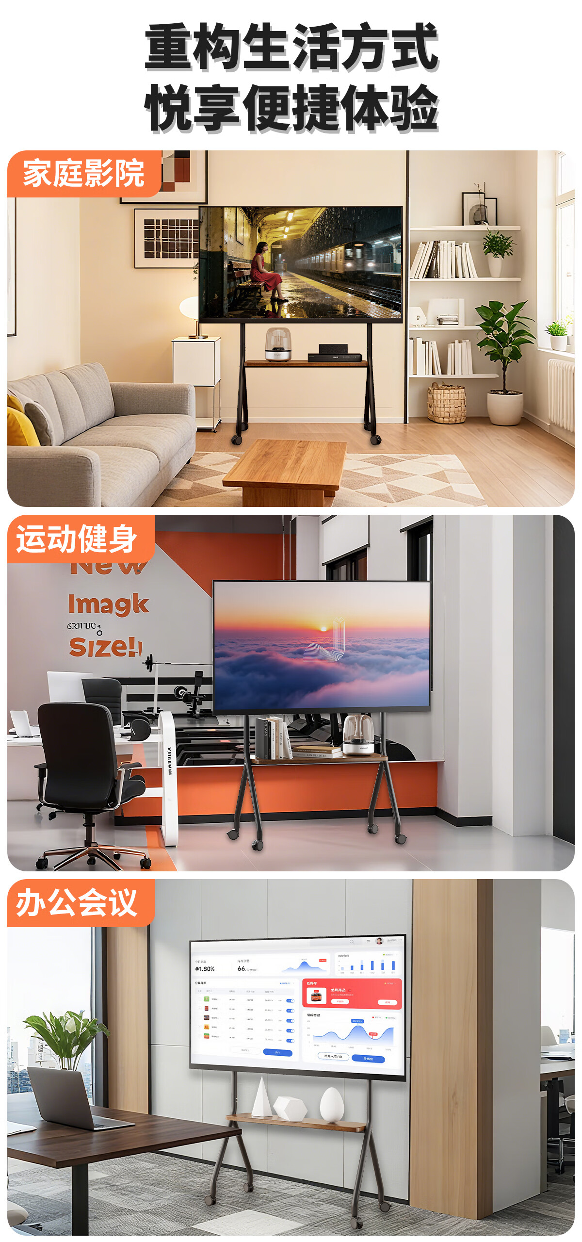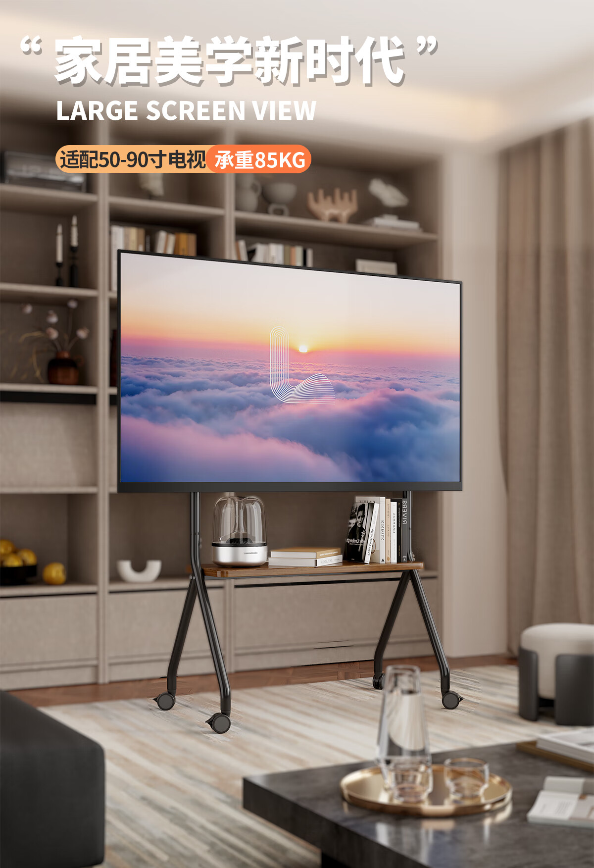 星凯仕电视机移动支架电视支架落地带轮艺术推车适用于小米创维65/75/85英寸挂架 松露黑【40-75英寸】艺术时尚支架