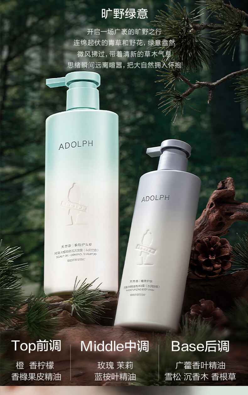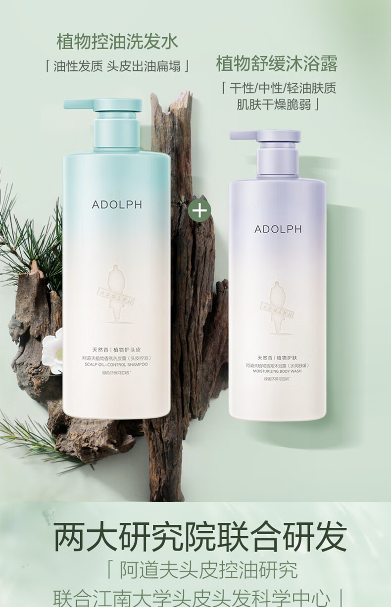 阿道夫植物香氛洗发水沐浴露套装 洗护套装控油去屑洗头膏男女 控油洗发水400ml+洗发水400ml 天然香