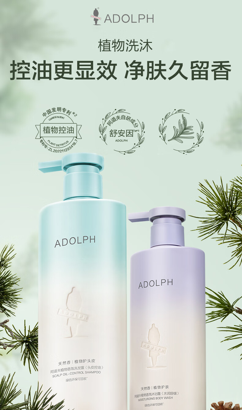 阿道夫洗发水套装518ml 控油去屑蓬松亮泽丝滑洗发膏露柔顺 男士女士 祛屑洗发水518ml+沐浴露400ml 留香