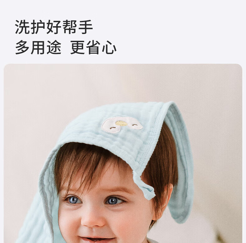 嫚熙(EMXEE)新品婴儿方巾婴童六层泡泡纱小方巾(四条装) 小狐狸+小兔子+小企鹅+小企鹅