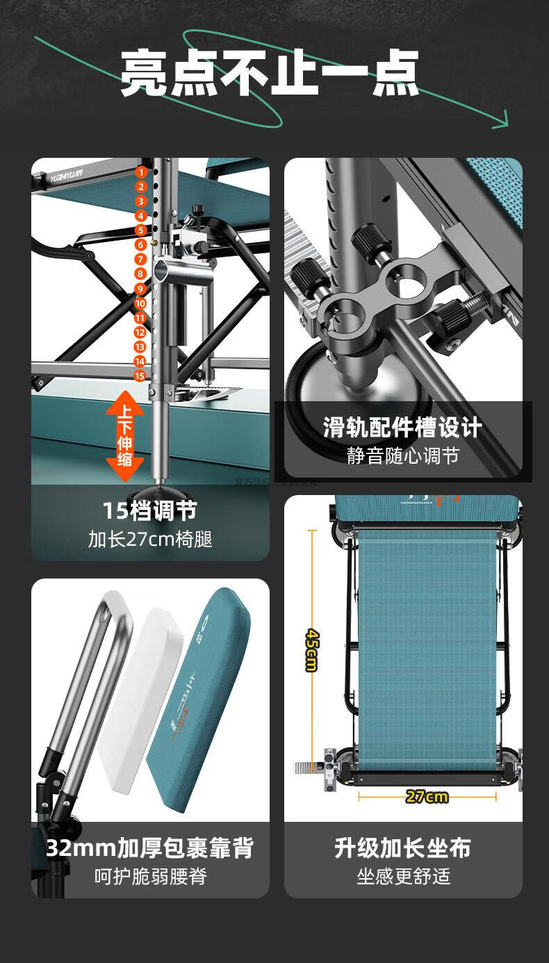 渔之源(Yuzhiyuan)2024新款骑士钓椅新型多功能钓鱼椅野钓便携可调节多地形折叠椅子 免拆滑轨配件15档调节】套装 标准套餐