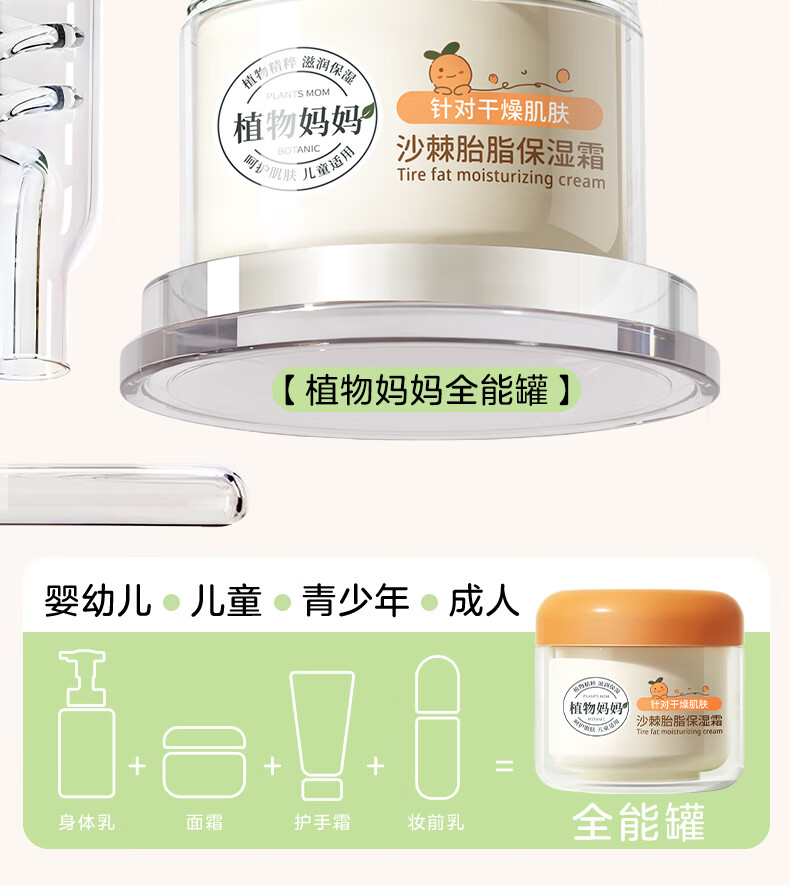 植物妈妈儿童面霜宝宝面霜身体乳深层补水保湿舒缓干痒面霜植萃沙棘保湿霜 【全身可用】沙棘保湿霜300g