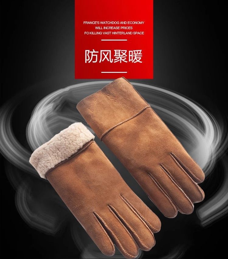 同款新款皮毛一体手套冬加绒加厚保暖防寒骑车麂皮绒翻毛皮 防风保暖手套-黑色-1双(袋装)
