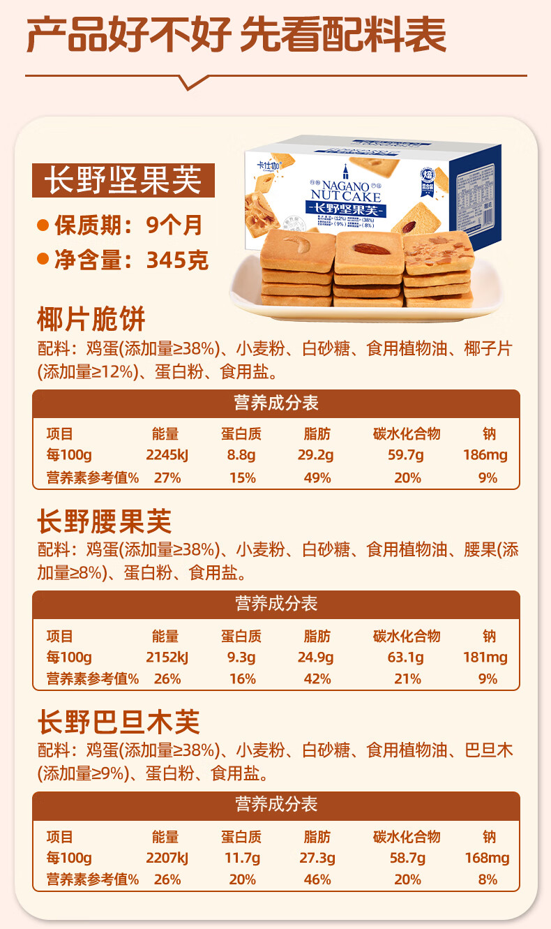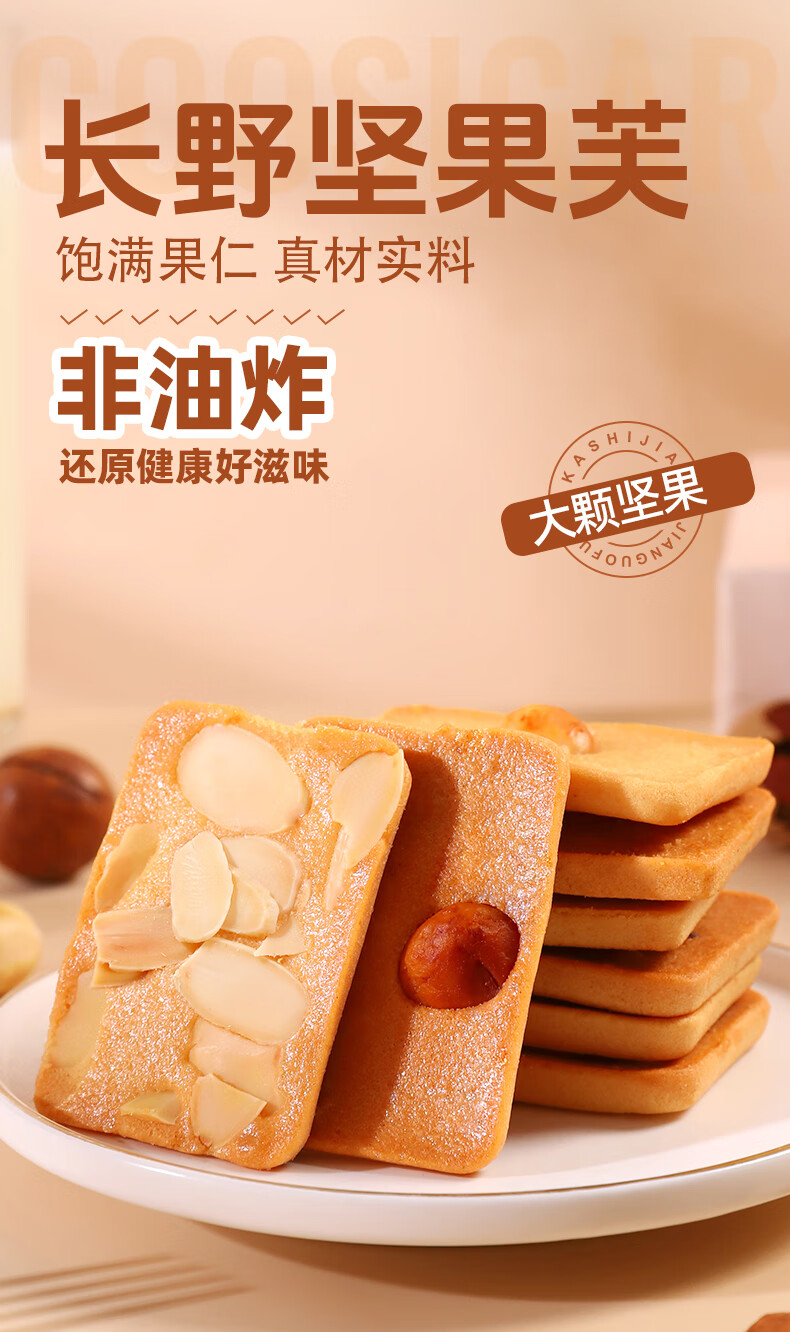 卡仕伽坚果芙椰子脆片曲奇饼干下午茶休闲早餐健康小零食独立包装 【累计热销1亿包】 经典爆款(345g约45包)