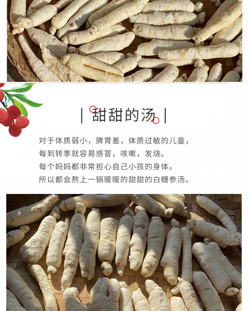 灵壹禾白糖参儿童白人参6年根长白山参整支泡节参小孩煲汤料可配太子参 白糖参7-9支/ 100g*1袋