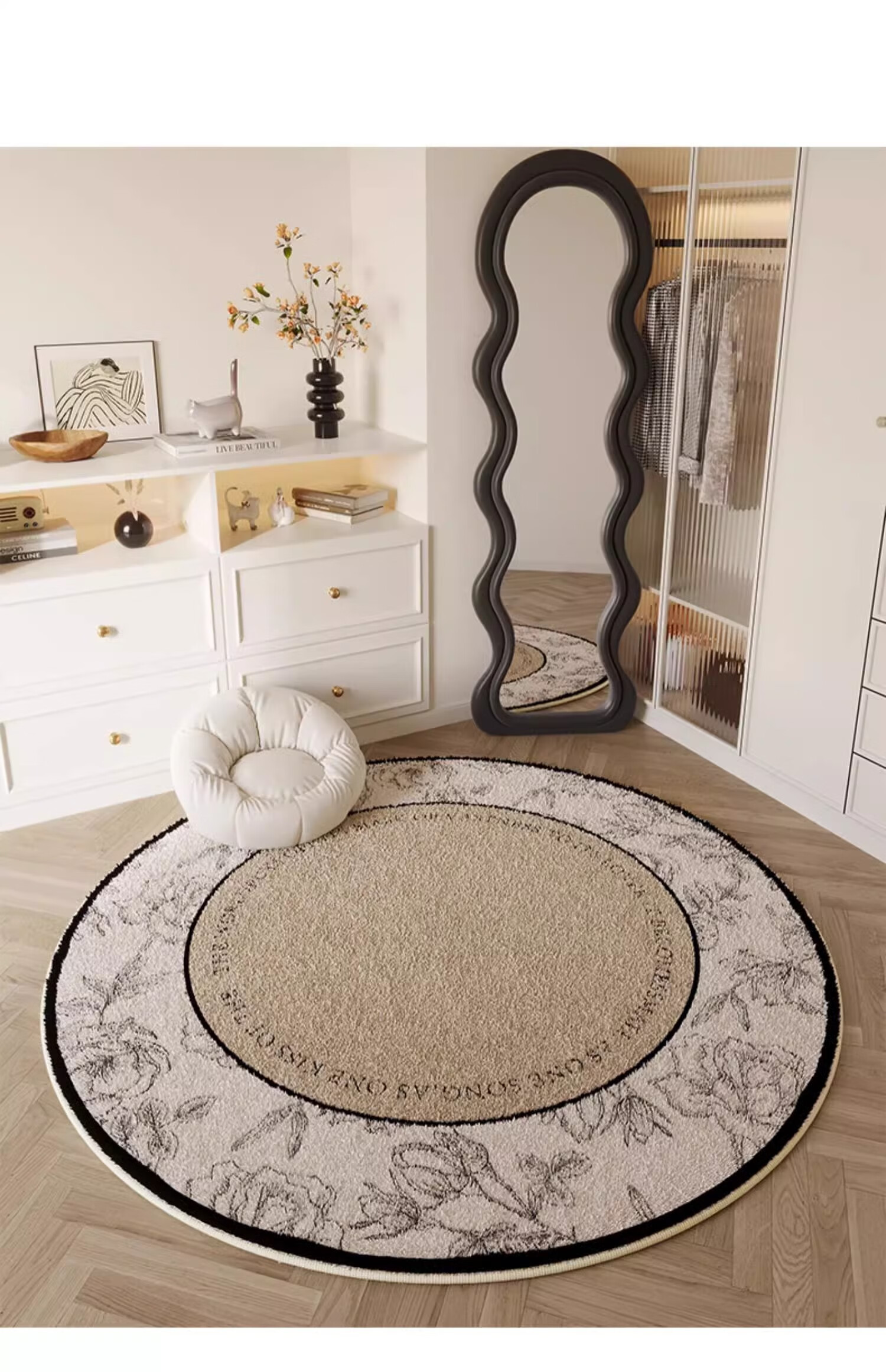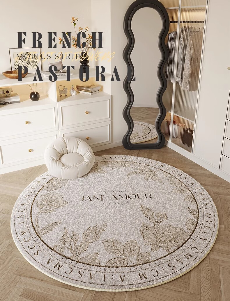 ZSVIP德国轻奢地毯圆形法式奶油风客厅卧室床边毯高级感化妆桌衣帽间毯 TF-201 1件 直径80厘米