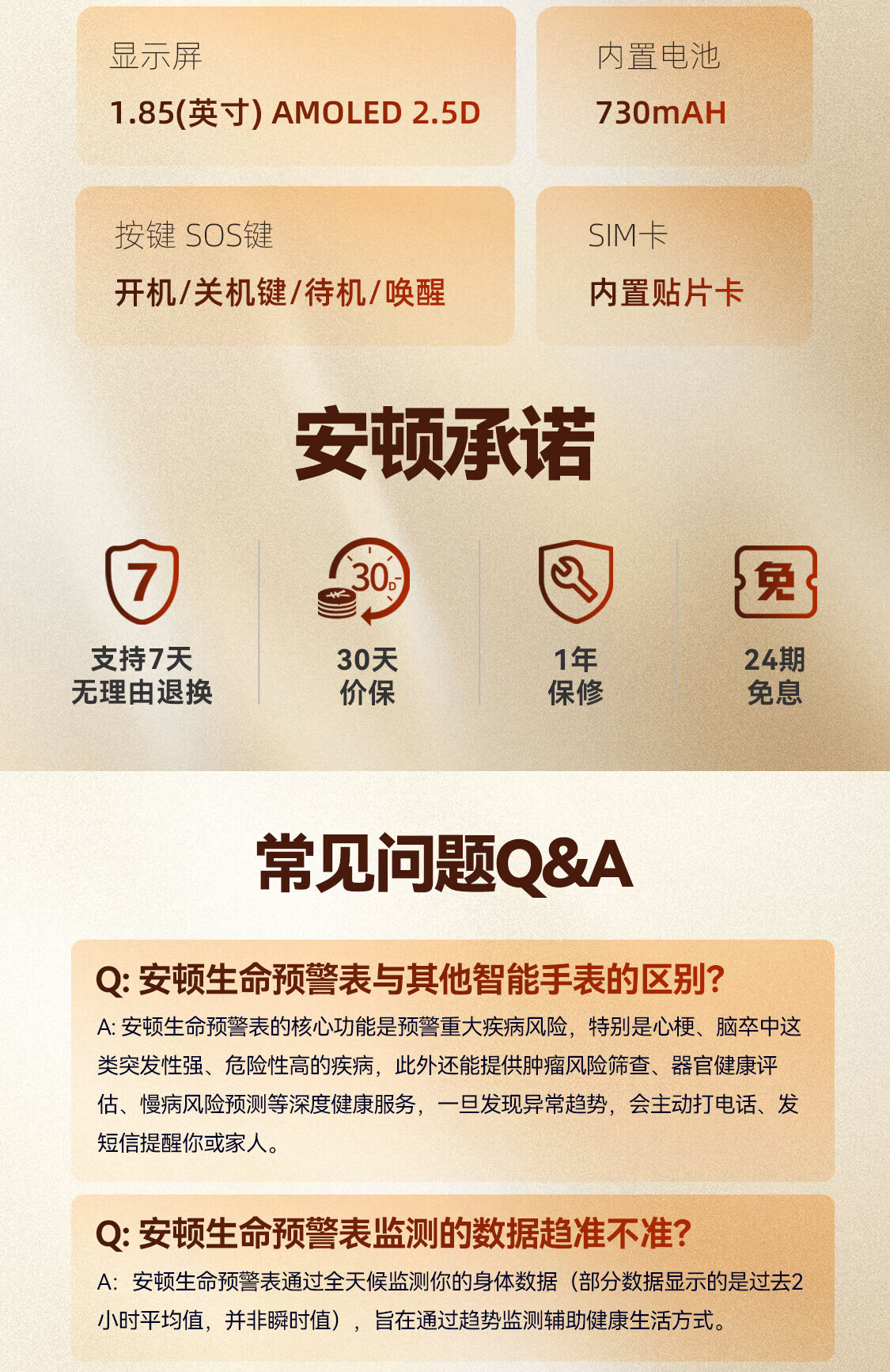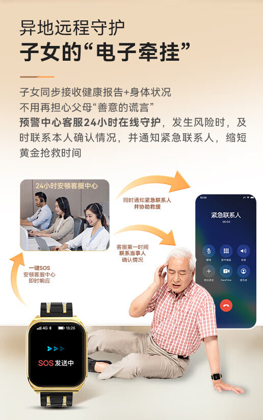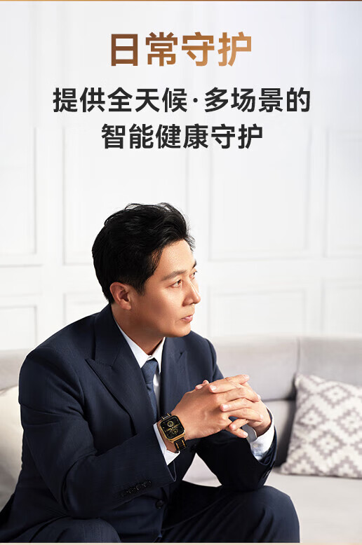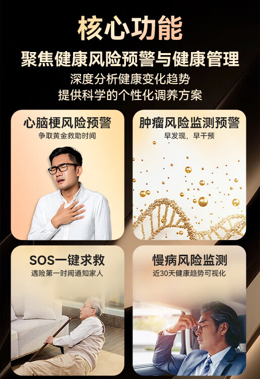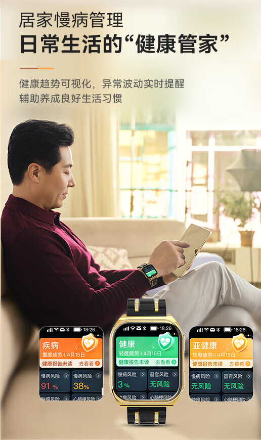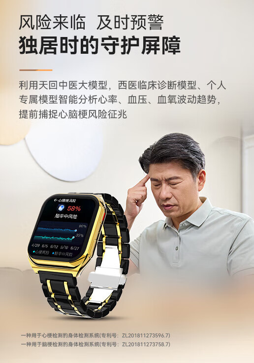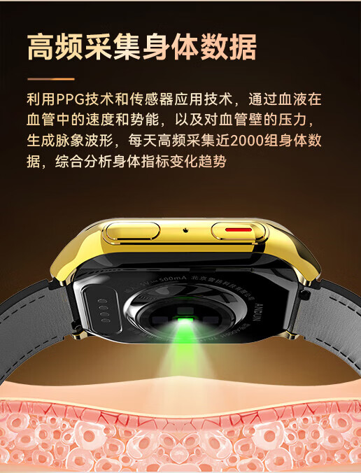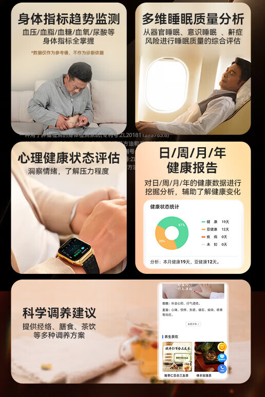 安顿健康预警手表心梗脑卒中健康检测预警智能手表手环测心率血压血氧血脂智能手表送礼送老人送父母 至尊全维版 女款【云曦金】-米白色皮质表带