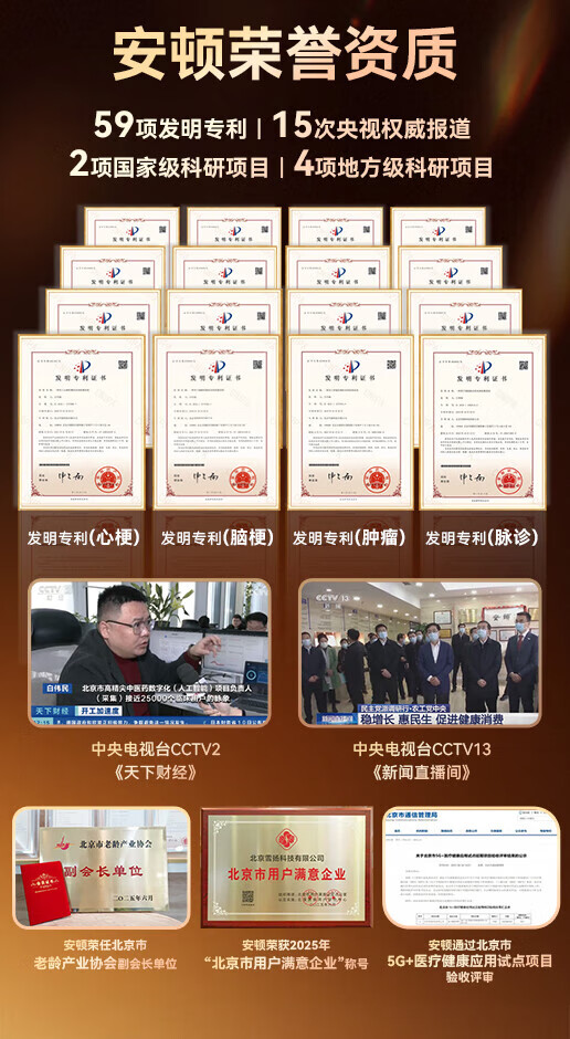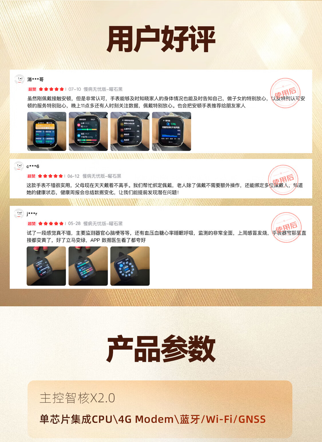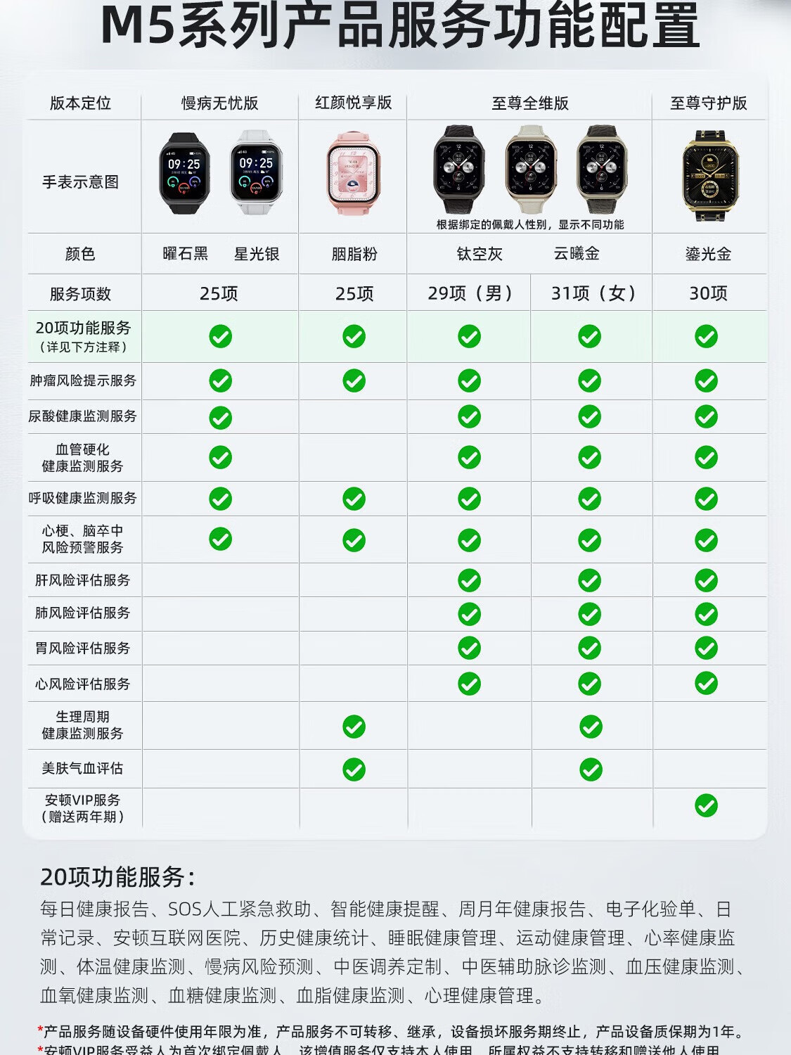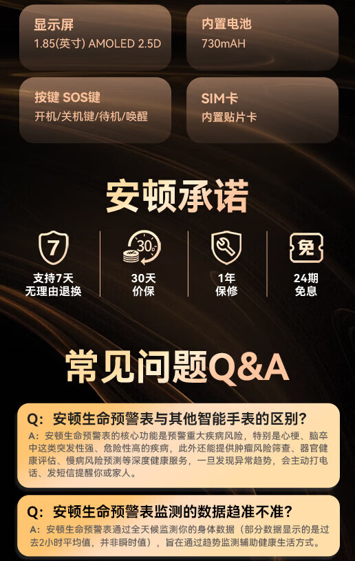 安顿健康预警手表心梗脑卒中健康检测预警智能手表手环测心率血压血氧血脂智能手表送礼送老人送父母 至尊全维版 女款【云曦金】-米白色皮质表带