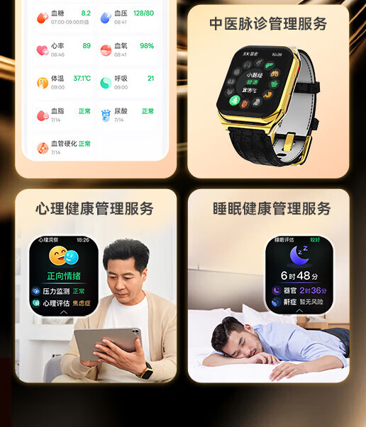 拓创辉(GUGIFT)智能手表无创血糖血压血氧手表心率监测运动手表医用级手表送男朋友女朋友长辈年货礼物 非凡之师【高阶升级版血压血糖*ECG心电*微体检】