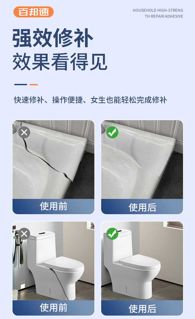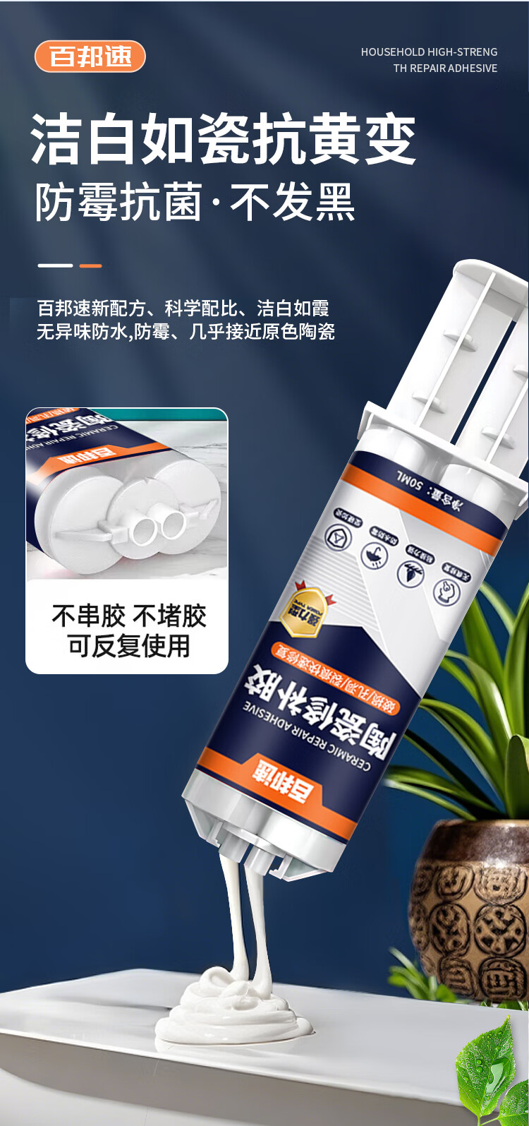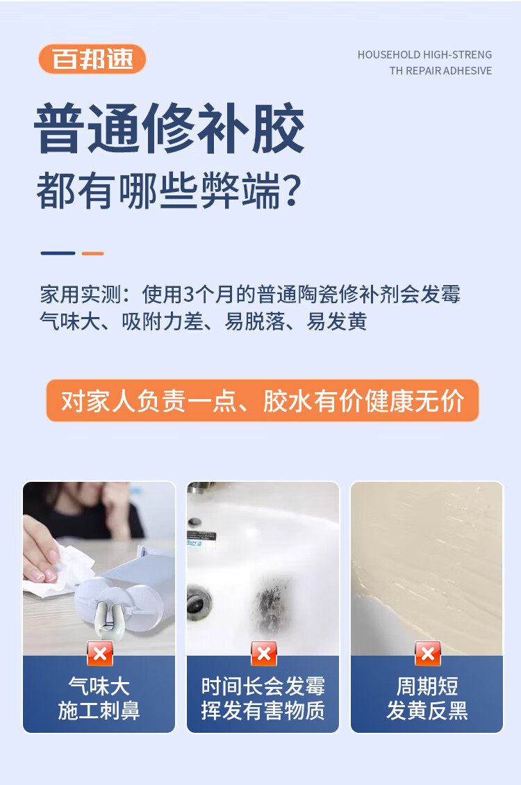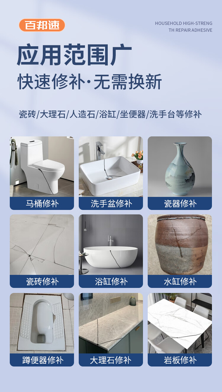 洗手盆修补膏瓷砖破损裂缝强力粘接马桶大理石台面结构胶挤 瓷白色 一支装+配套工具