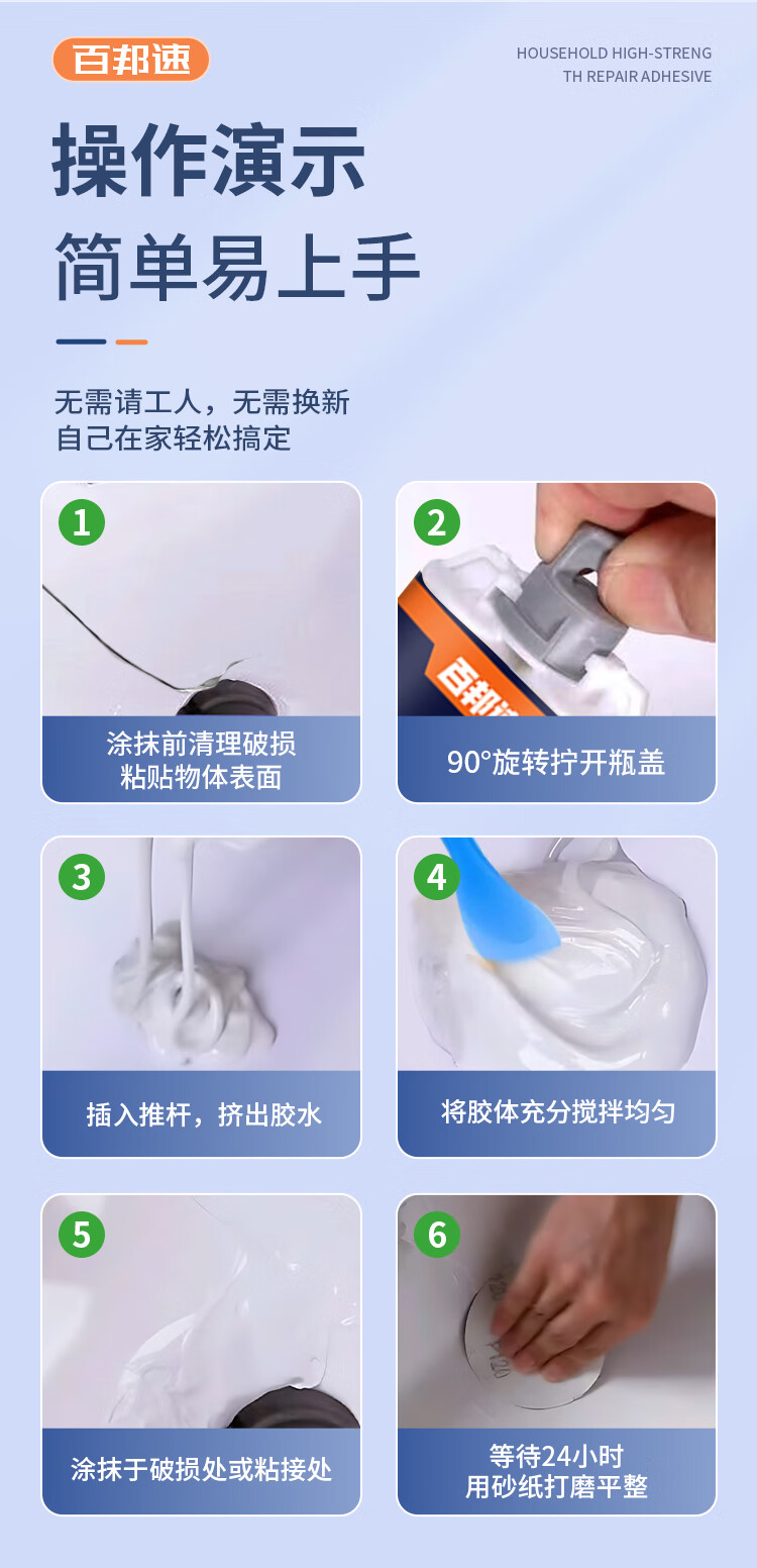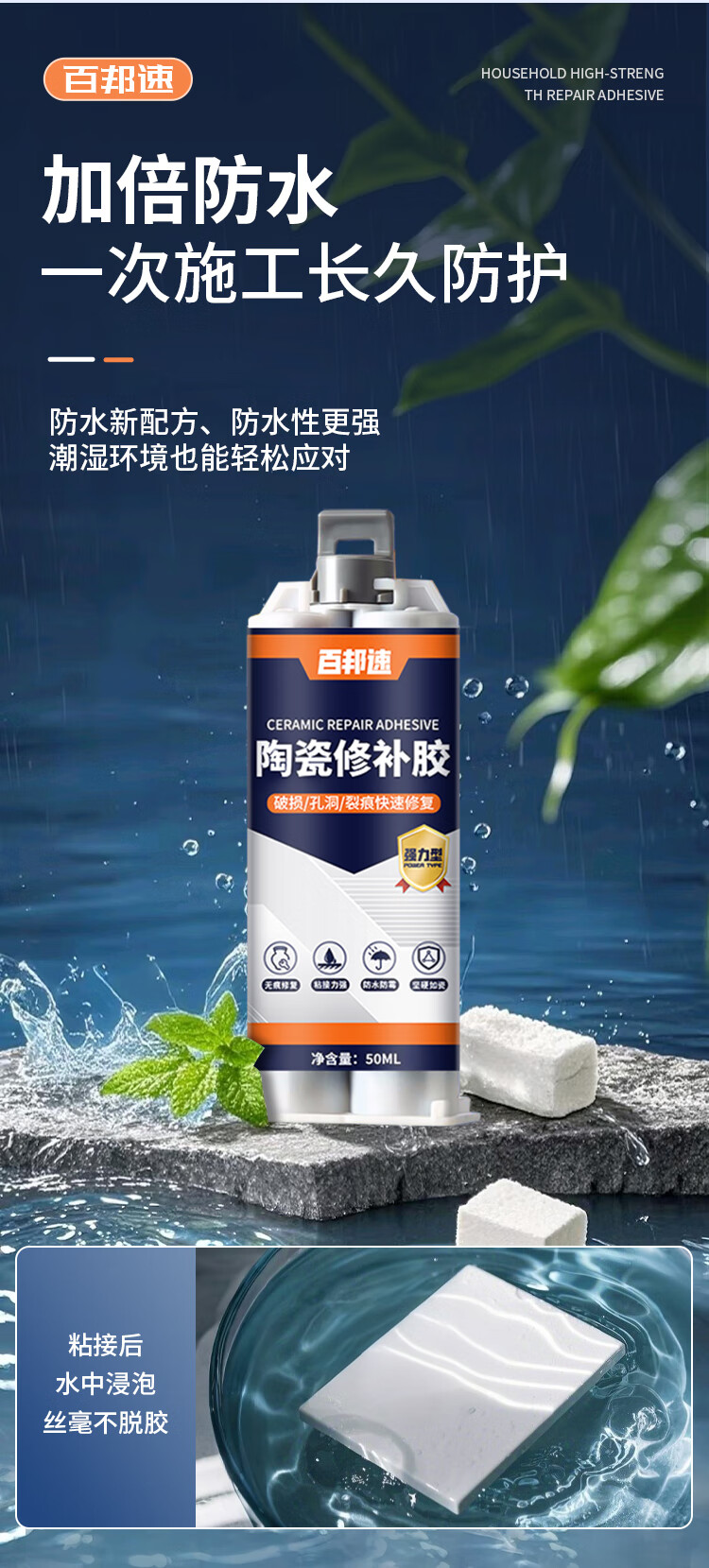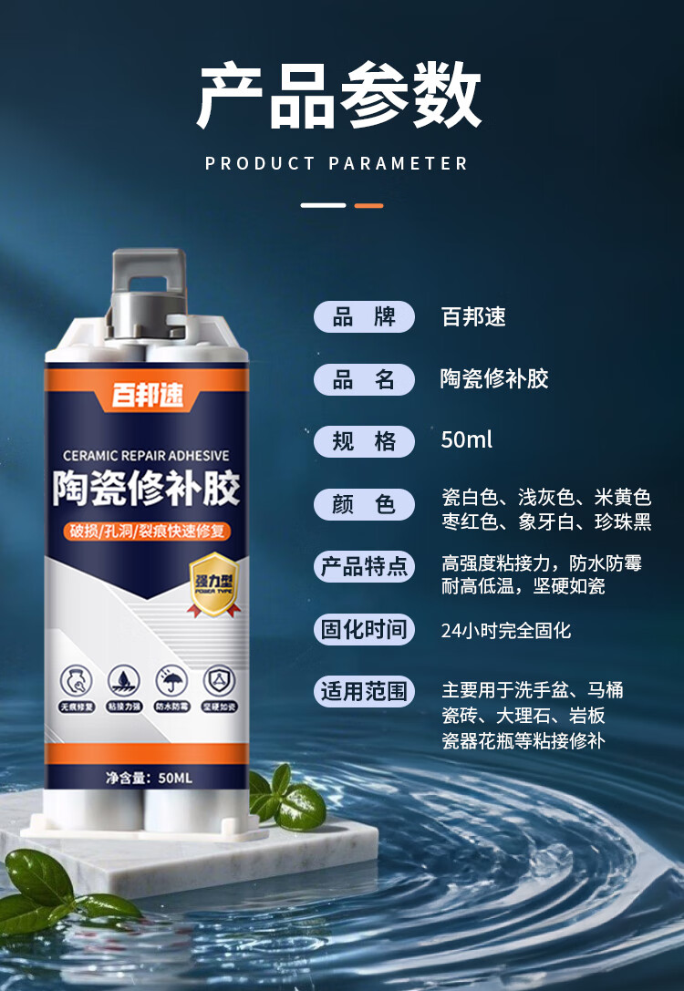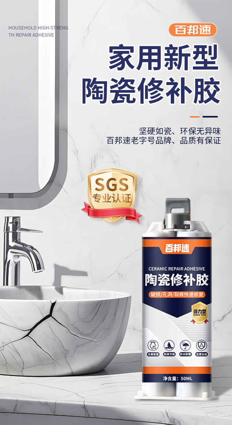 洗手盆修补膏瓷砖破损裂缝强力粘接马桶大理石台面结构胶挤 瓷白色 一支装+配套工具