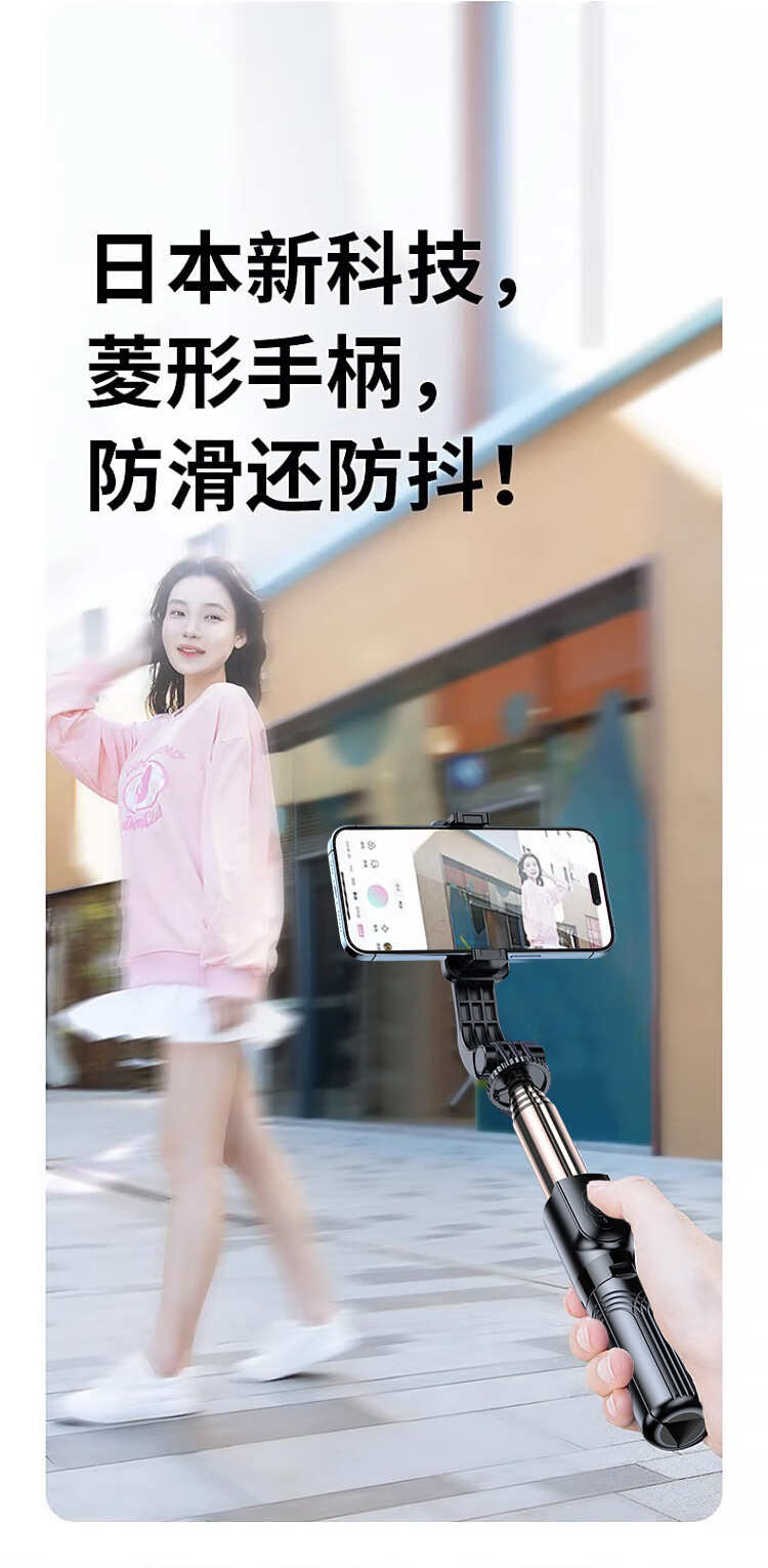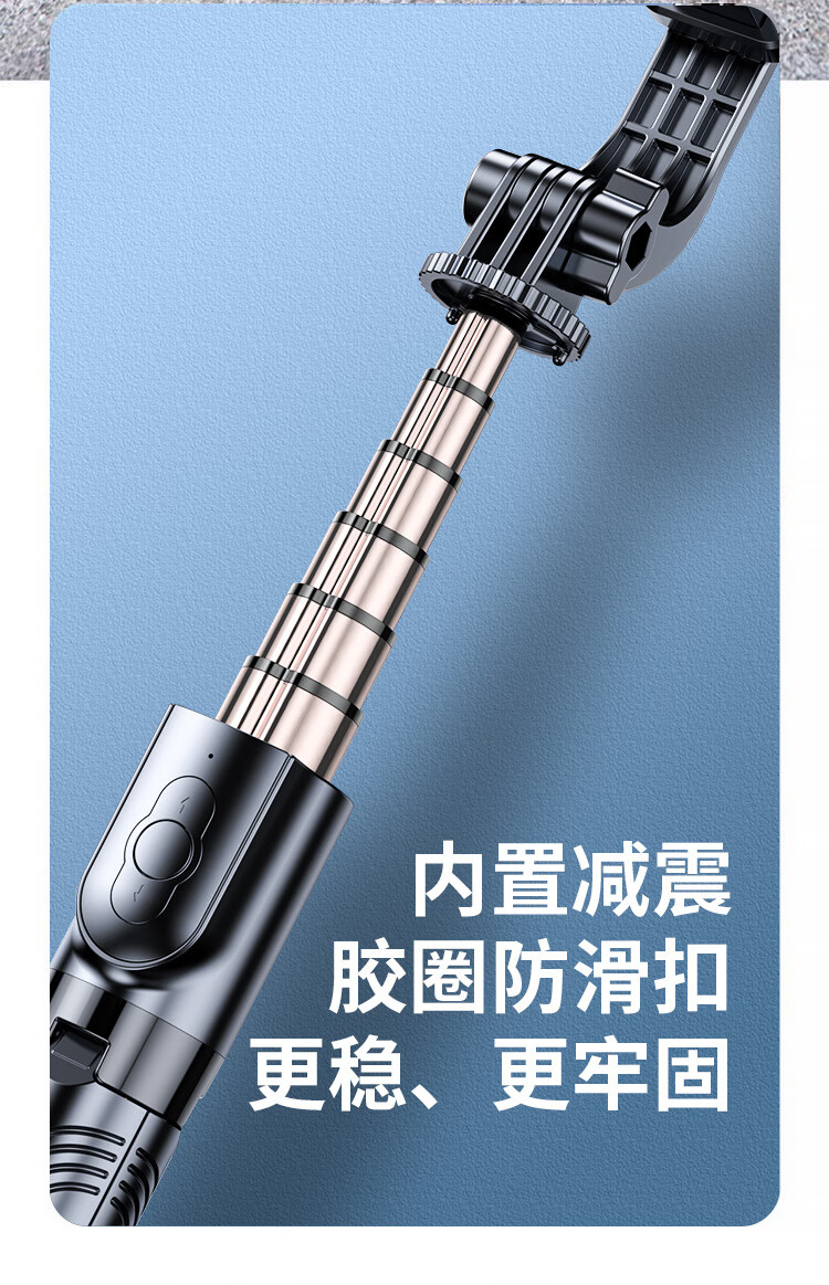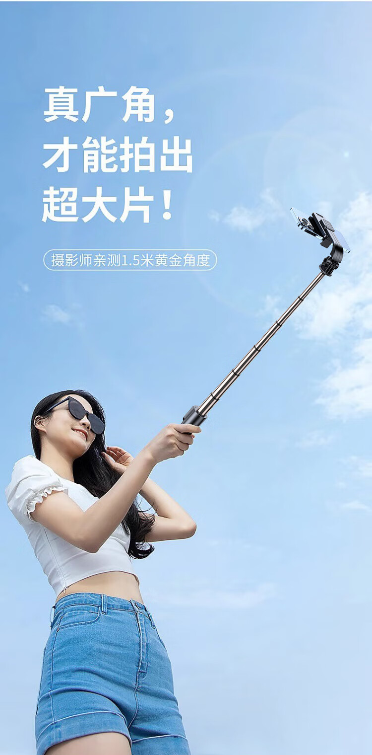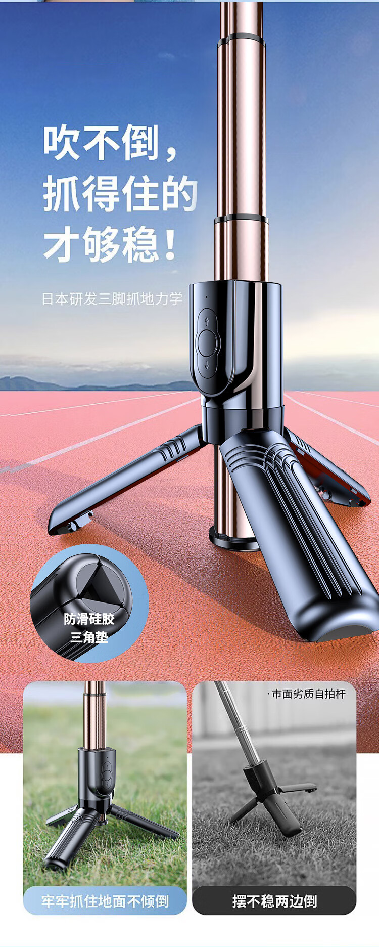 宇缤2025新款迷你自拍杆手柄助拍器旅游自拍神器便携式三脚架户外手持演唱会vlog通用稳定拍摄蓝牙支架 黑色1.8米【防抖加长款】双机位拍摄+充电式遥控
