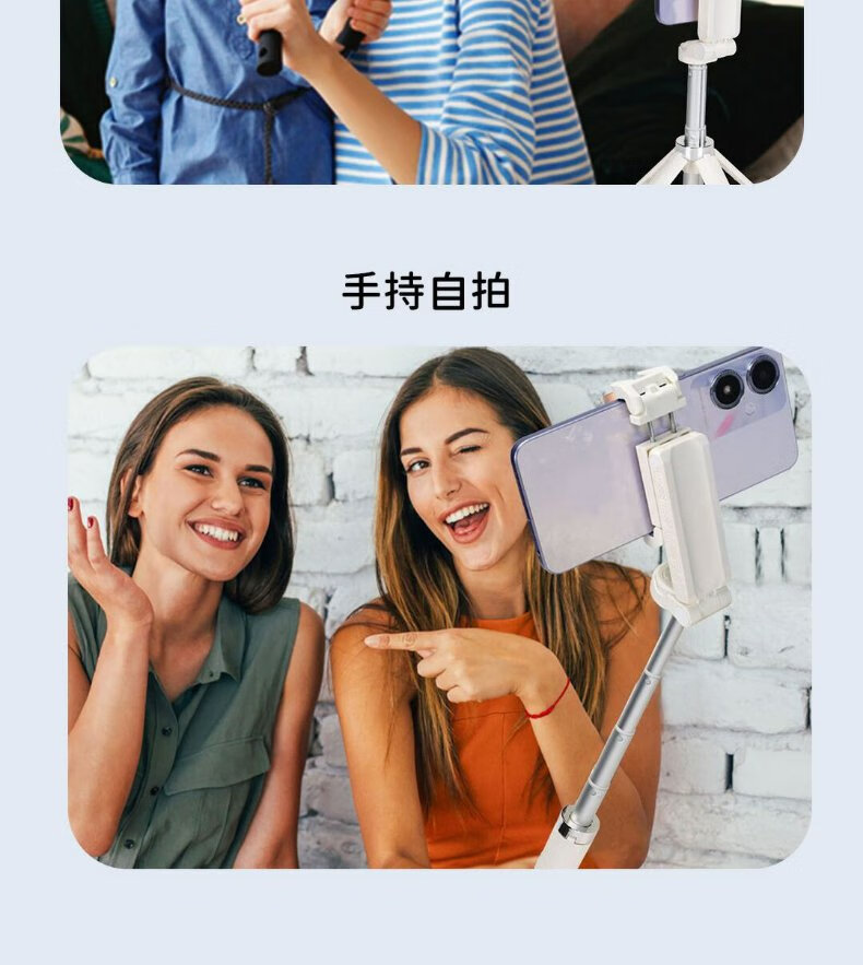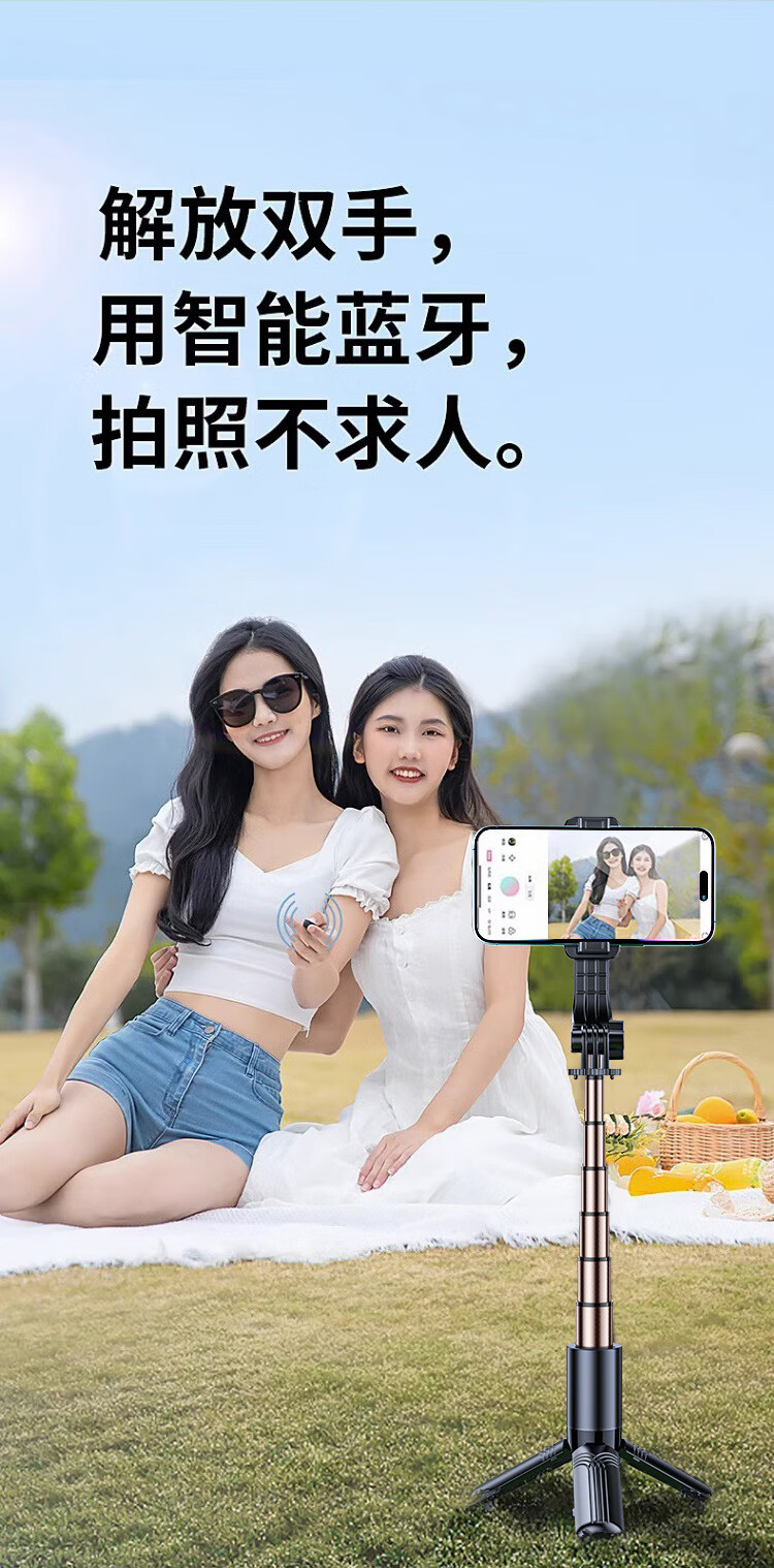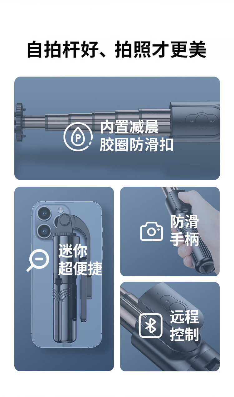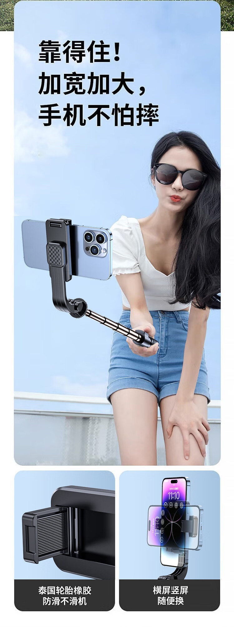 宇缤2025新款迷你自拍杆手柄助拍器旅游自拍神器便携式三脚架户外手持演唱会vlog通用稳定拍摄蓝牙支架 黑色1.8米【防抖加长款】双机位拍摄+充电式遥控