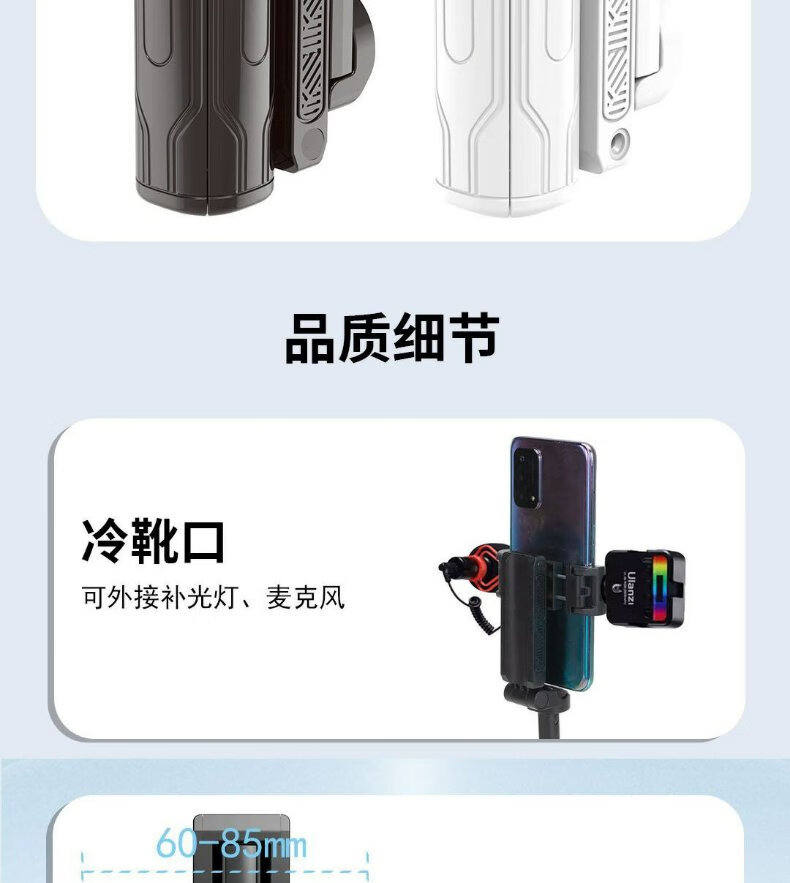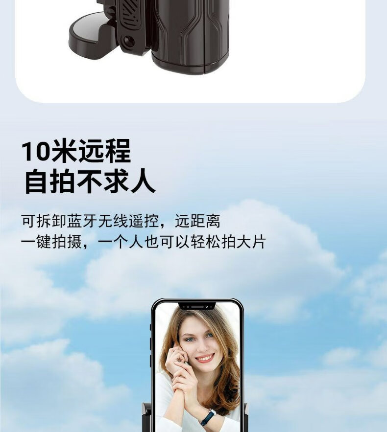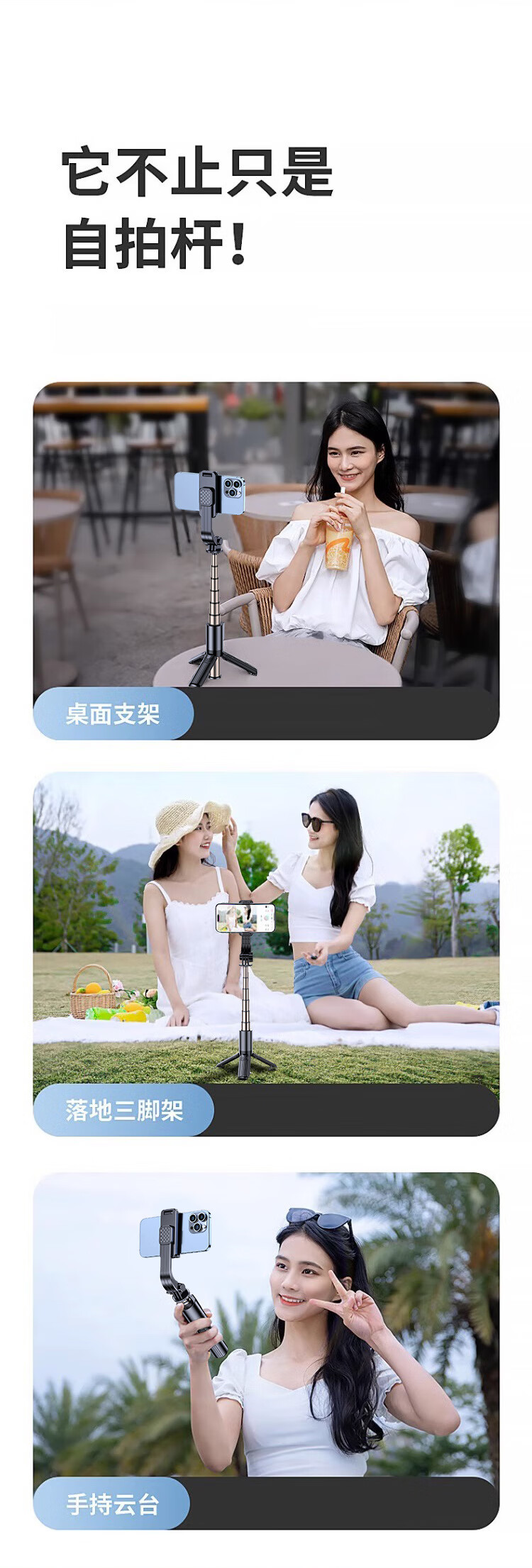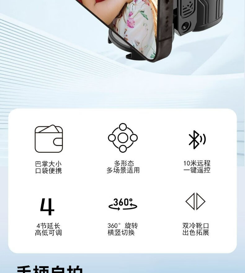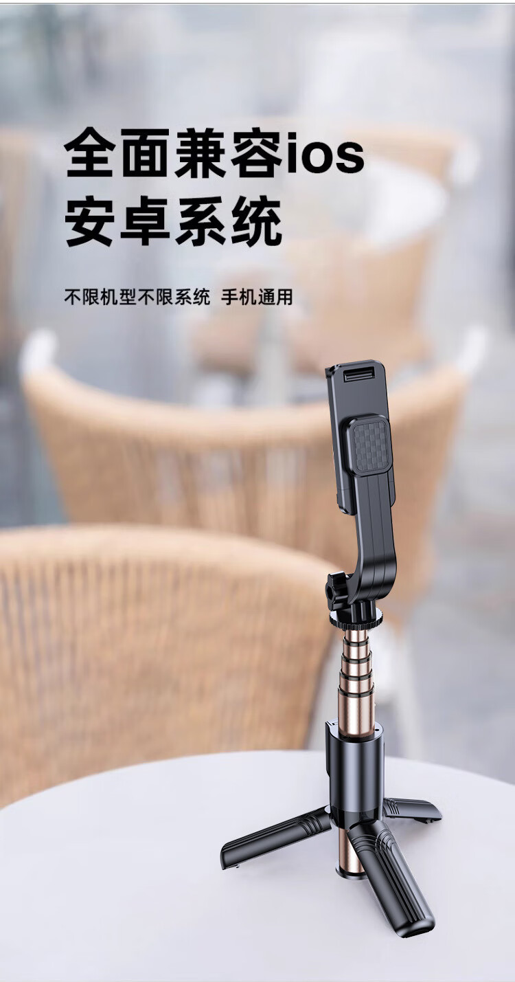 宇缤2025新款迷你自拍杆手柄助拍器旅游自拍神器便携式三脚架户外手持演唱会vlog通用稳定拍摄蓝牙支架 黑色1.8米【防抖加长款】双机位拍摄+充电式遥控