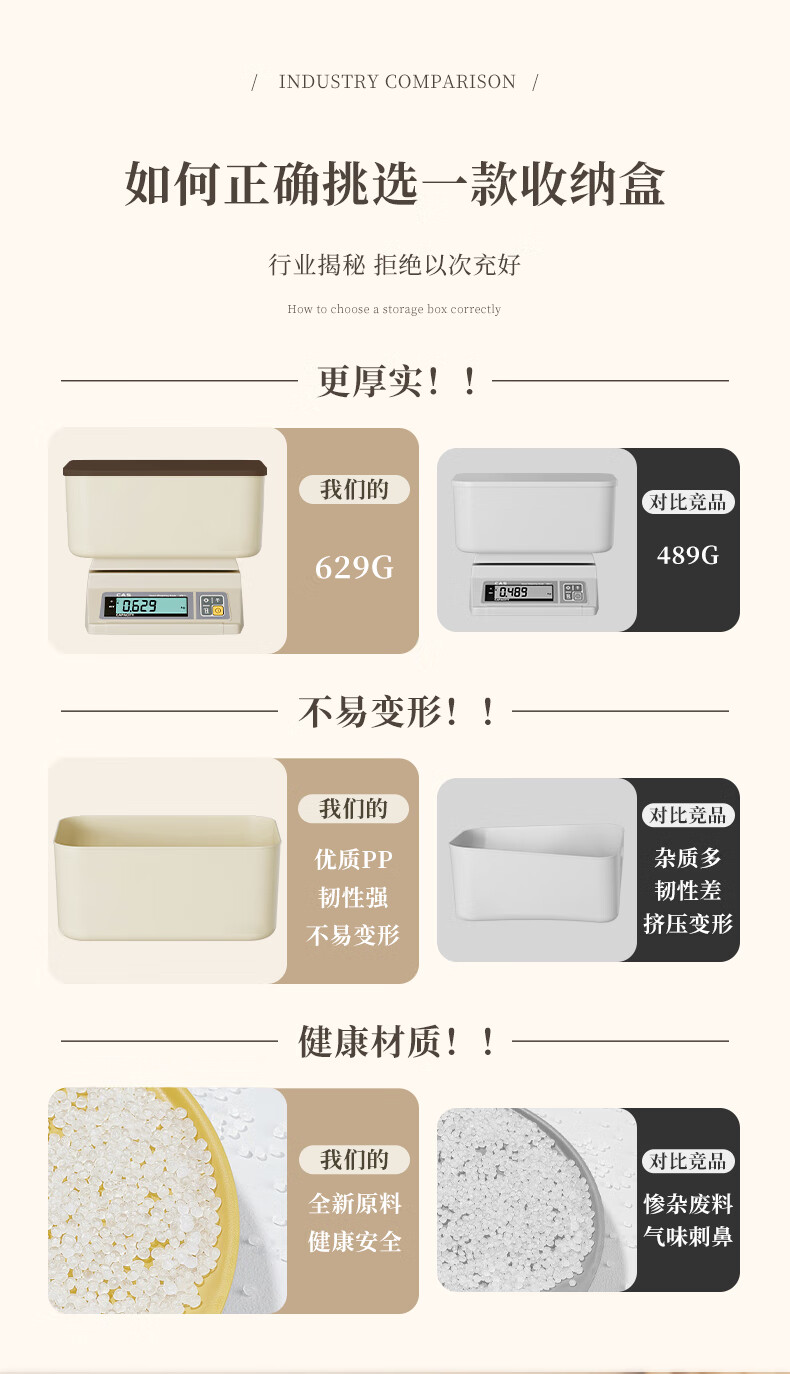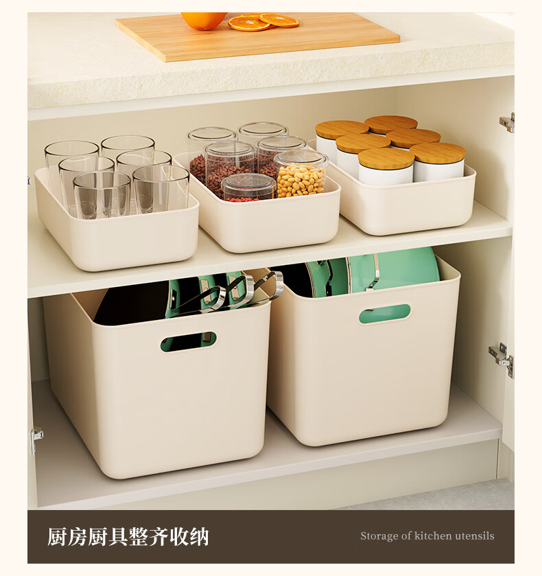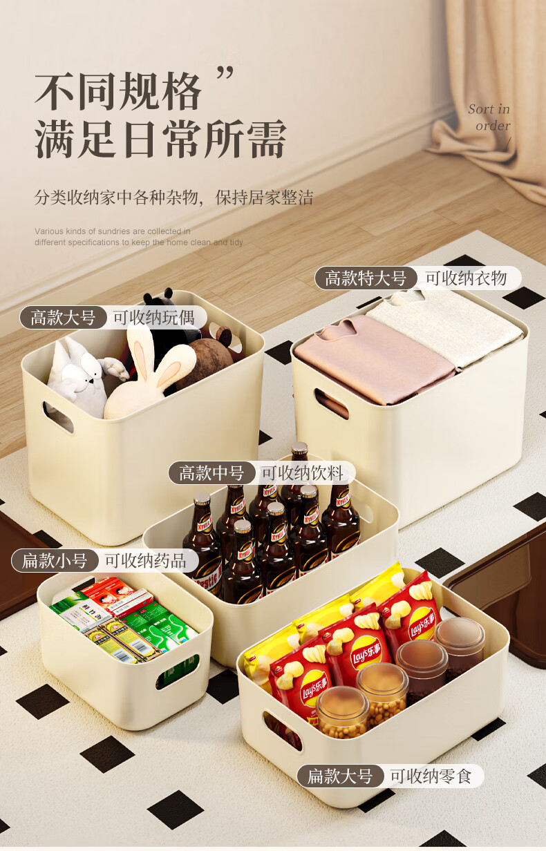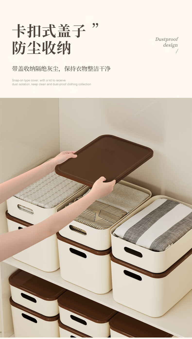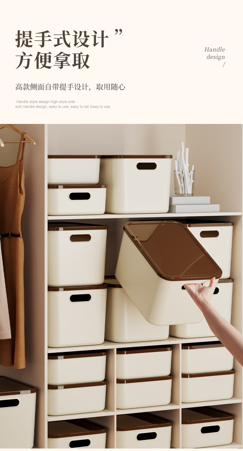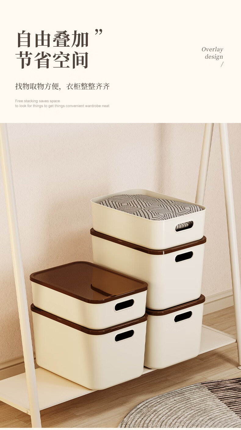 稻草熊桌面收纳盒家用杂物零食化妆品整理收纳箱长方形带盖储物箱收纳篮 奶咖极简收纳盒【35*25*20.5cm】 3个装