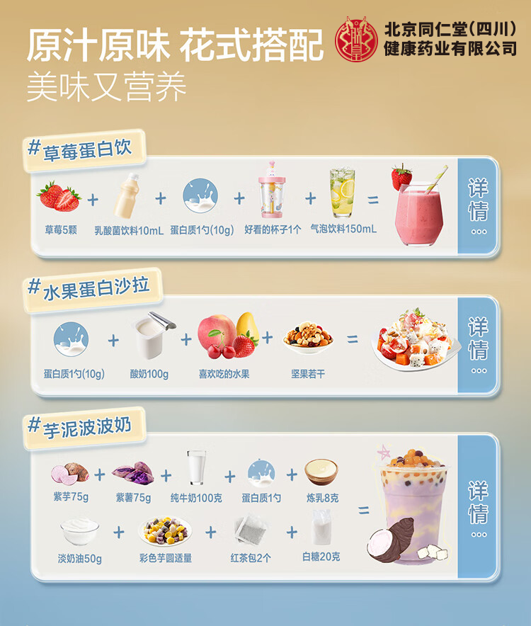朕皇北京同仁堂乳清蛋白粉质粉多种维生素营养品滋补品【年货礼品】 高钙营养蛋白质粉 500g*3罐