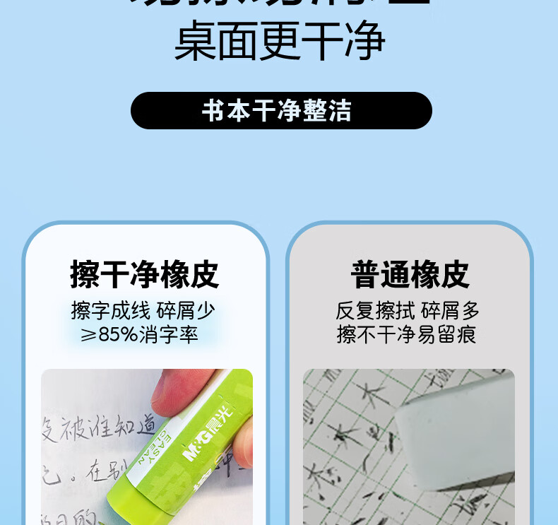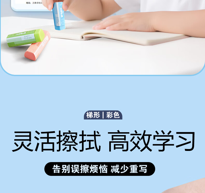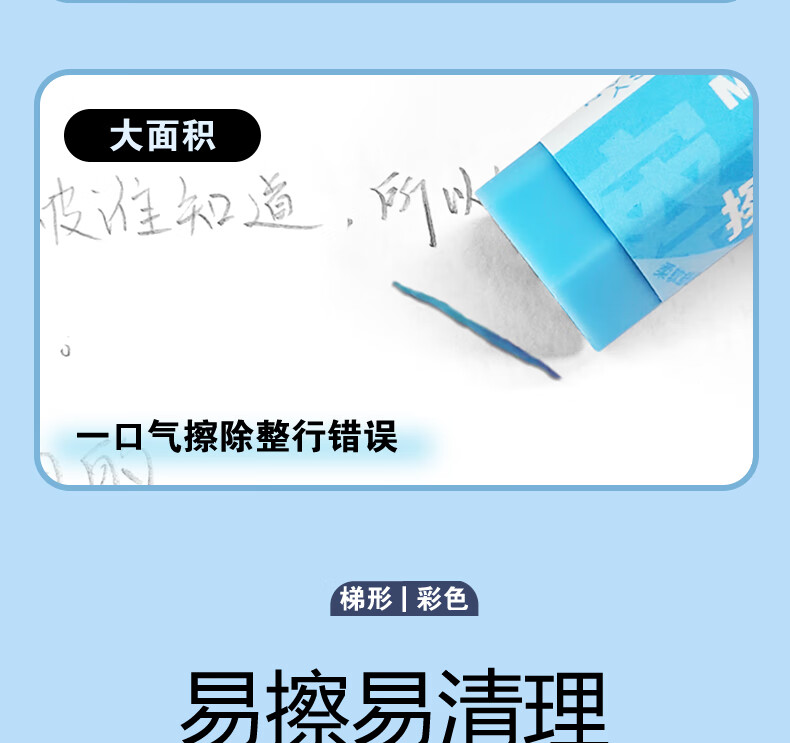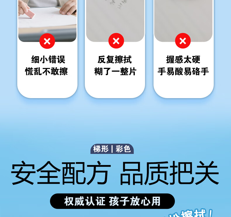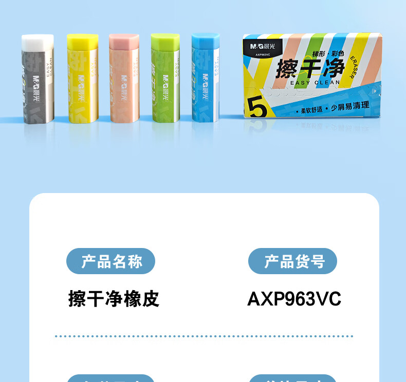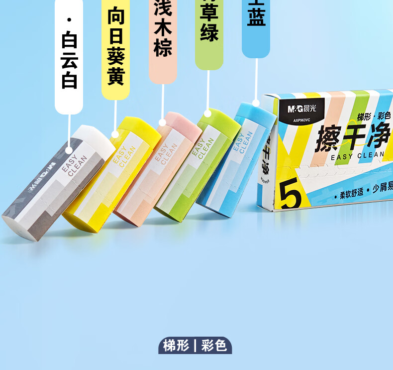 晨光(M&G)文具彩色梯形【擦干净】橡皮擦学生考试绘画橡皮擦少屑聚屑柔软 5块装AXP963VC