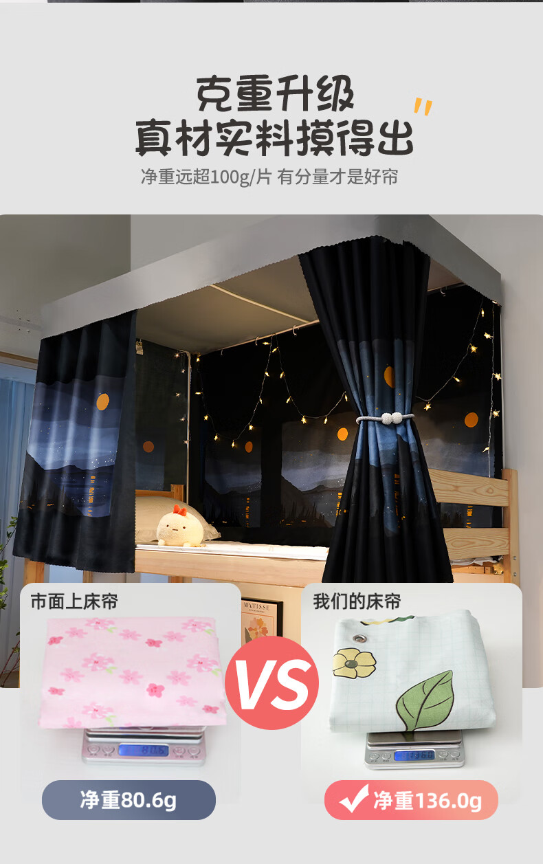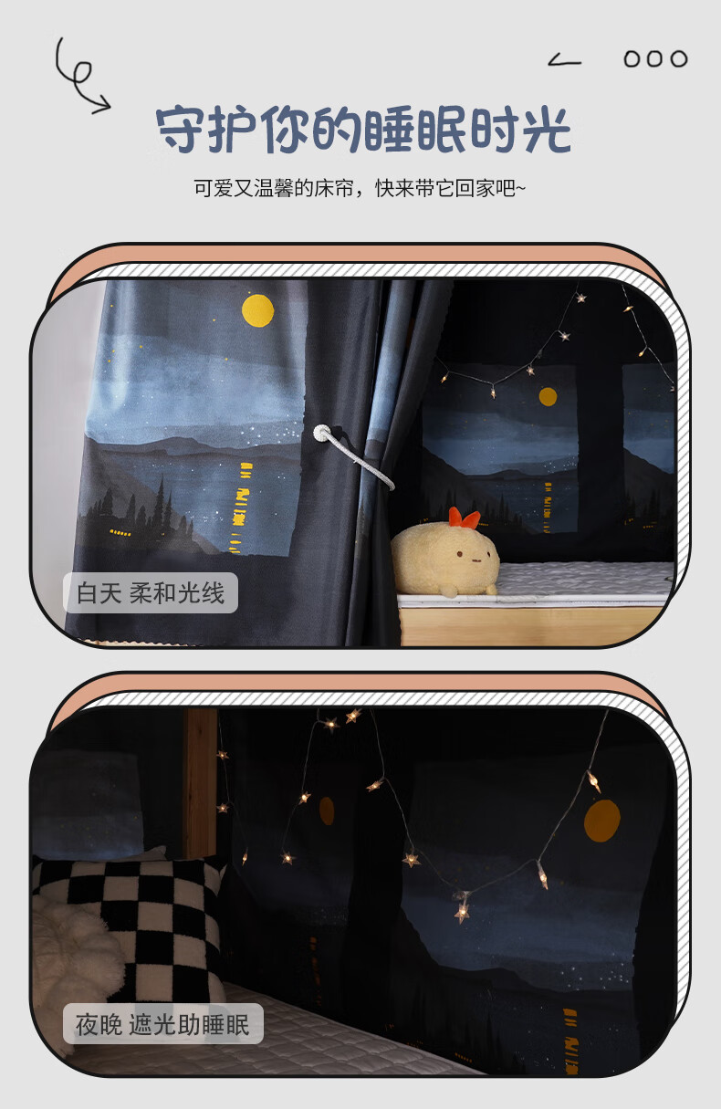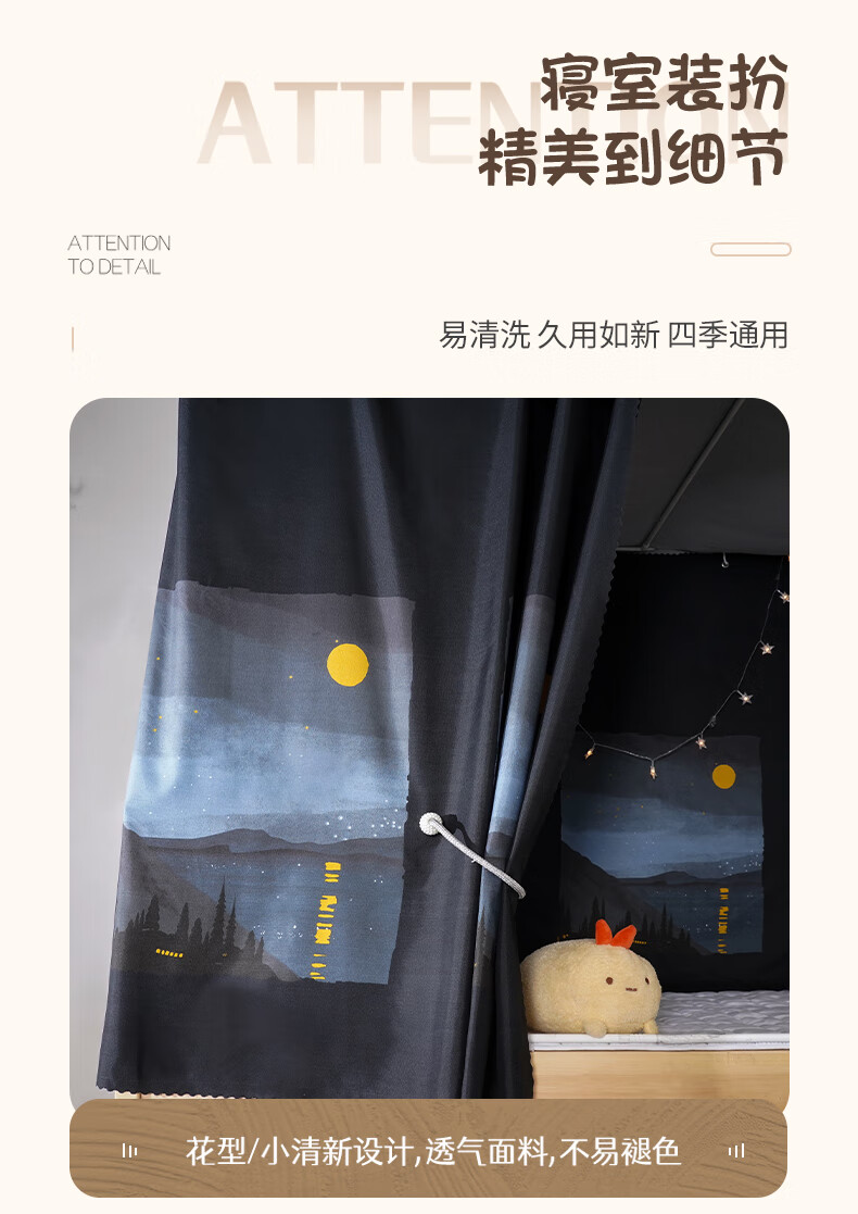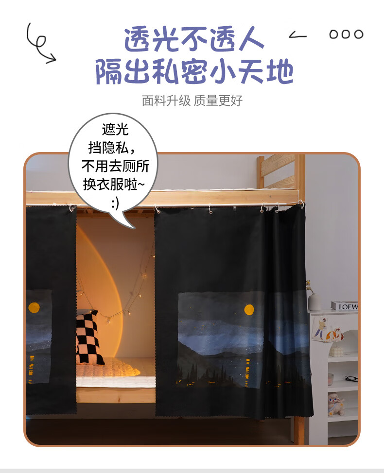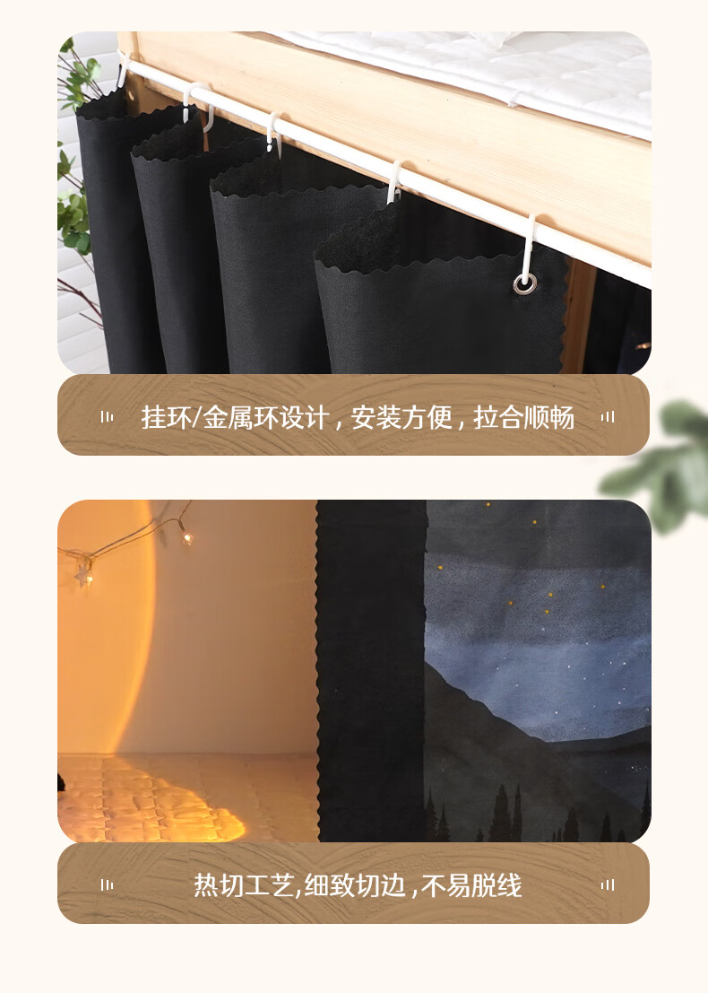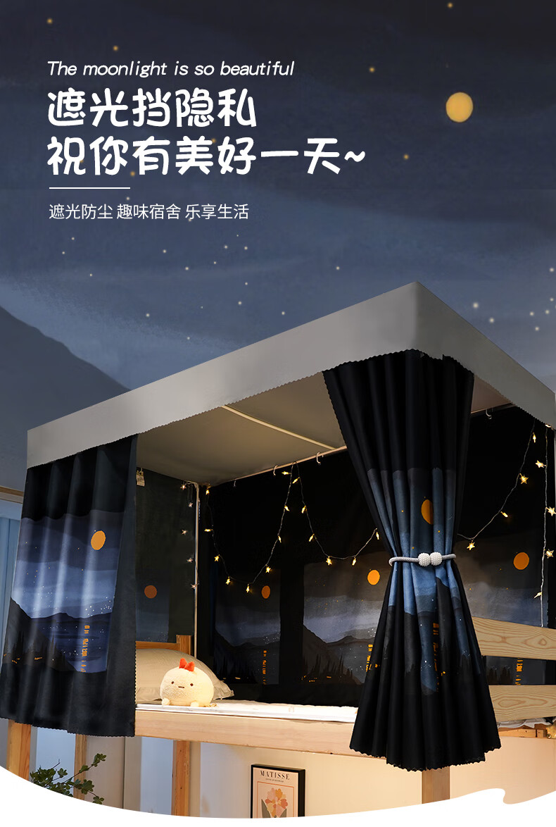 高睿学生宿舍遮光床帘下铺专用隐私床遮挡帘床围挡布单片挂布寝室窗帘 日落湖泊【深色款】无涂层 1.35m高【2片】挡3面送绳+挂钩
