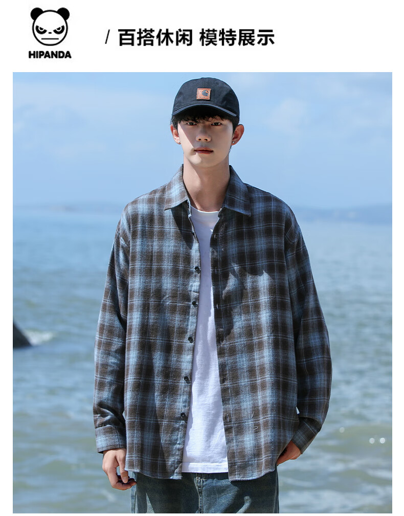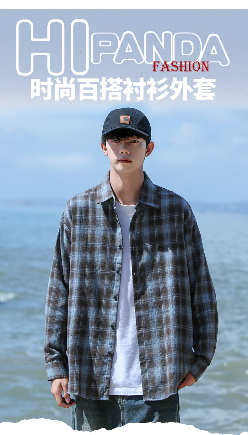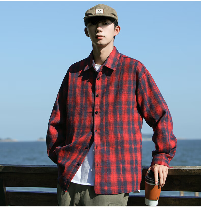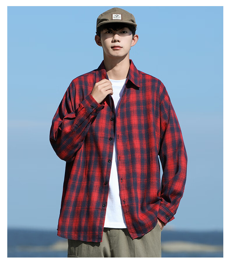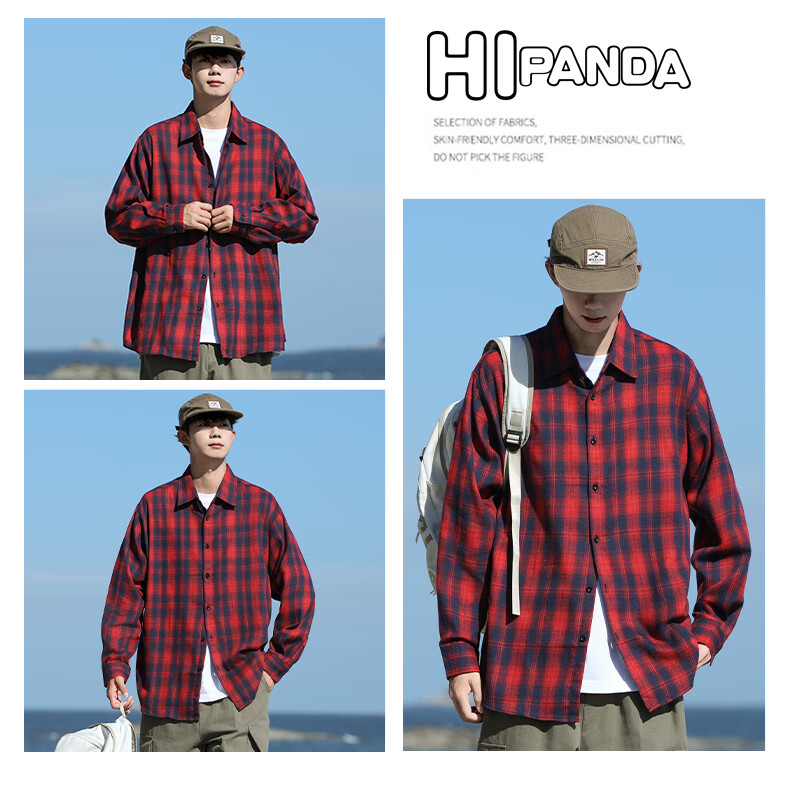 HIPANDA你好熊猫衬衫男2025年秋冬新款简约潮牌格子衬衣男休闲外套男上衣 红色-常规款 M