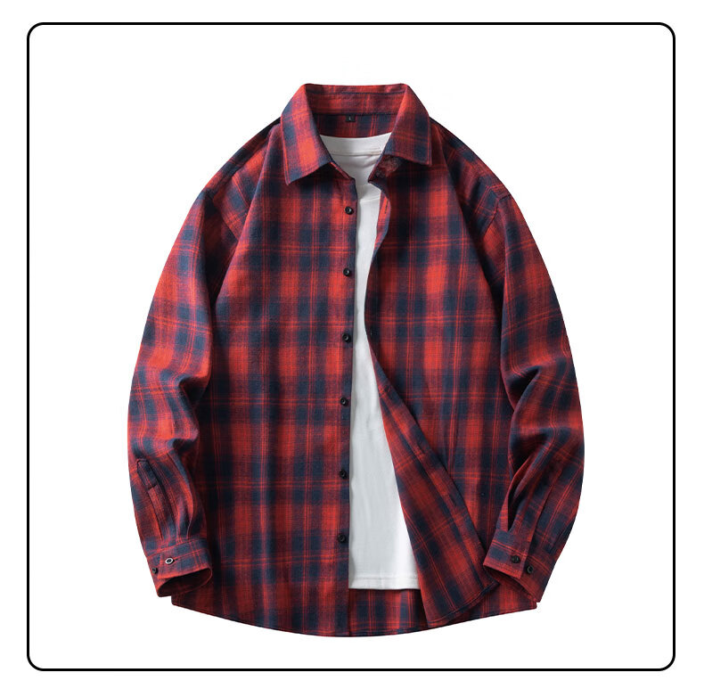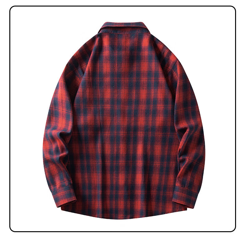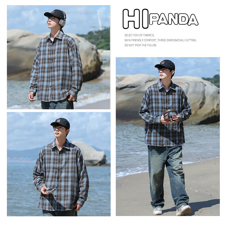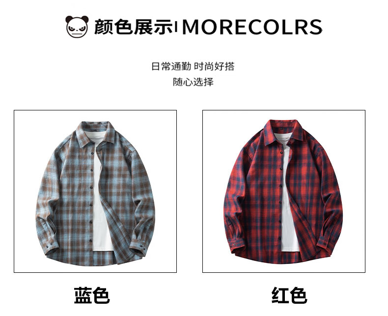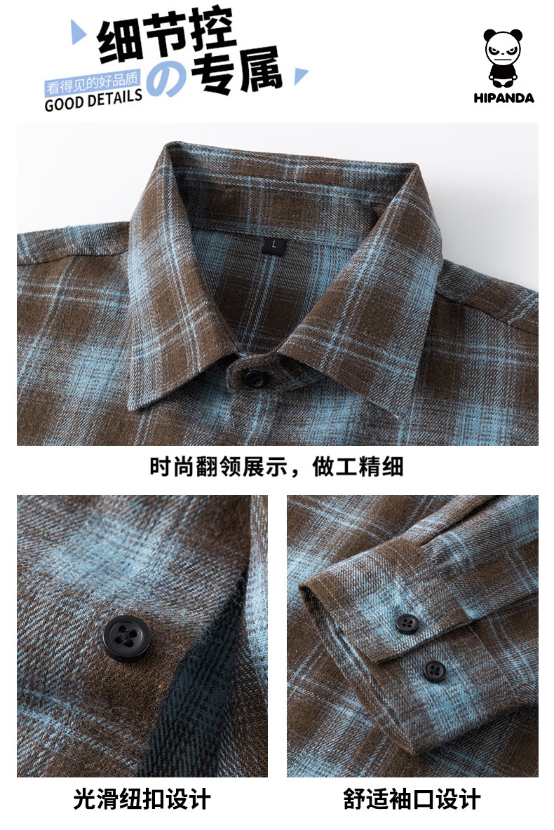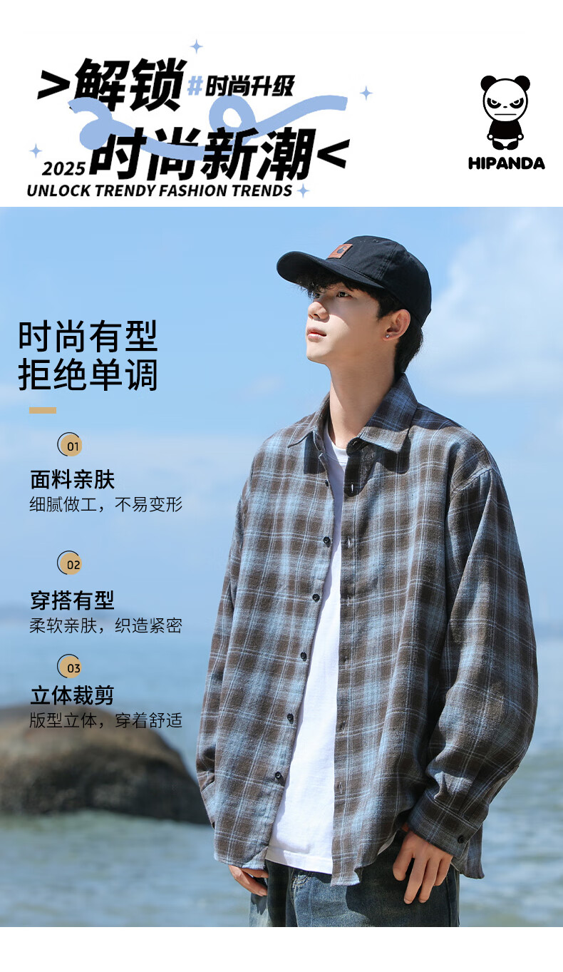 HIPANDA你好熊猫衬衫男2025年秋冬新款简约潮牌格子衬衣男休闲外套男上衣 红色-常规款 M