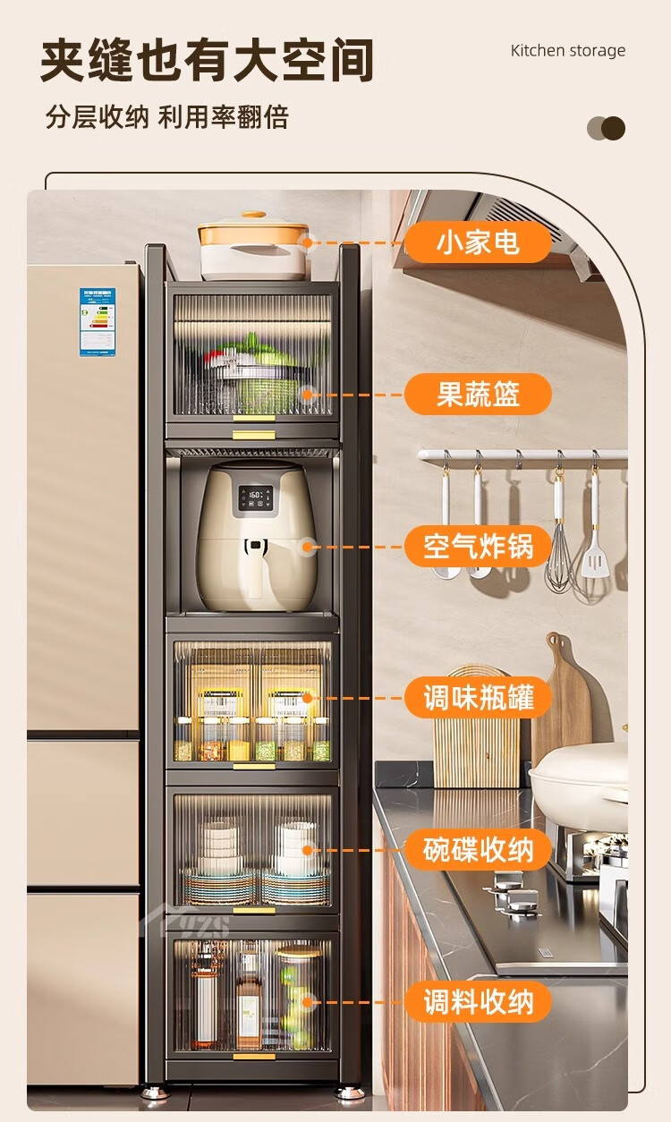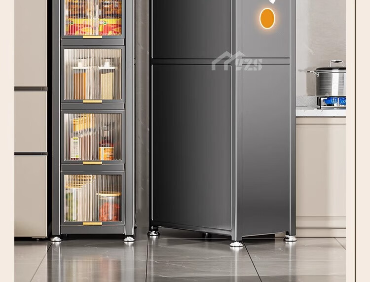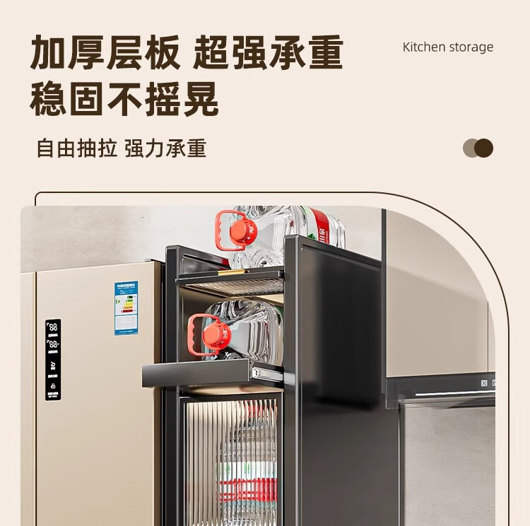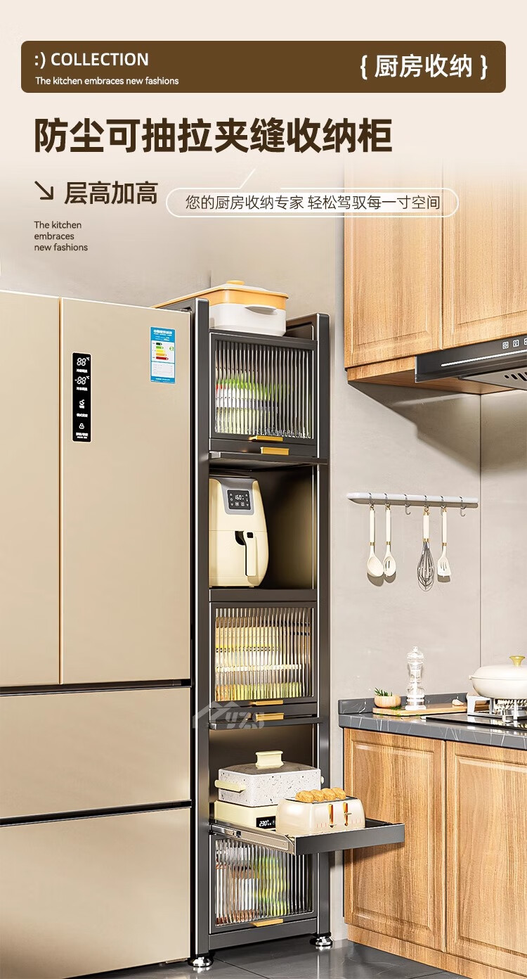 迈途森冰箱夹缝收纳柜碳钢缝隙窄边置物架厨房侧面抽拉柜超极窄缝储物柜 4层-白色-30宽123高CM